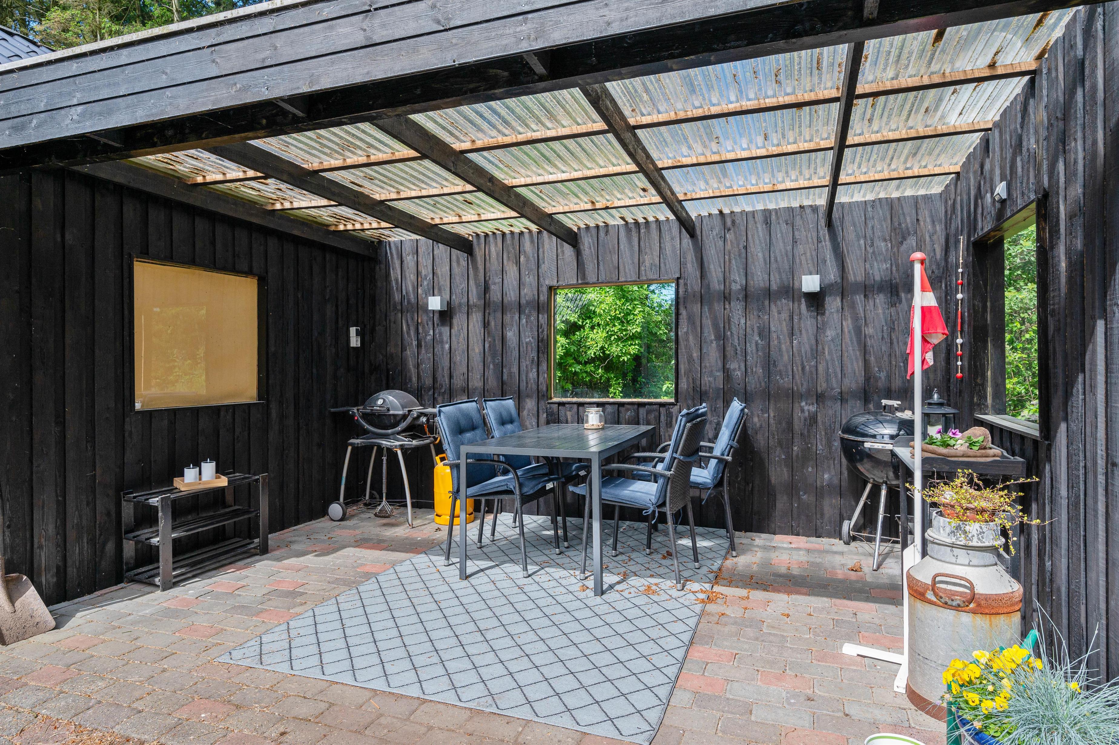 Hvis vejret stadig er lunt, og I gerne vil forlænge jeres ferieaftener, kan I afslutte feriedagen på den overdækkede terrasse med en lækker middag fra grillen eller bålet.