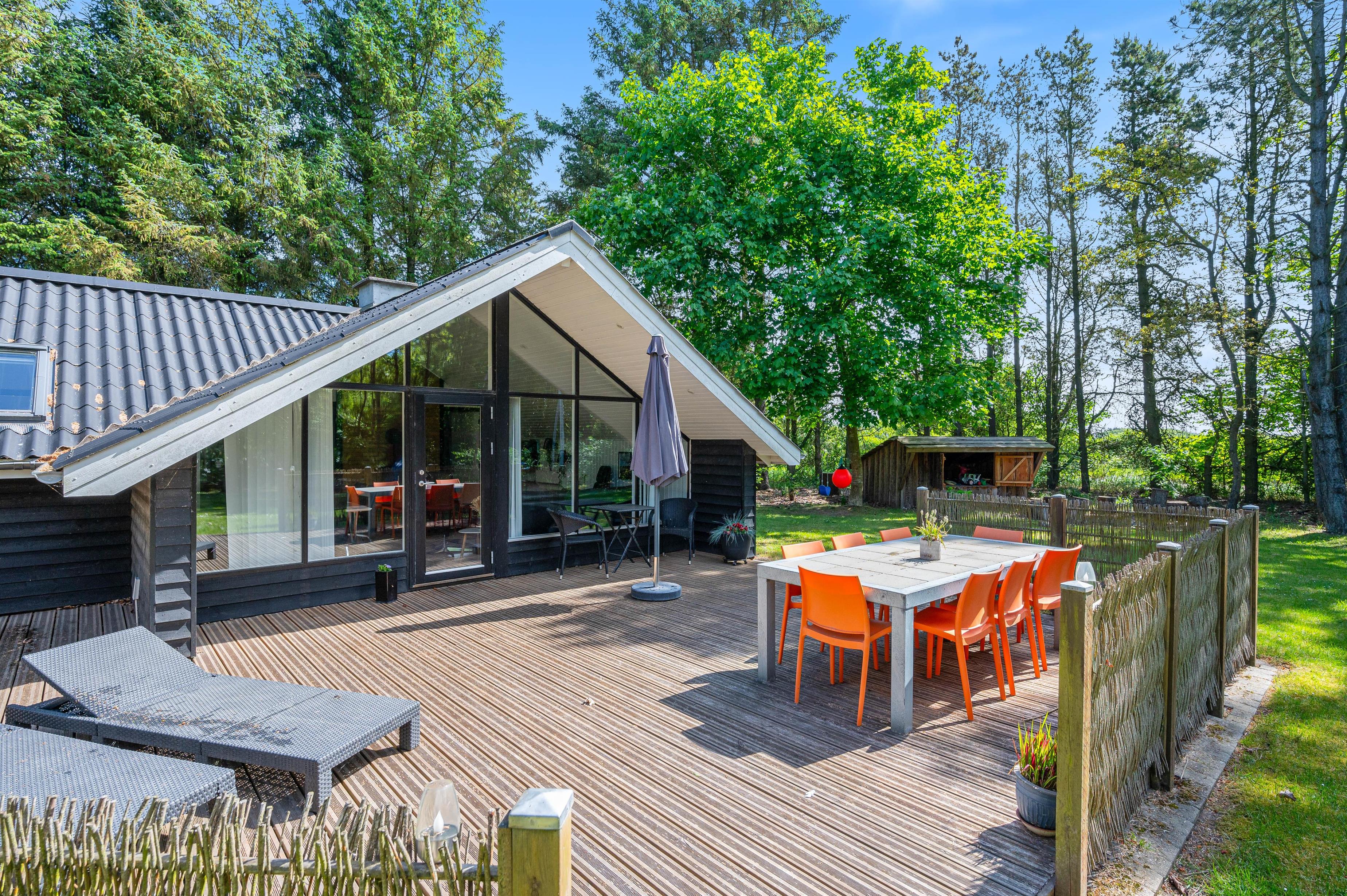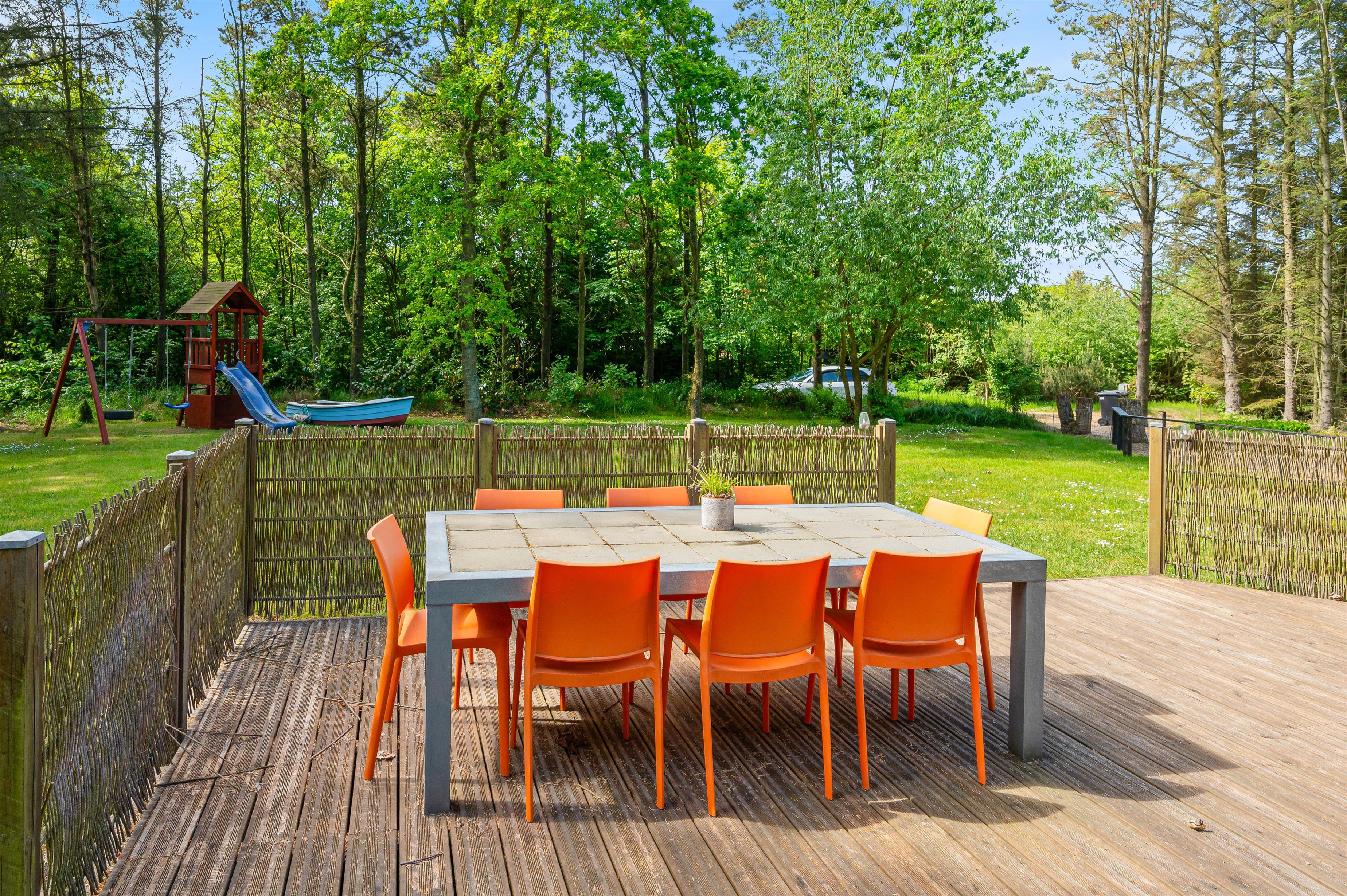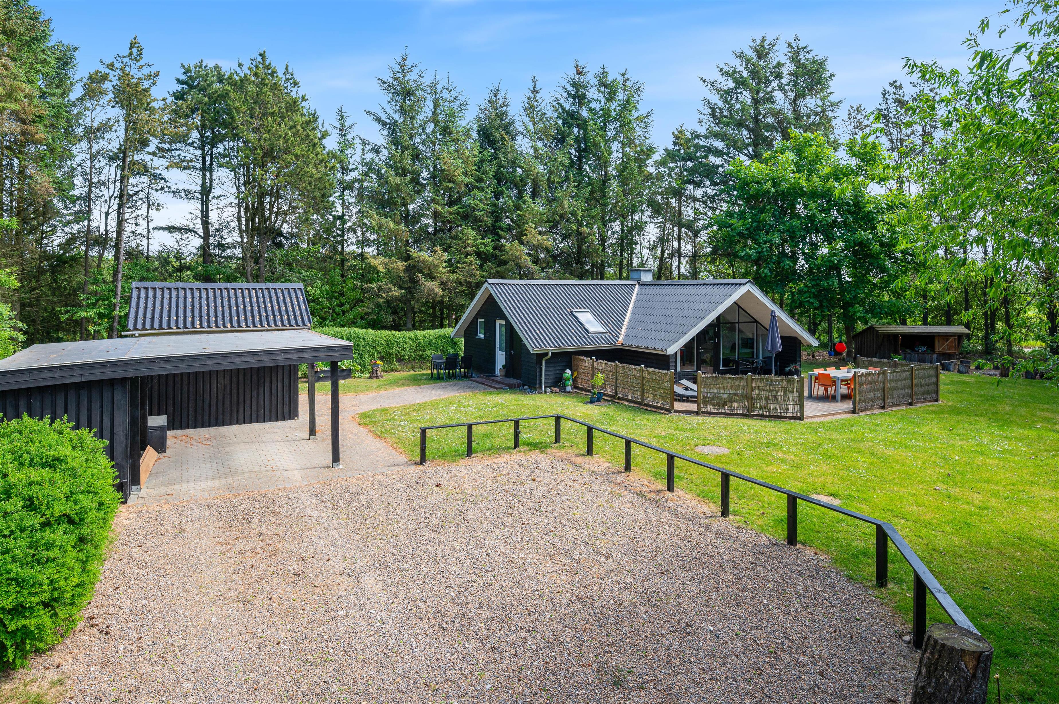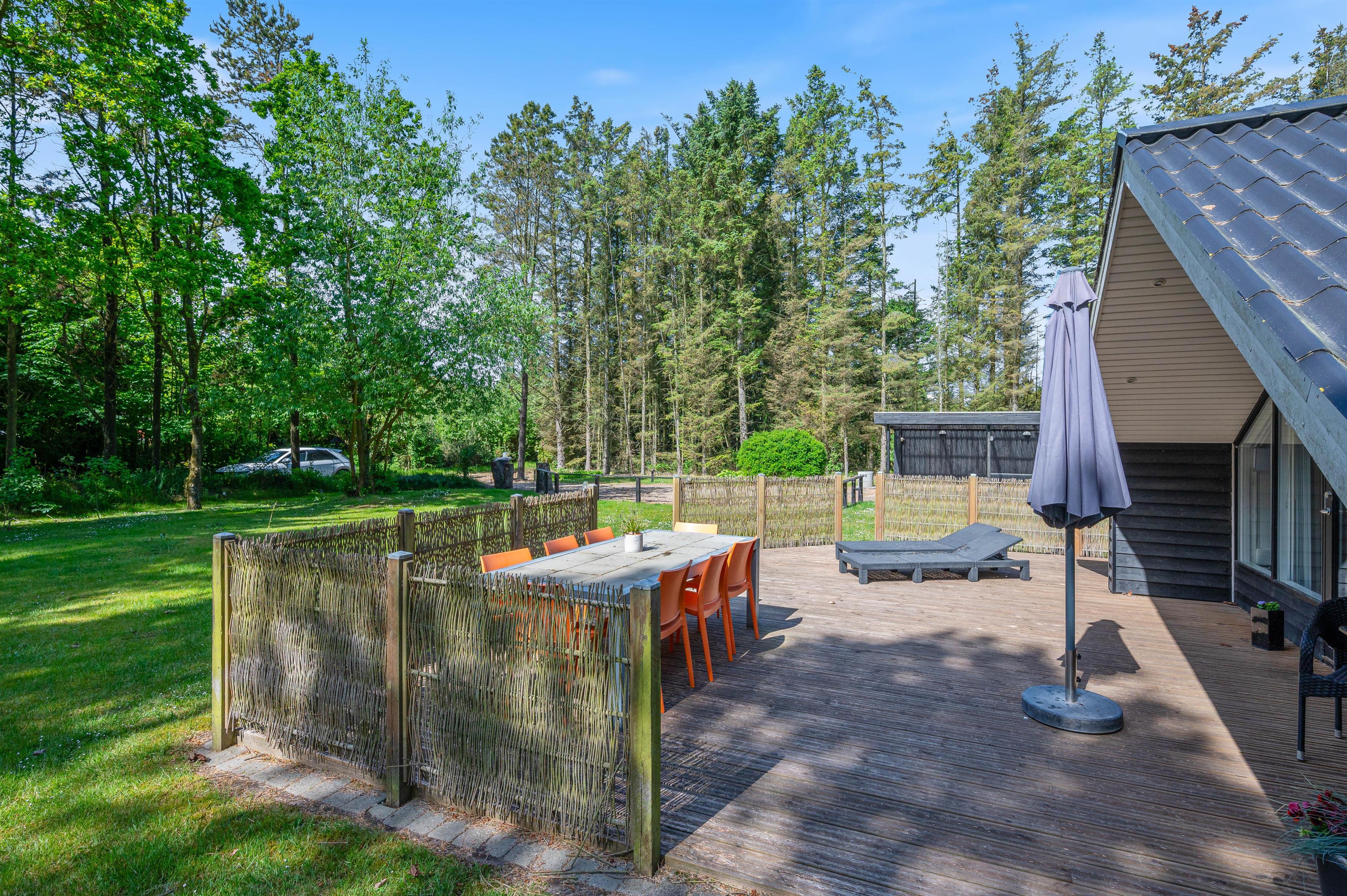 Udendørs har I en stor terrasse, som I kan rykke ud på, hvis ferievejret er lunt og dejligt. På terrasserne har I havemøbler til rådighed, som I kan slå jer ned i og nyde udsigten til den smukke natur.