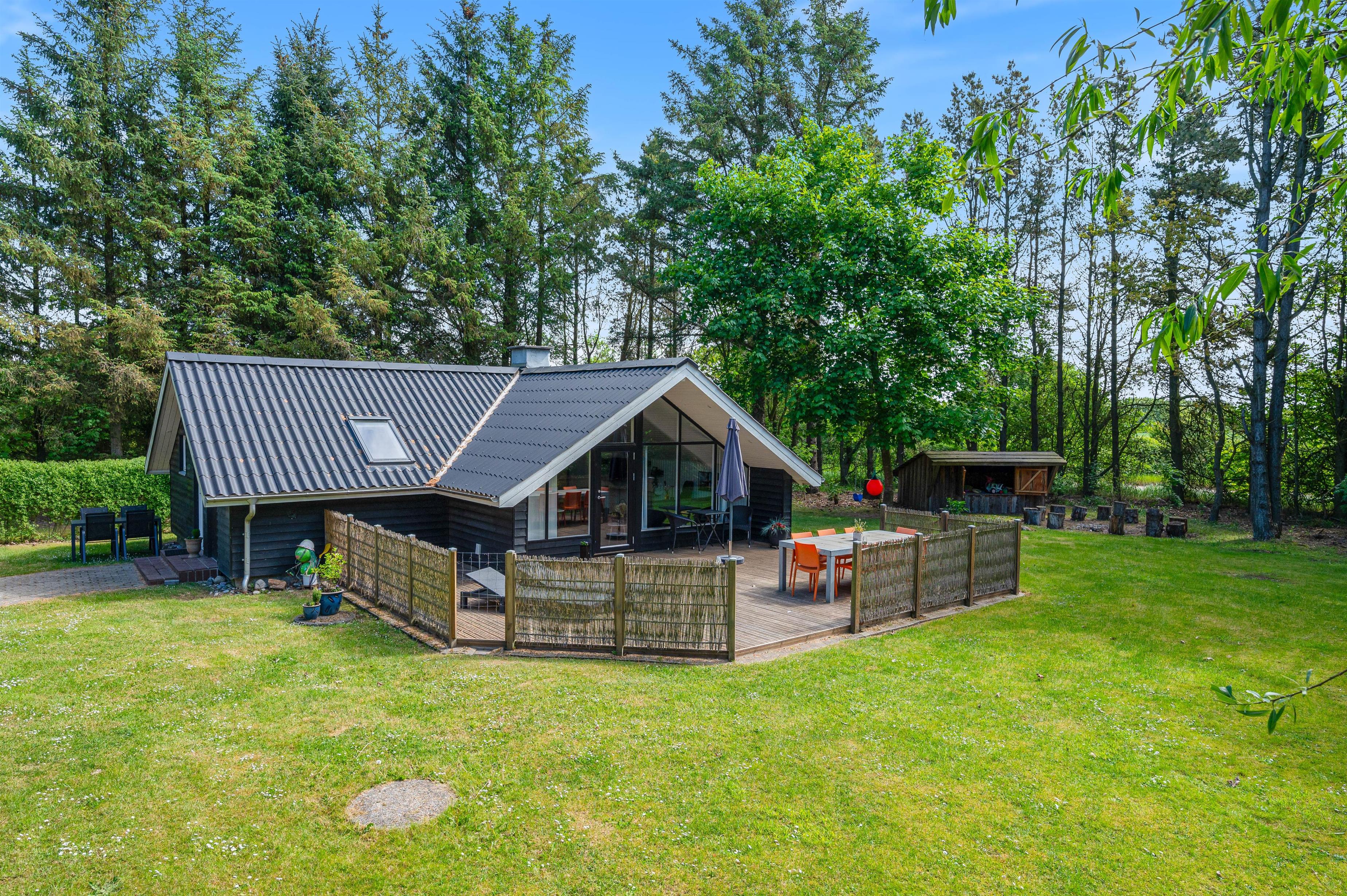 På sommerhusets plænegrund finder I en shelter, hvor I kan overnatte under åben himmel og få en god nats søvn tæt på naturen. Her kan I vågne til fuglesang og nyde en smuk solopgang – en helt særlig naturoplevelse ved sommerhuset.