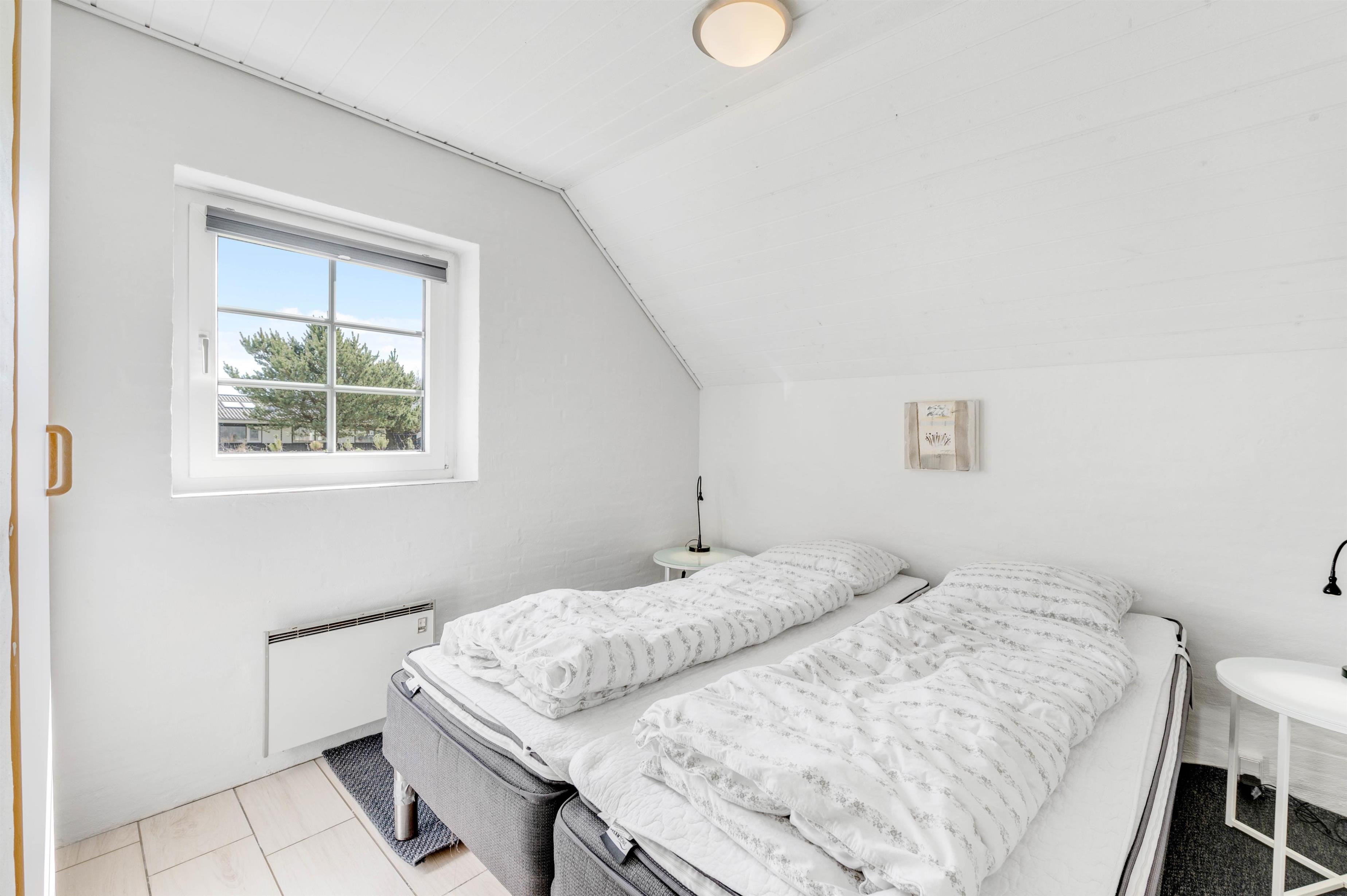 Sommerhuset på Risbjergvej 1 fremstår lyst og venligt med klassisk sommerhus-interiør, og det nye køkken samt den integrerede stue med brændeovn, vil uden tvivl danne rammen om mange gode feriestunder. Sommerhuset på Risbjergvej 1 rummer alle de praktiske nødvendigheder, der skal til for at gøre ferien afslappende. Der er både opvaskemaskine, vaskemaskine og tørretumbler i sommerhuset. Som en ekstra konmfort er der gulvvarme på badeværelset, så man ikke fryser om fødderne om morgenen. Feriehuset indeholder hele 3 badeværelser, så der ikke opstår kø ved morgenrutinen. Sommerhuset har 6 gode soveværelser, hvoraf det ene består af 2 køjesenge.