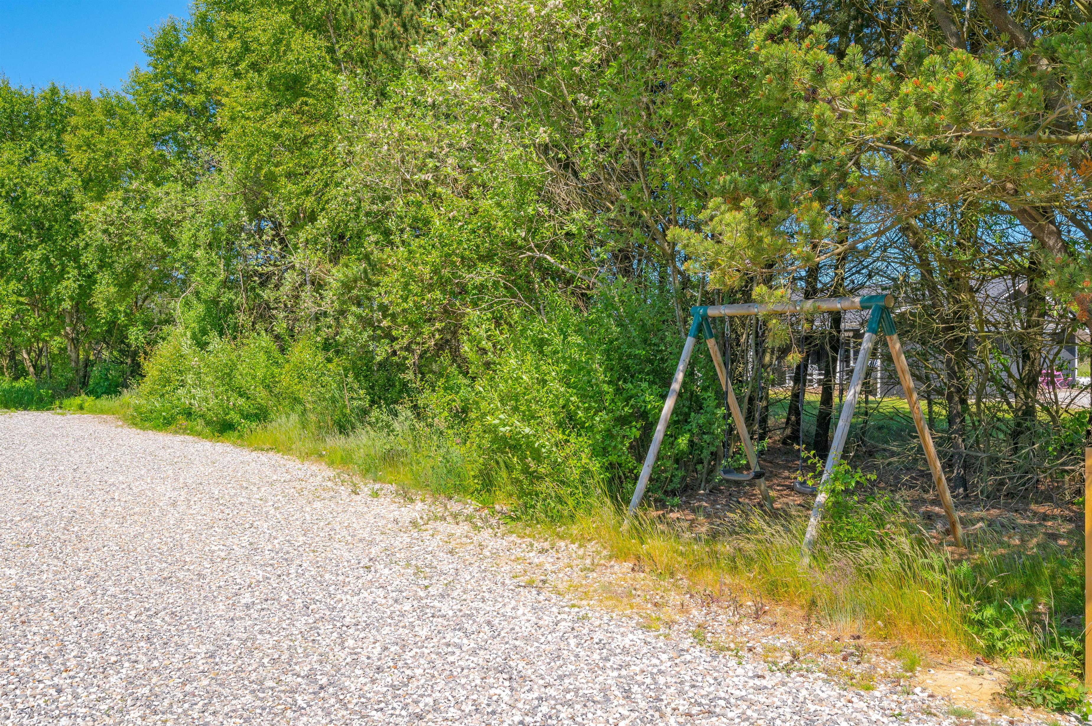 På østsiden af sommerhuset finder I en ugeneret, lukket terrasse, hvor børnene kan spille bold og benytte sig af fodboldmålene og hunden løbe frit. Om aftenen kan I tænde op i grillen og tilberede en lækker middag i den lune aftensol. På naturgrunden findes både gynger og sandkasse, som de mindste kan lege med, mens I holder øje med bøfferne på grillen.