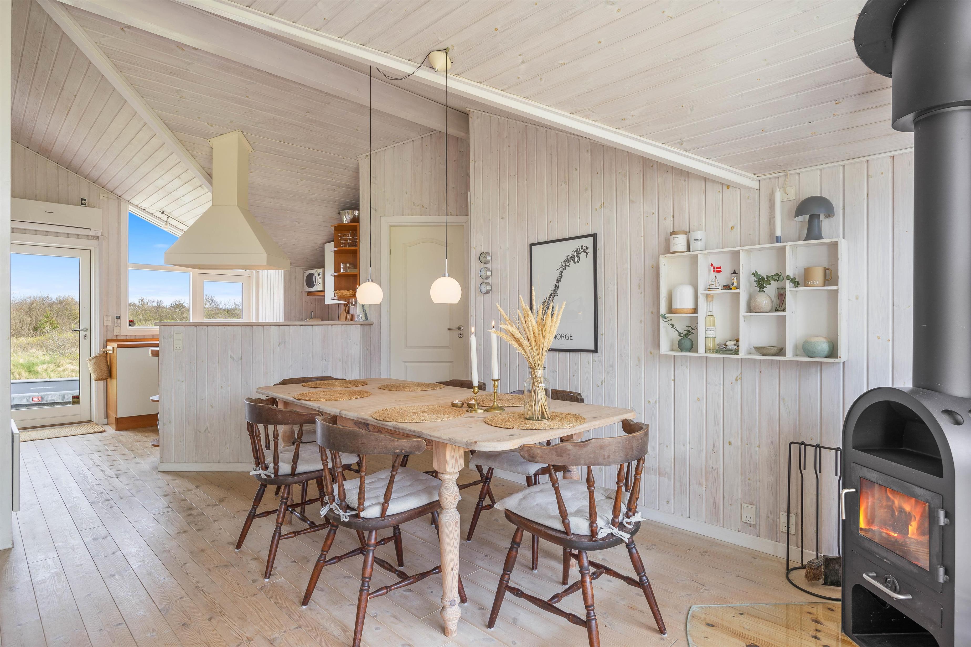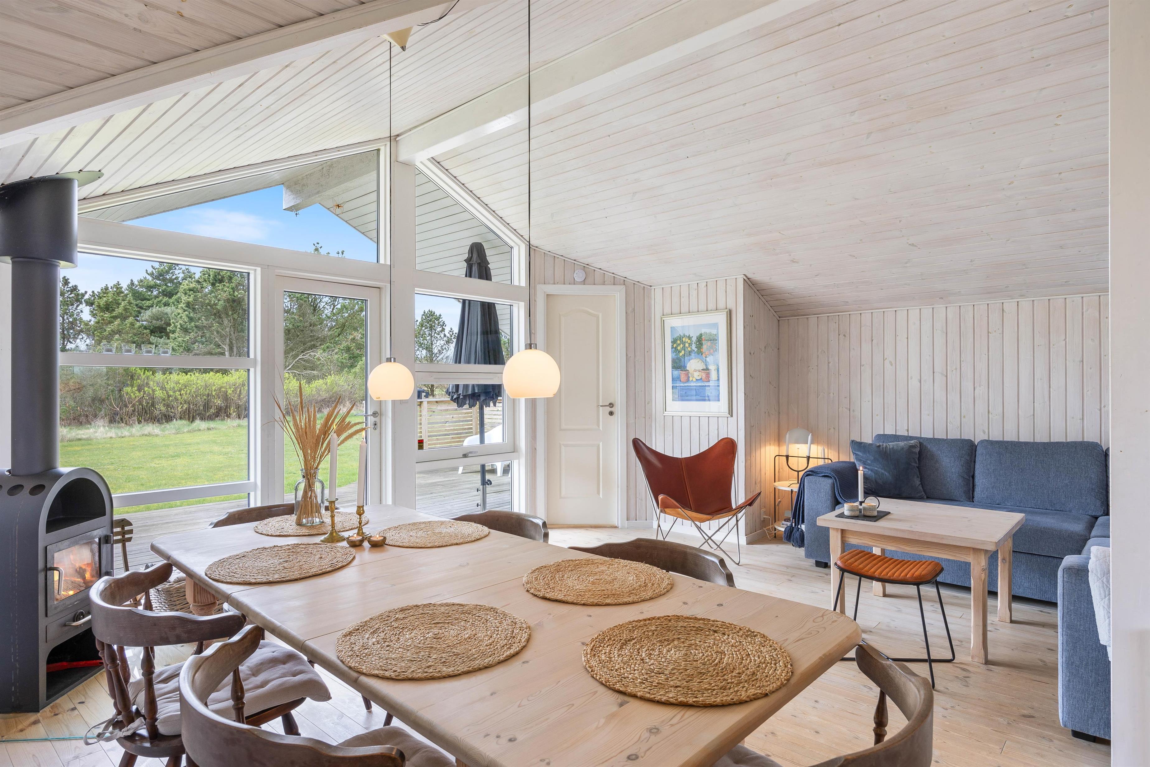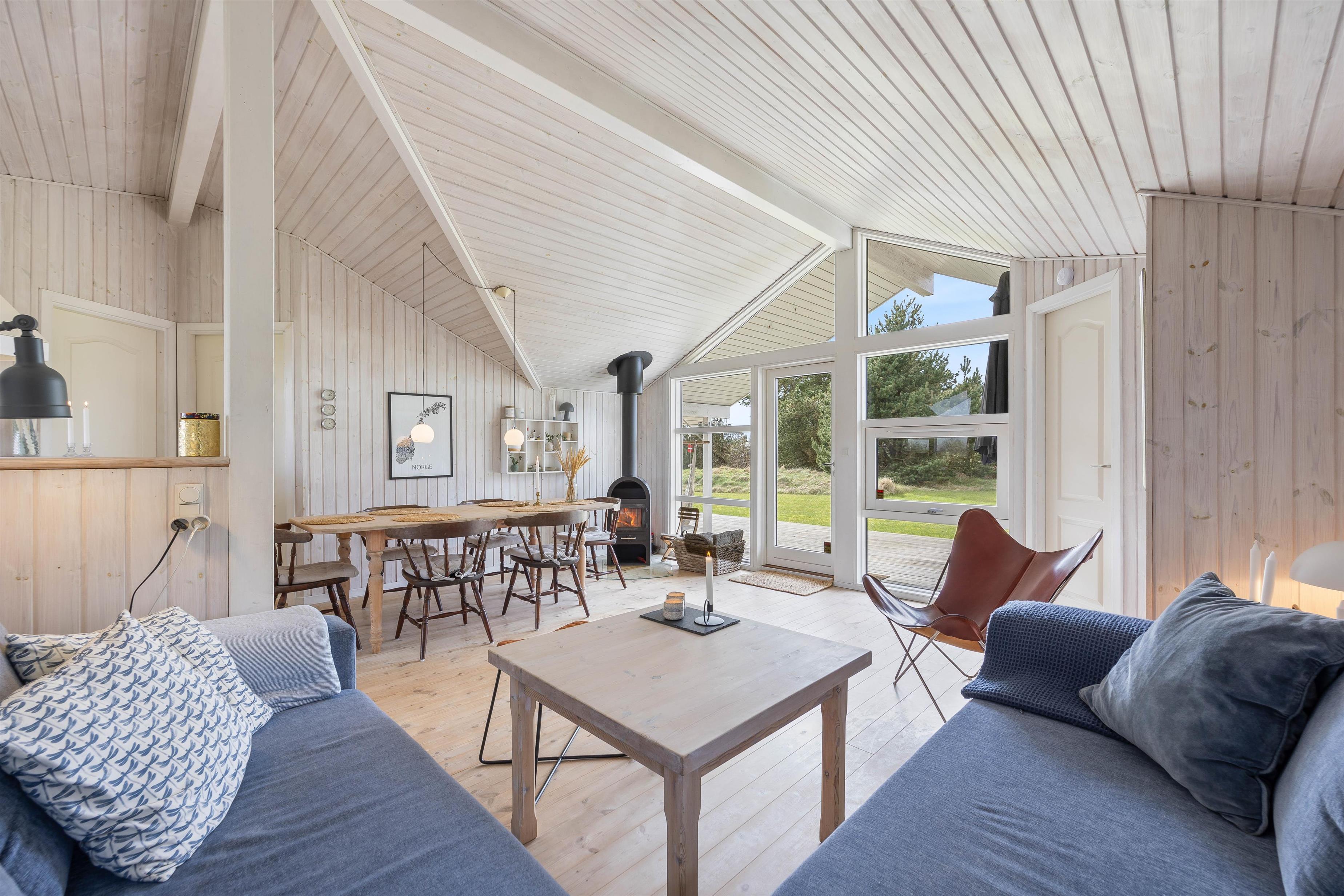 Feriehuset byder jer varmt velkommen med sine 74 kvadratmeter og har plads nok til en ferie med op til 6 personer. I opholdsstuen kan I spille spil sammen, planlægge jeres næste ferieaktiviteter eller lave mad sammen og nyde jeres kulinariske lækkerier. Tv’et i stuen er udstyret med et Apple TV, som I kan bruge til at streame jeres yndlingsserier, mens I hygger på sofaen. Den energibesparende luft-til-luft varmepumpe sørger for en konstant og behagelig varme i feriehuset. På regnfulde og kolde dage skaber en varm kop kakao foran den knitrende brændeovn en særlig hyggelig stemning.