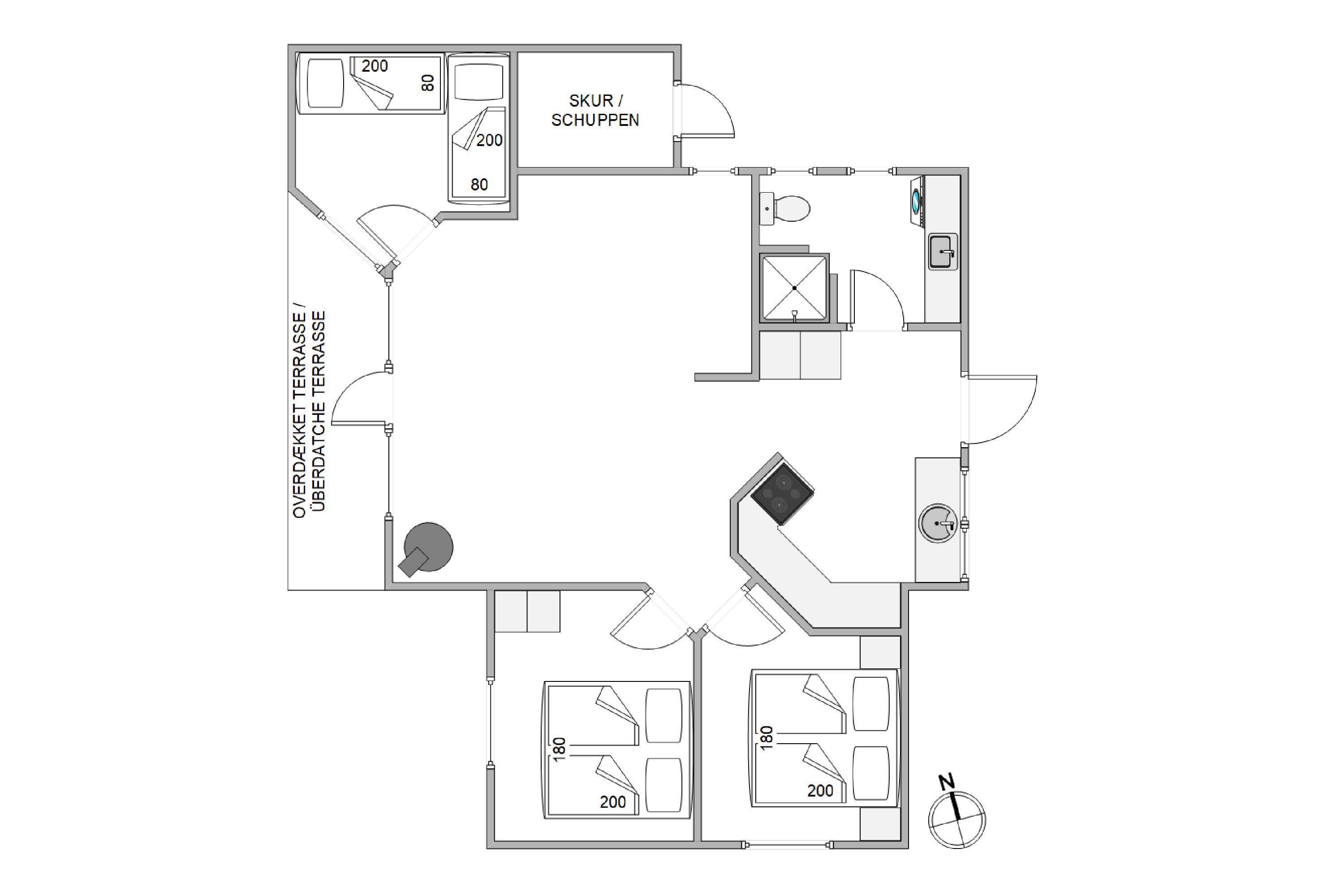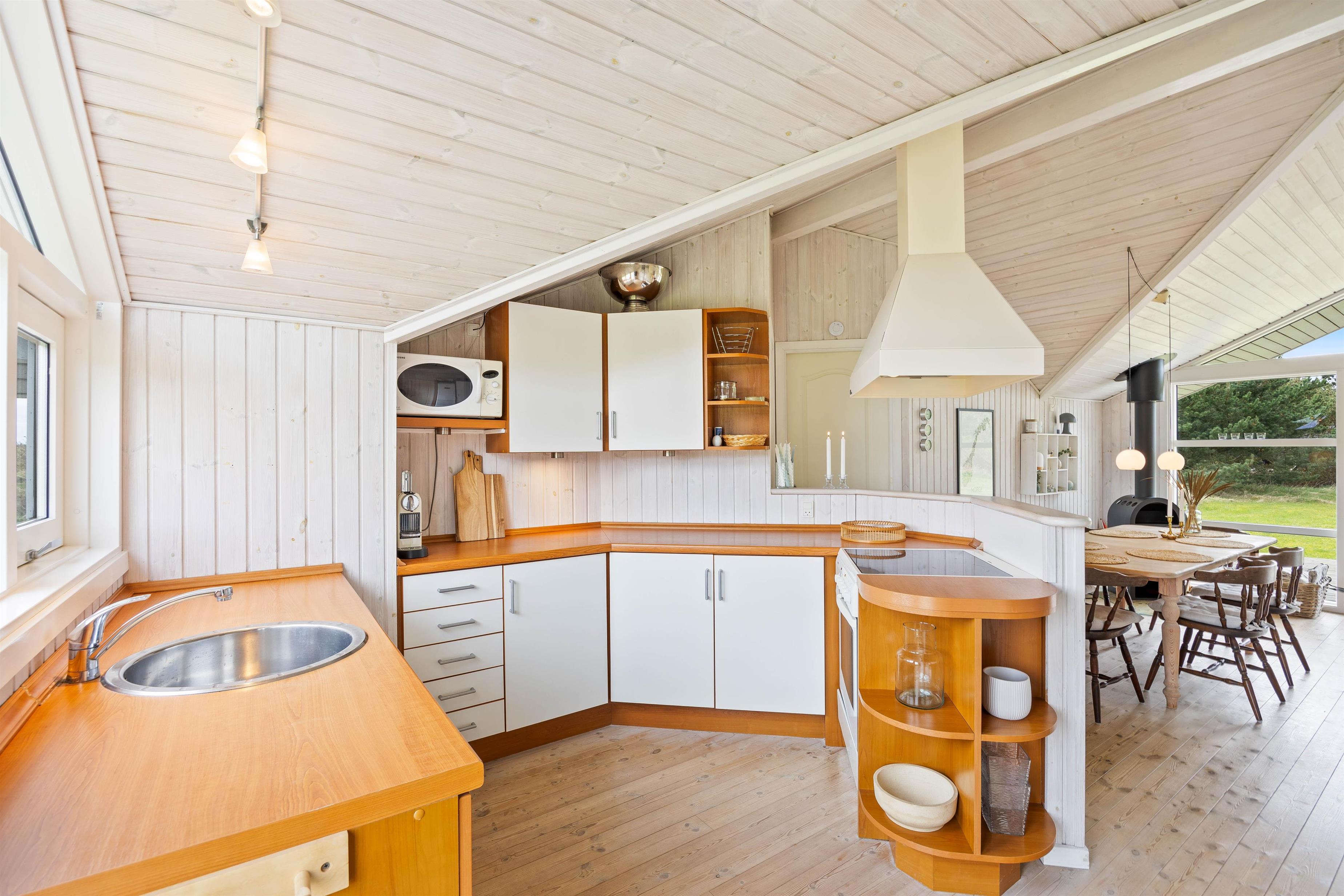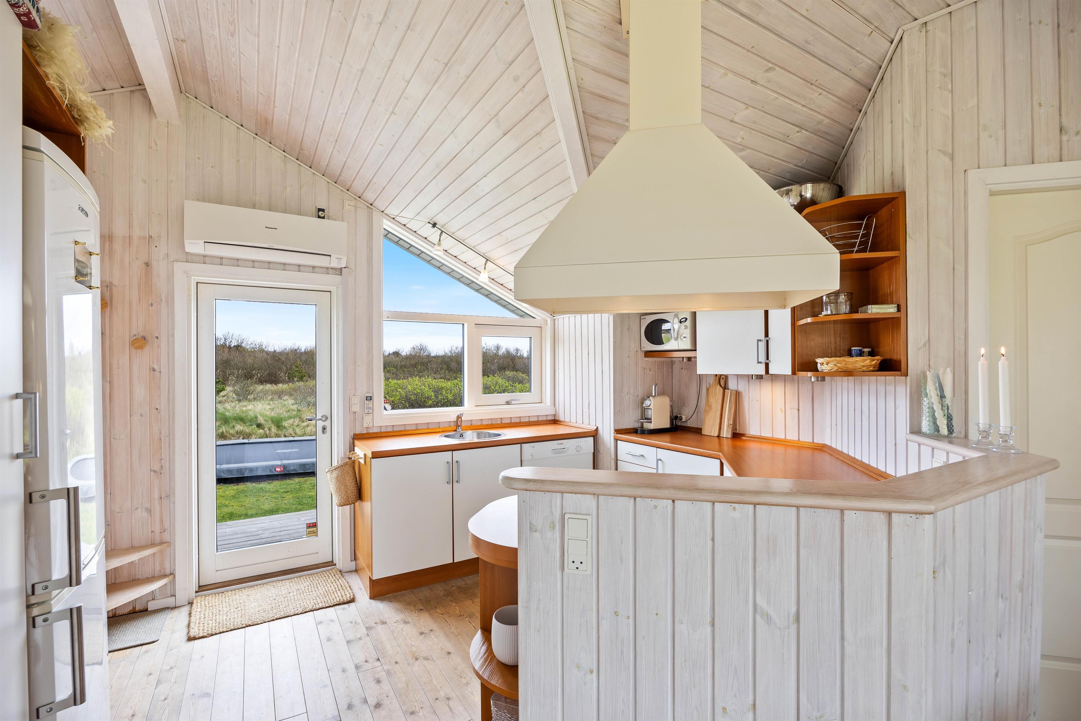 Feriehuset byder jer varmt velkommen med sine 74 kvadratmeter og har plads nok til en ferie med op til 6 personer. I opholdsstuen kan I spille spil sammen, planlægge jeres næste ferieaktiviteter eller lave mad sammen og nyde jeres kulinariske lækkerier. Tv’et i stuen er udstyret med et Apple TV, som I kan bruge til at streame jeres yndlingsserier, mens I hygger på sofaen. Den energibesparende luft-til-luft varmepumpe sørger for en konstant og behagelig varme i feriehuset. På regnfulde og kolde dage skaber en varm kop kakao foran den knitrende brændeovn en særlig hyggelig stemning.