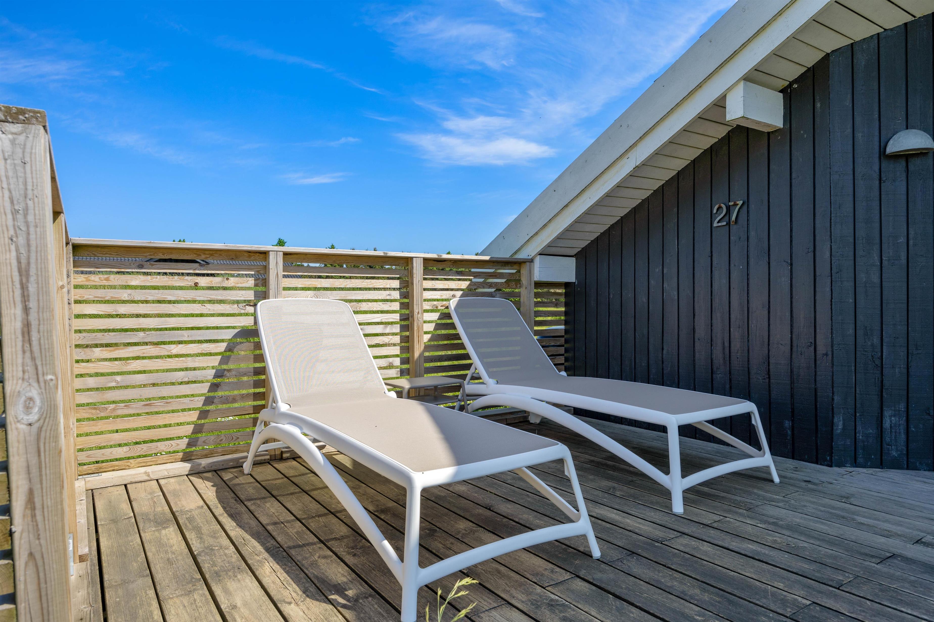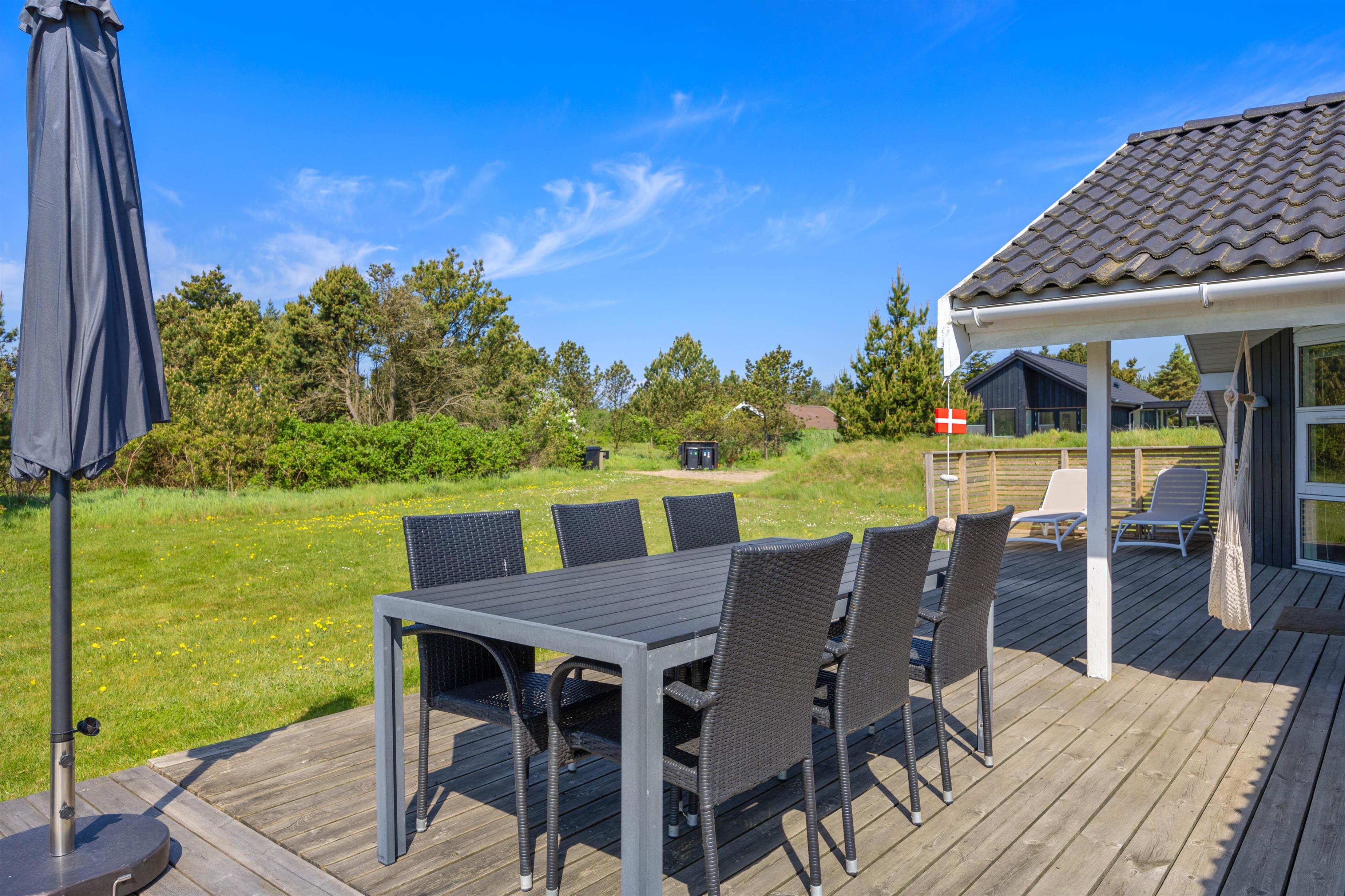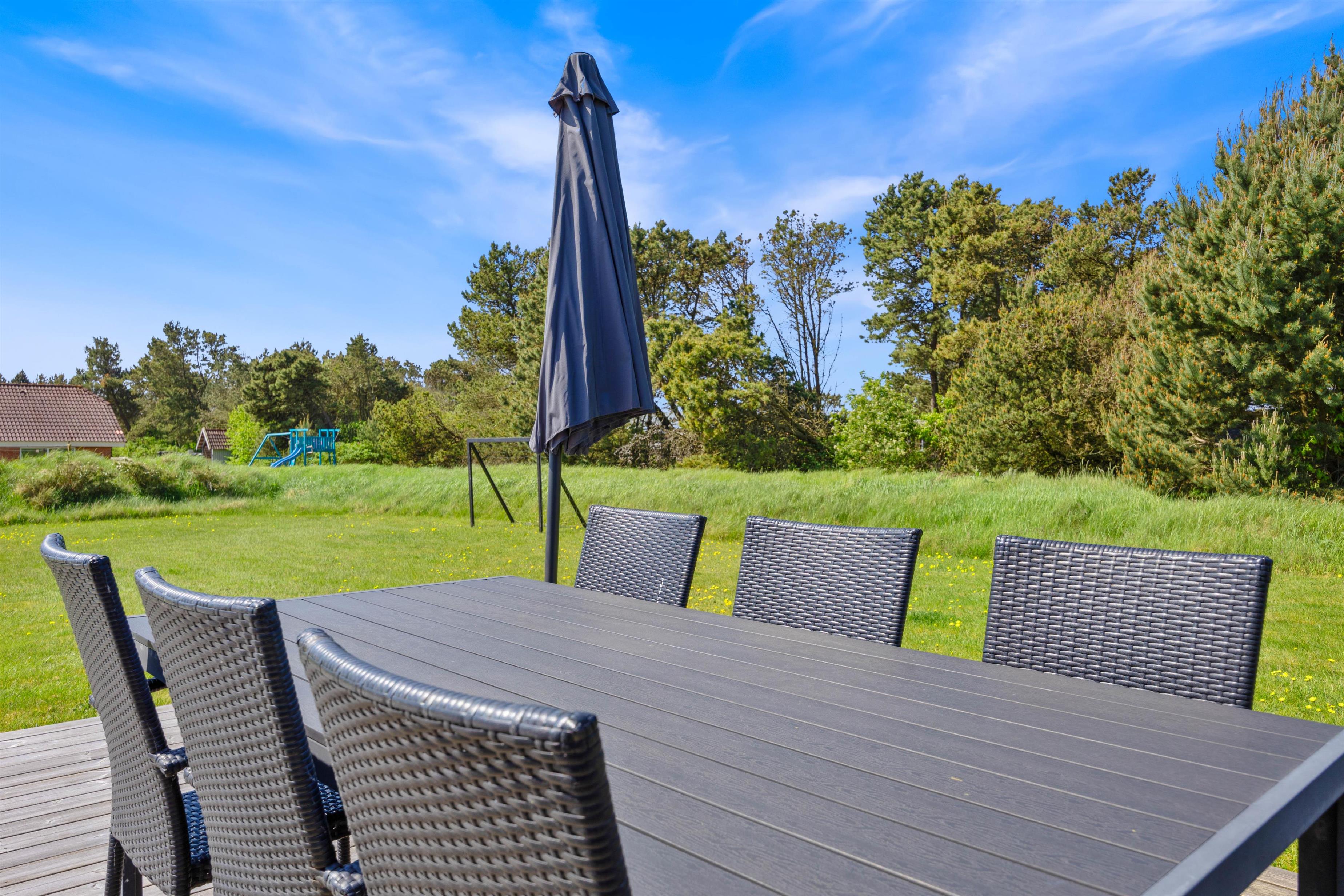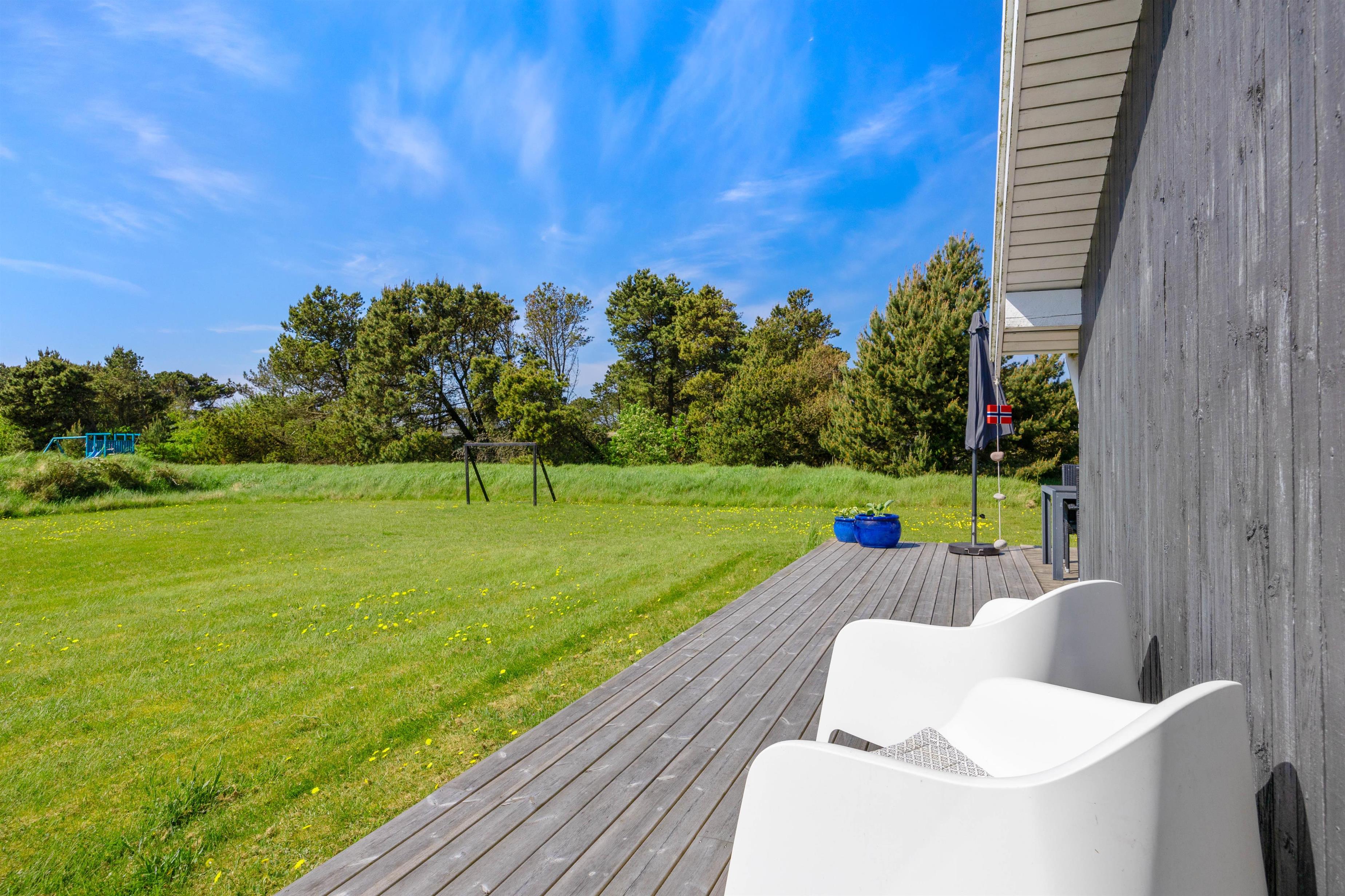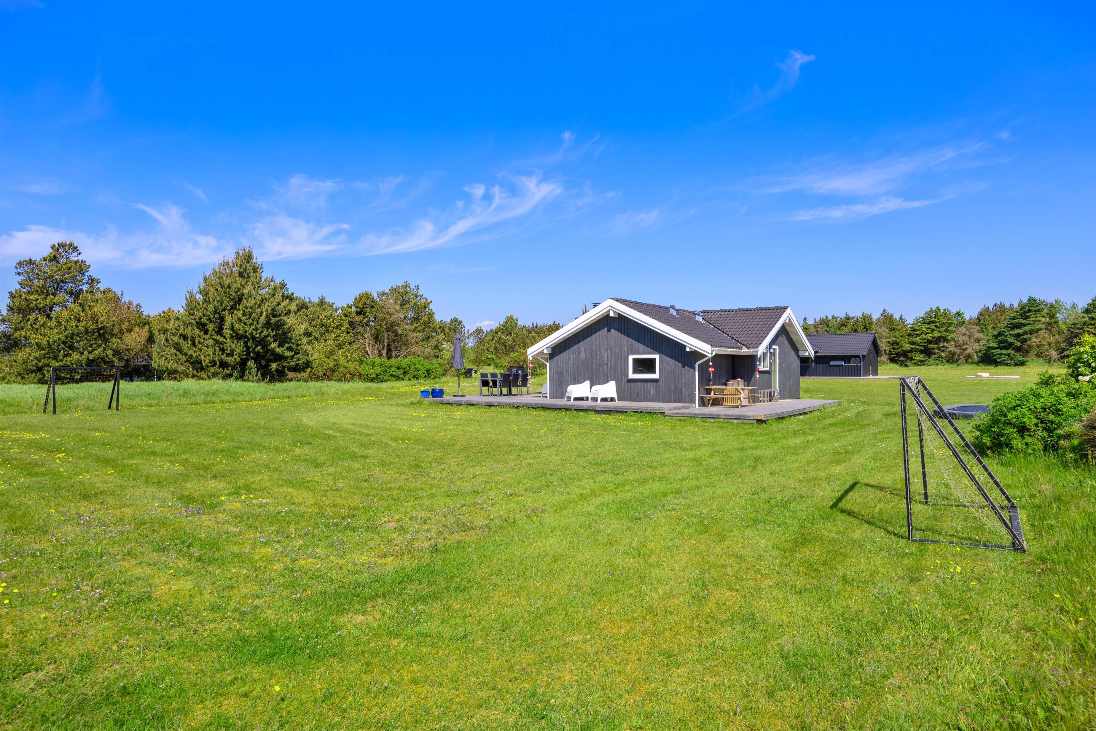 Feriehuset på Sivsangervej 27 i Lodberg Hede ligger på en græsplæne og naturgrund på ca. 2347 m2 og giver derfor børn og hund masser af plads til at lege og løbe rundt på. Feriehusets terrasse er delvist overdækket, så alle kan finde deres yndlingsplads, og der er mulighed for at sidde i solen hele dagen. Mens I gør jer det behageligt på terrassen, kan børnene boltre sig på trampolinen eller benytte sig af fodboldmålene, og spille en kamp. Om aftenen kan I runde ferien af med en lækker grillaften, på husets terrasse.