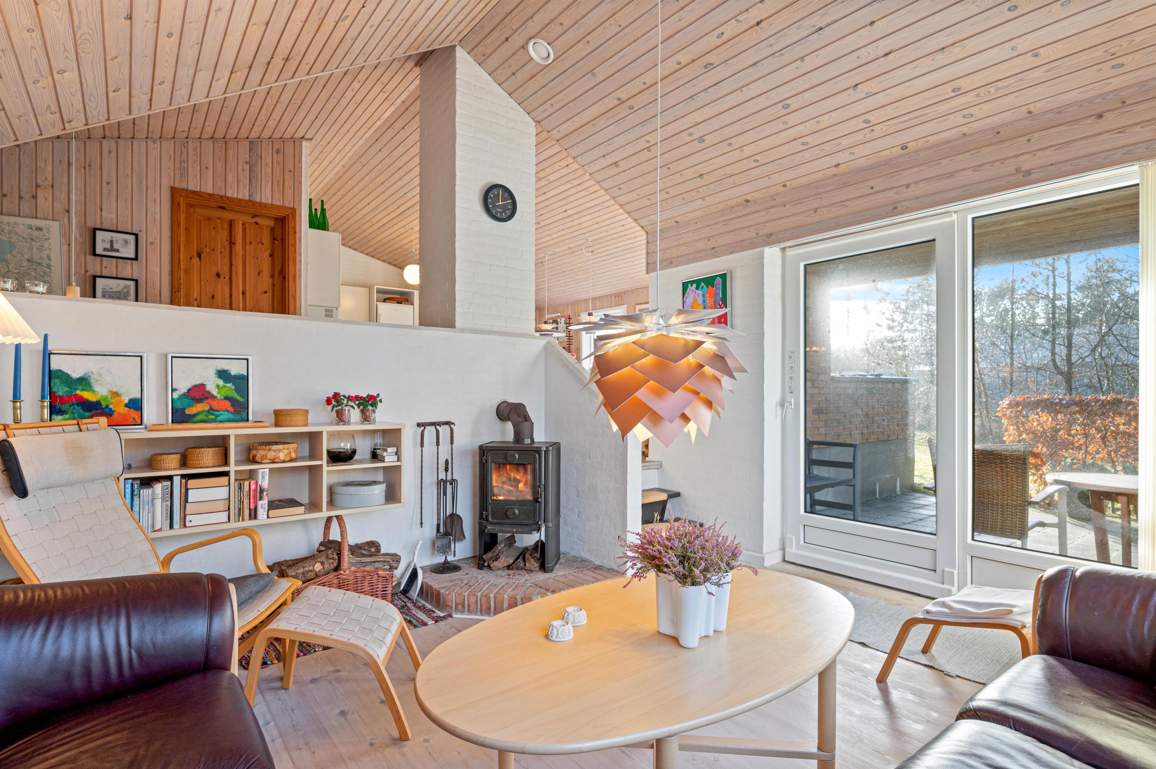 I vil straks føle jer hjemme, når I træder indenfor i feriehuset i Lodbjerg Hede, for synet, der møder jer, er lyst og indbydende. Det skyldes ikke mindst det høje loft til kip og de store vinduespartier, der inviterer lyset og udsigten indenfor. Og I vil formentlig føle et akut behov for at smække benene op i sofaen for at betragte den smukke udsigt.