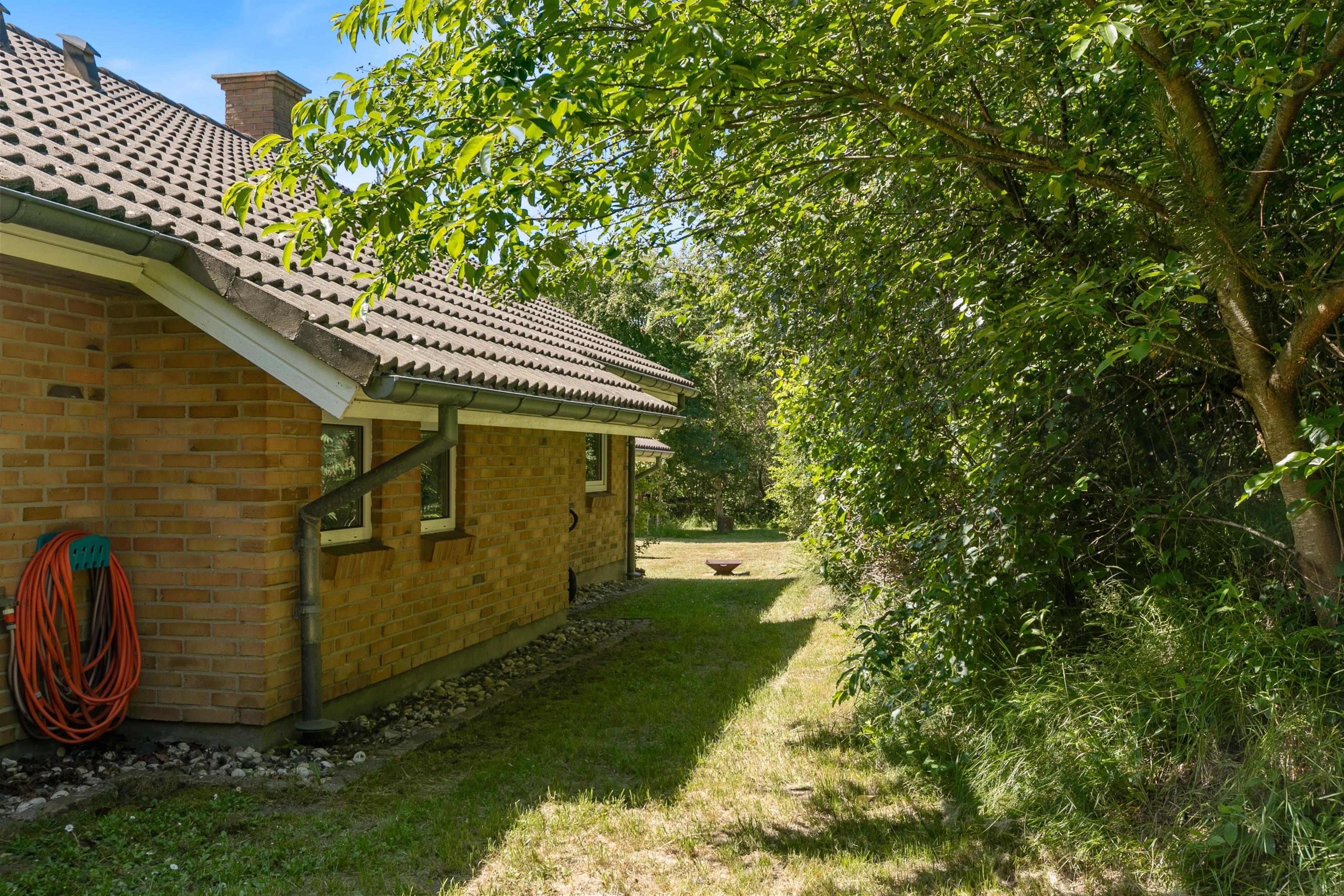 På terrassen kan I smække benene op og iagttage ikke alene legende børn, men også den smukke natur, der hersker på grunden. Hele vejen omkring den store, grønne plæne står træer og buske og danner et naturligt hegn. De skærmer ikke bare for vind og vejr, men giver jer også ekstra privatliv på ferien.