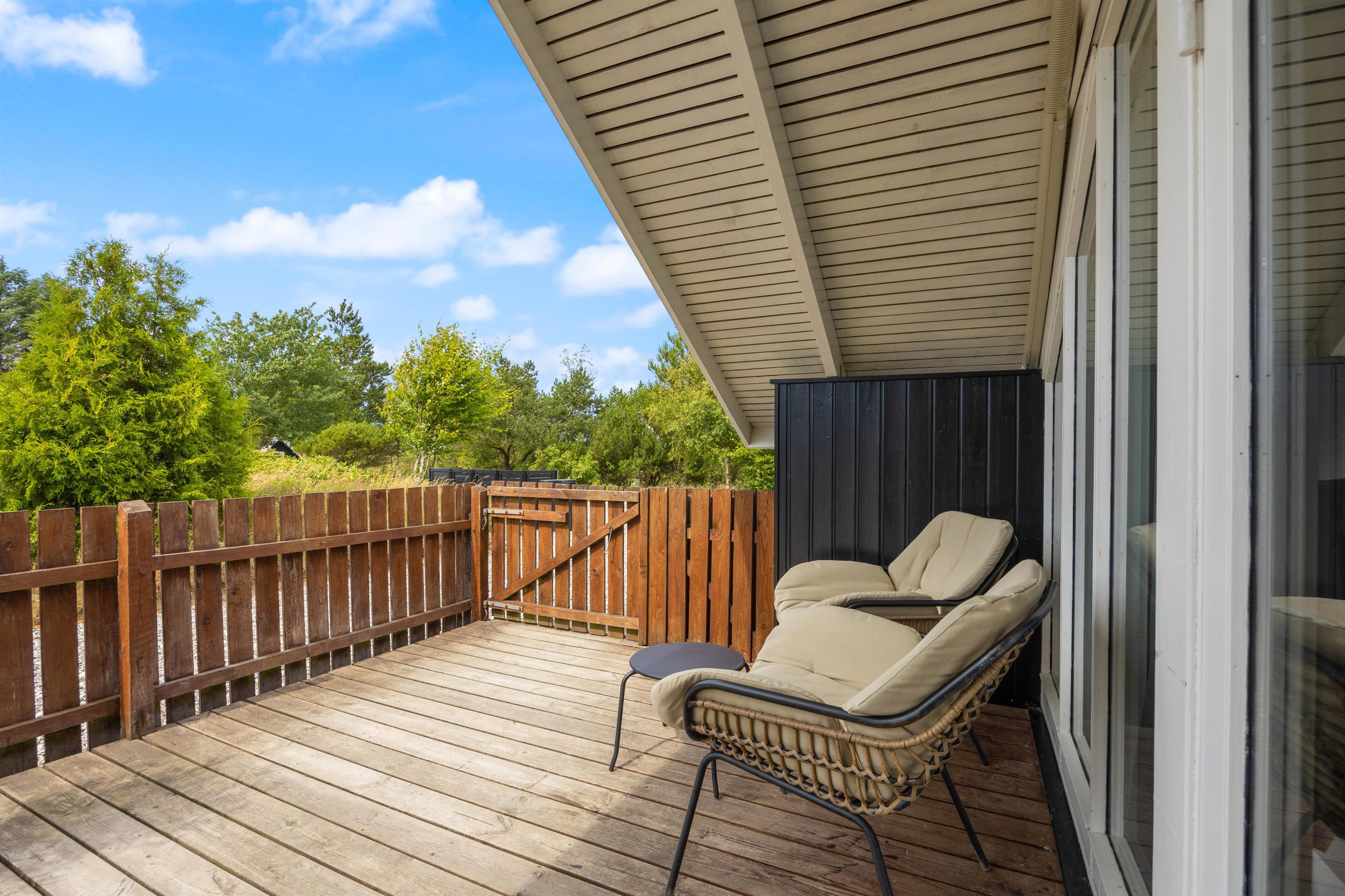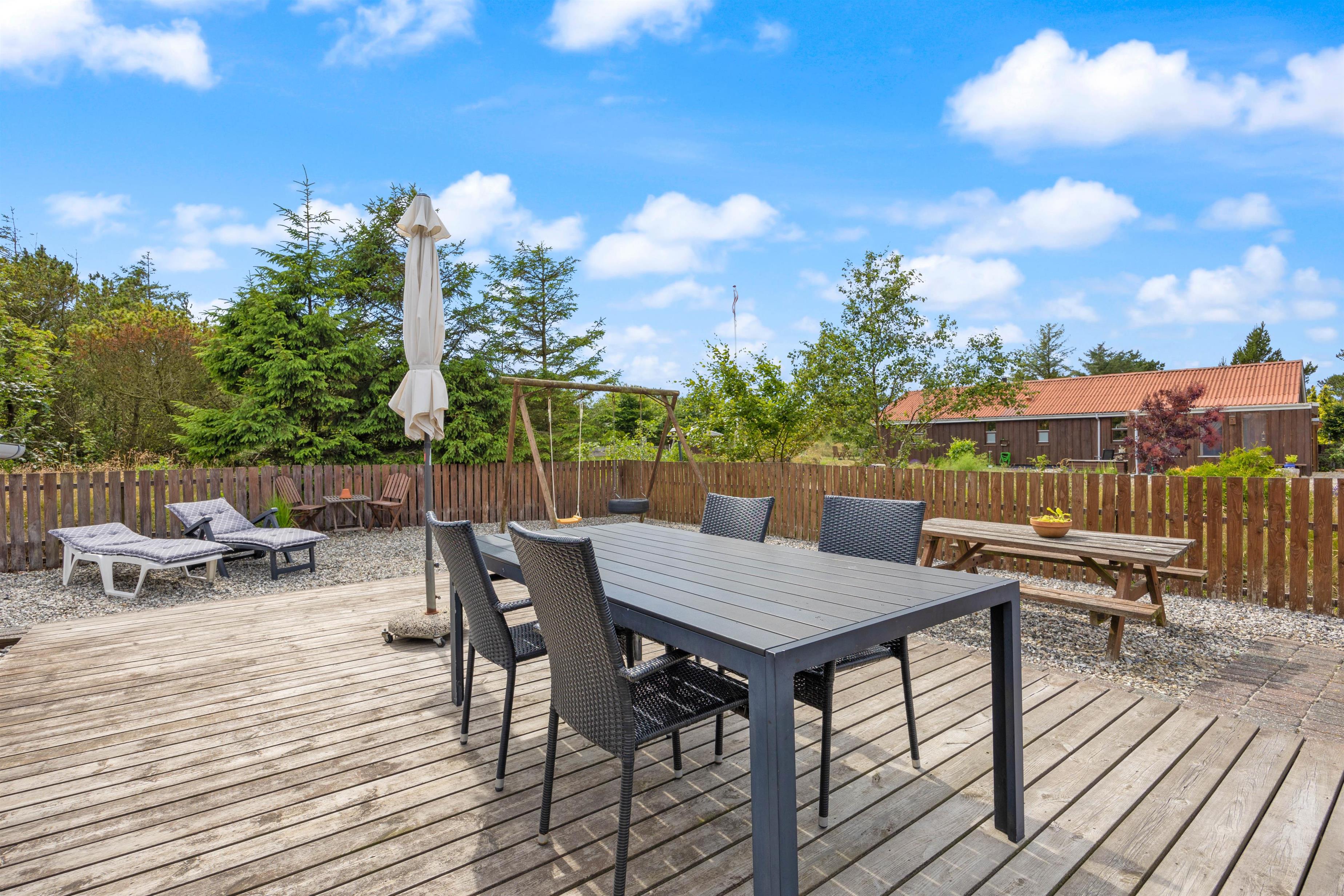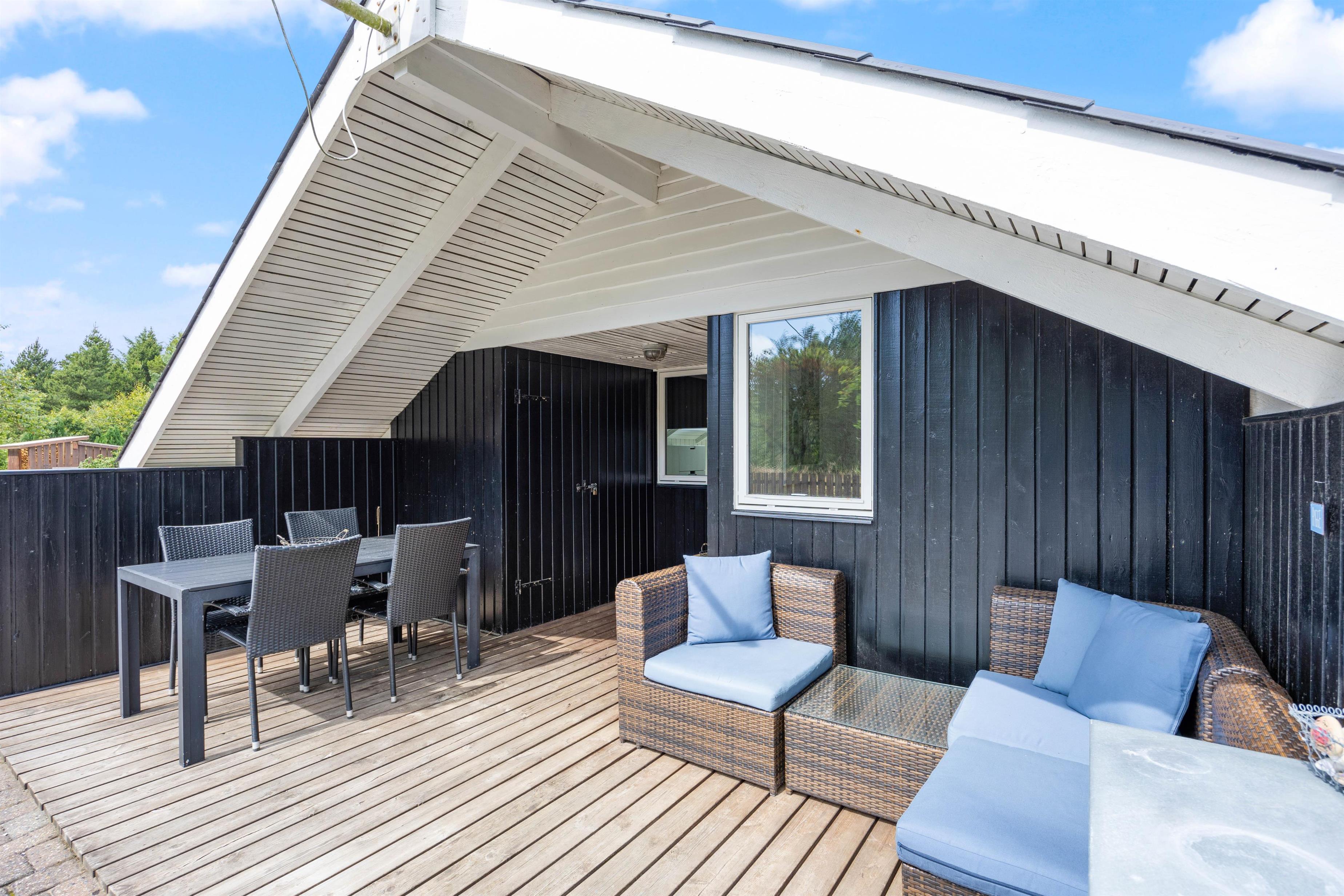 På den skønne naturgrund ligger sommerhuset med en skøn terrasse og solvogne, hvor I kan nyde det danske sommervejr. Der er også en dejlig træterrasse med en grill, så I kan tilberede lækker mad og nyde det udendørs. Der er også en hyggelig overdækket del, som kan skabe ly for duggen om aftenen eller skygge lidt for solen.
