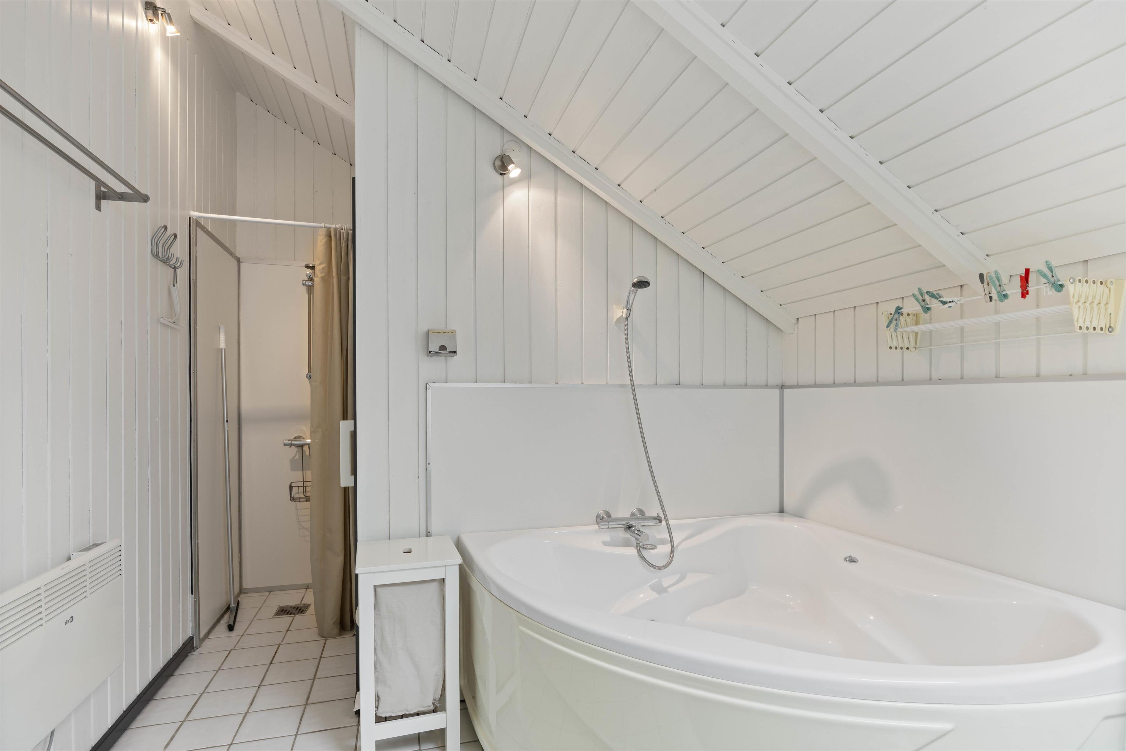 I det ene af sommerhusets to badeværelser er der en lækker spa til to personer, hvor I kan slappe af og nyde en hyggelig stund sammen. Den varme vandtemperatur og massagen fra boblerne kan virkelig hjælpe med at løsne spændinger og lade kroppen slappe af.