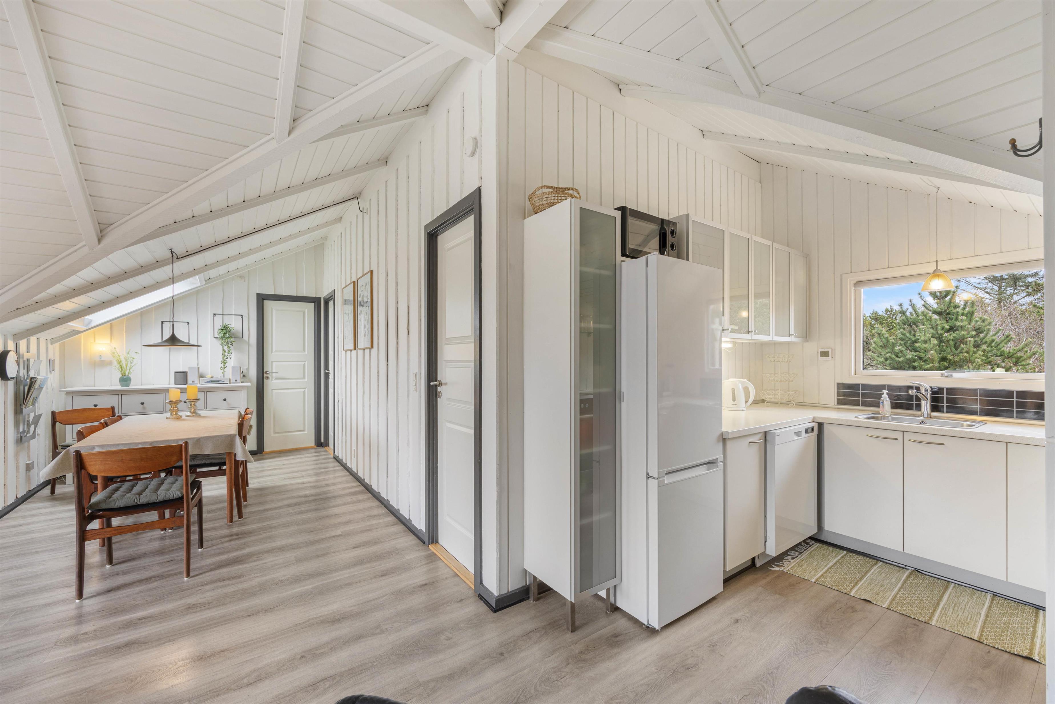 På Hybenvej 12 møder I et dejligt køkken, som er veludstyret med alt det nødvendige til at skabe dejlig feriemad og nyde gode måltider sammen under opholdet.