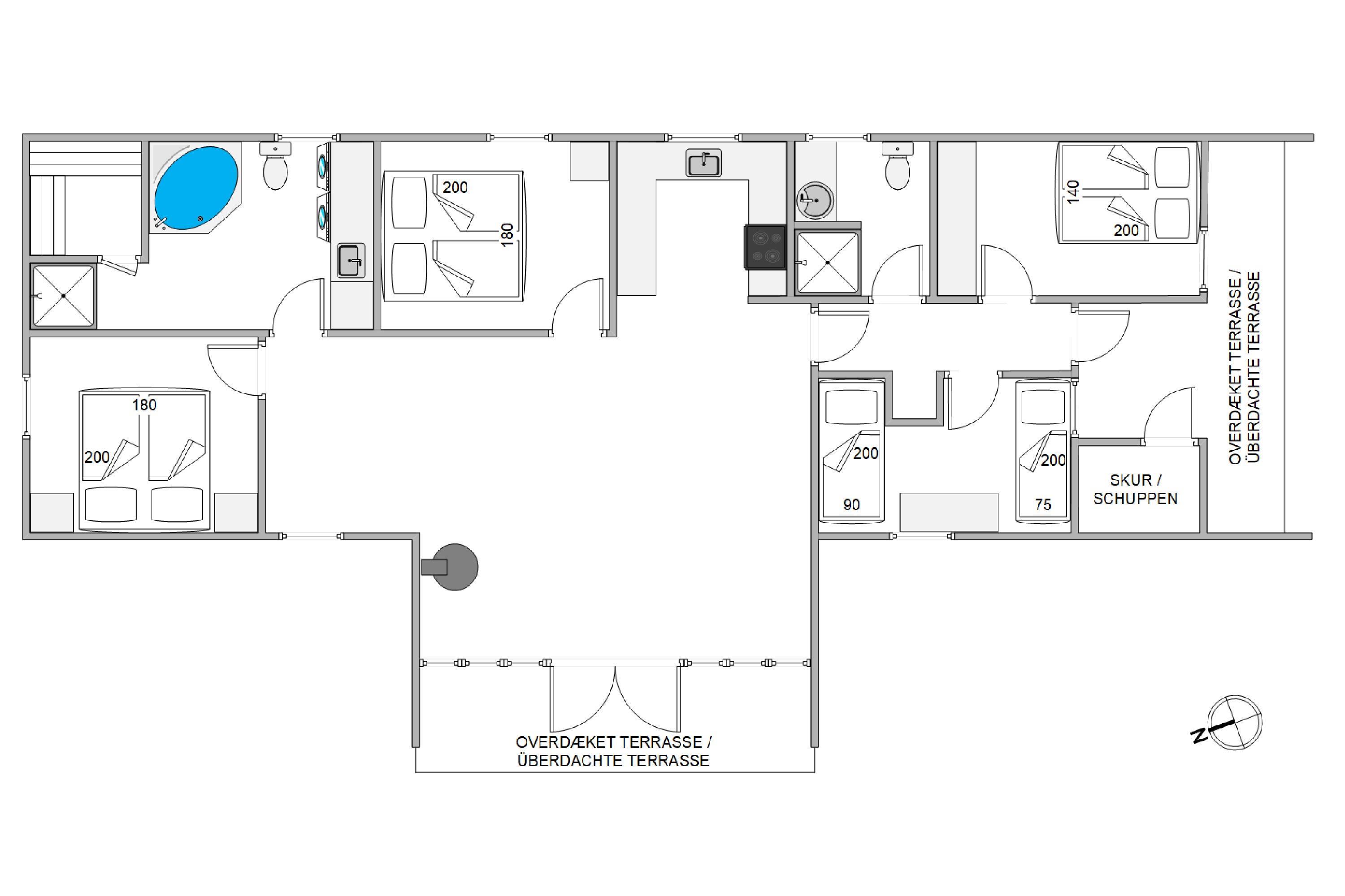 Så uanset vind, vejr og årstid, så er dette sommerhus på Hybenvej 12 et oplagt valg for jer, som ønsker en skøn ferie i dejlige omgivelser og wellness muligheder.