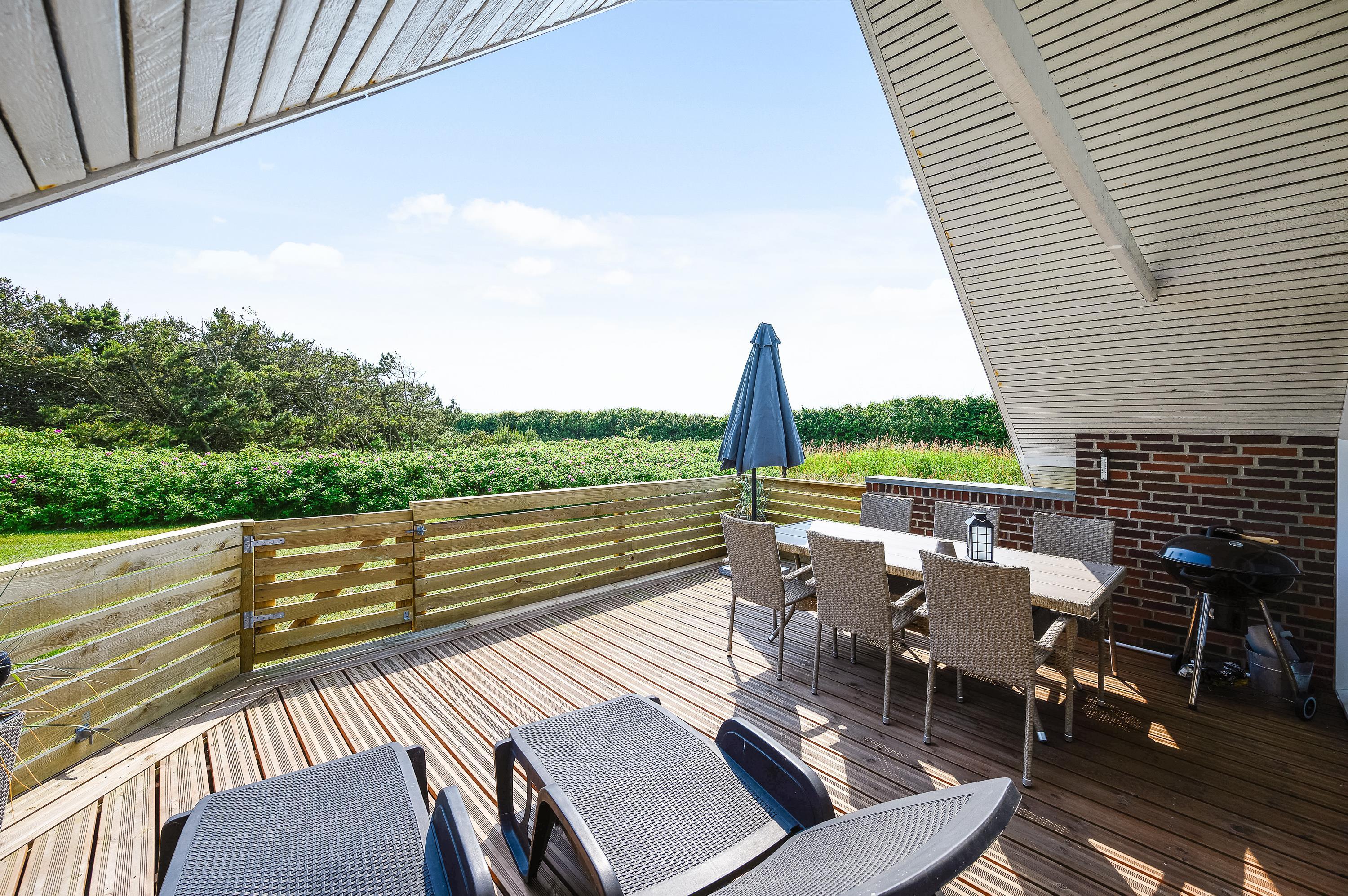 Selvom det er dejligt at opholde sig inden døre på adressen i Lodbjerg Hede, er det også oplagt at gøre brug af det skønne udeområde, der omgiver sommerhuset. På terrassen er der rig mulighed for afslapning, og I kan slå jer ned og indtage morgenkaffen i de behagelige havemøbler eller nyde solens stråler i liggestolene. Terrassen er lukket og delvist overdækket, så I kan let finde en dejlig krog med læ, selv hvis sommervejret viser sig fra sin lunefulde side. Og I skal på ingen måde frygte for at få jeres ferie spoleret med ubudne gæster eller larm. Sommerhuset ligger nemlig på en fuldkommen ugeneret grund i et roligt og børnevenligt område.