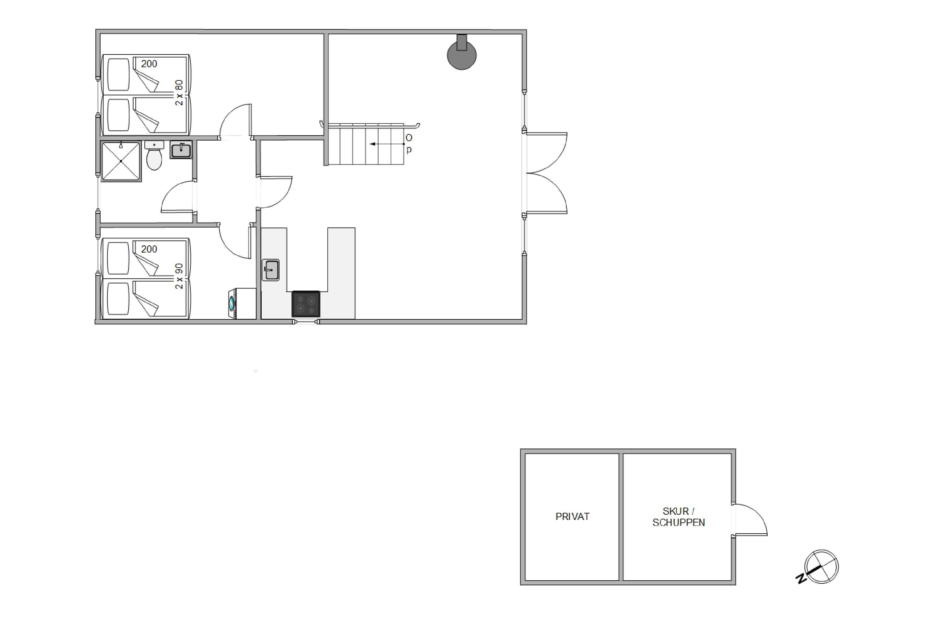 Sommerhuset har 2 soverum med 2 dobbeltsenge, og der er både opvaskemaskine og vaskemaskine til at tage sig af de praktiske fornødenheder på ferien.