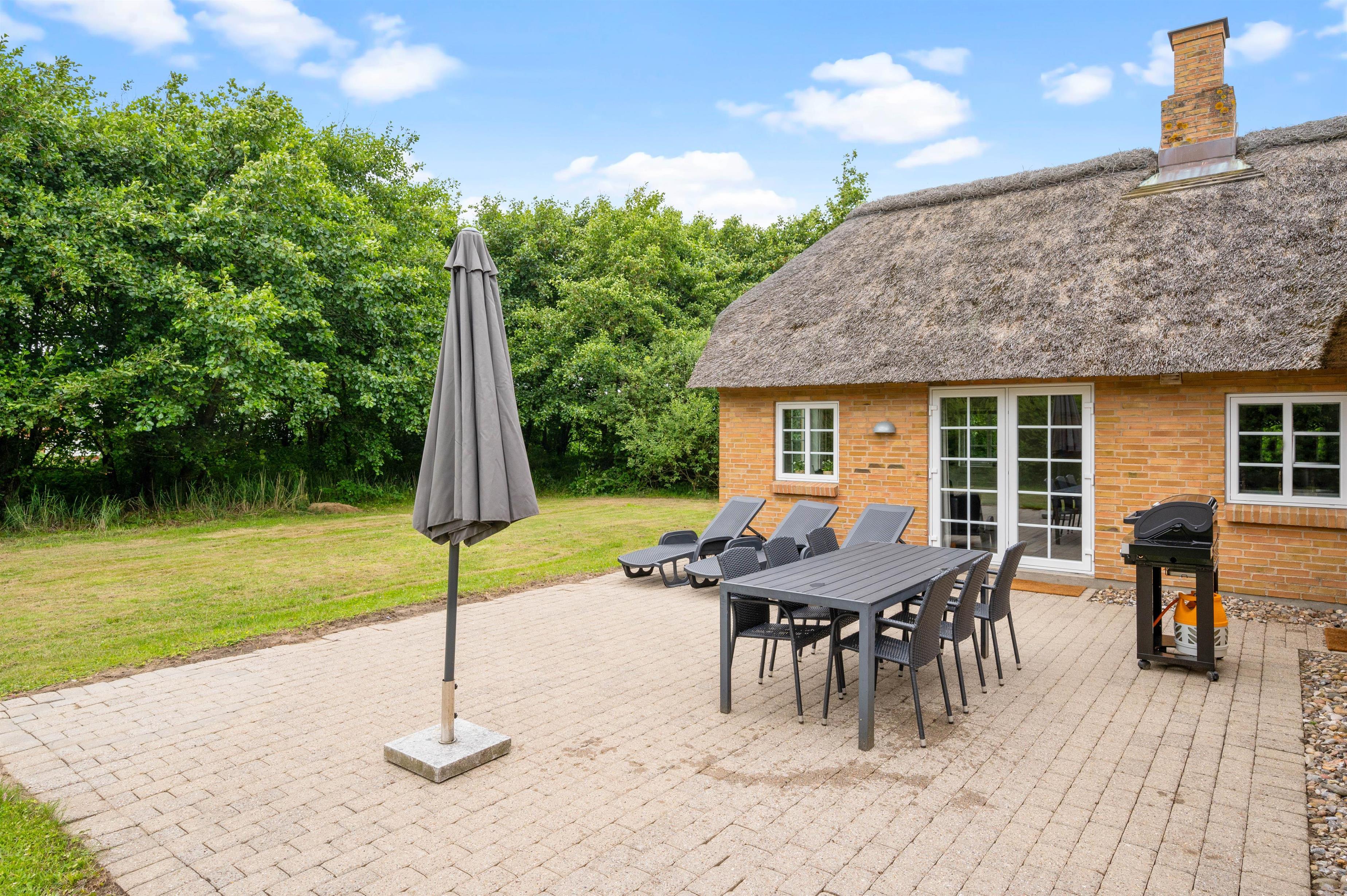 På Løvsangervej 13 ligger dette fine stråtækte stenhus på en stor naturgrund. Ferieboligen er rummelig og lyst indrettet og har en størrelse på 108 m2, så der er god plads til 6 personer. Her er også både sauna og spa til at give en fornemmelse af wellness på ferien. Beliggenheden er i gåafstand fra Vesterhavet, hvor I kan nyde lange gåture på stranden, mens I lytter til bølgernes brusen.