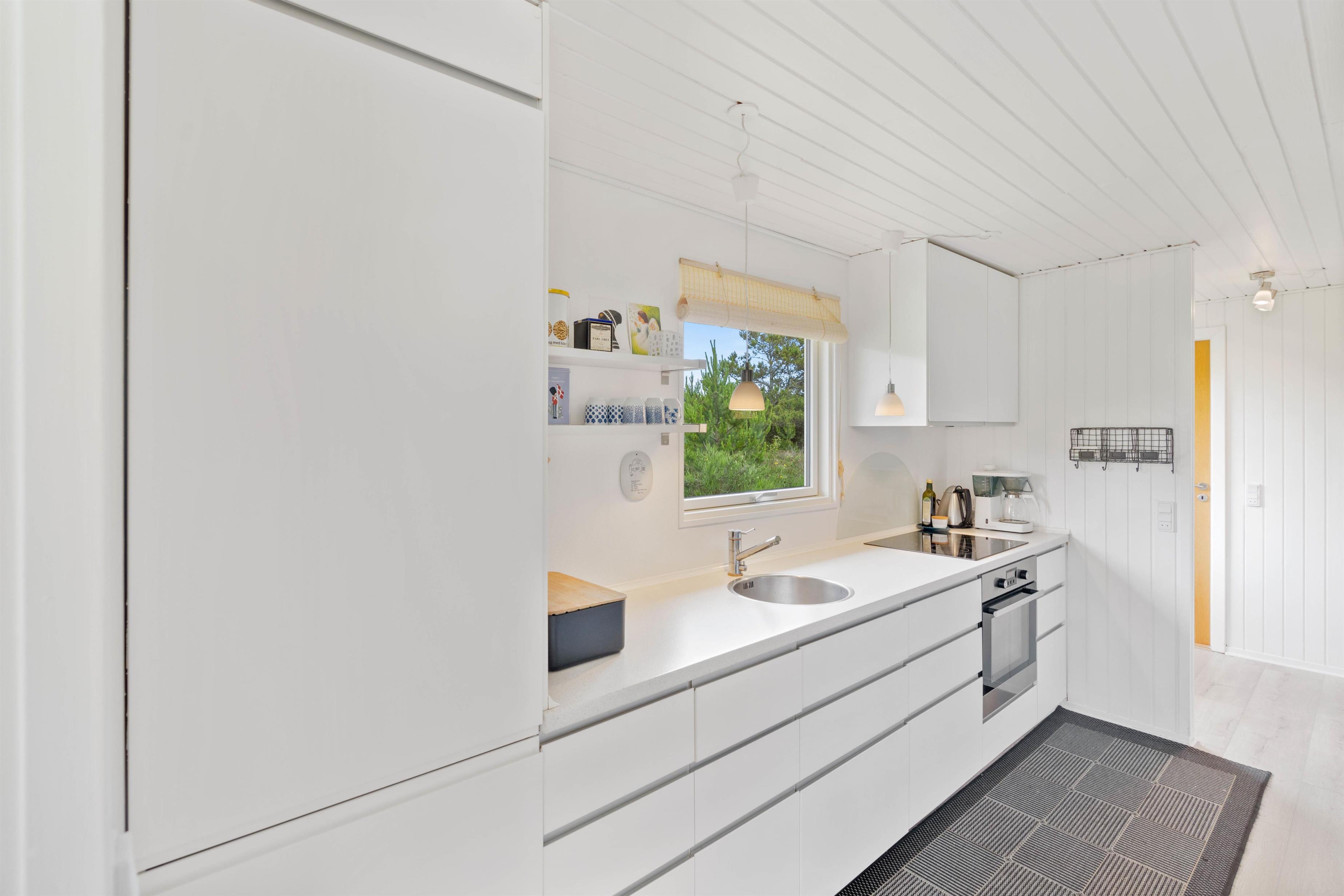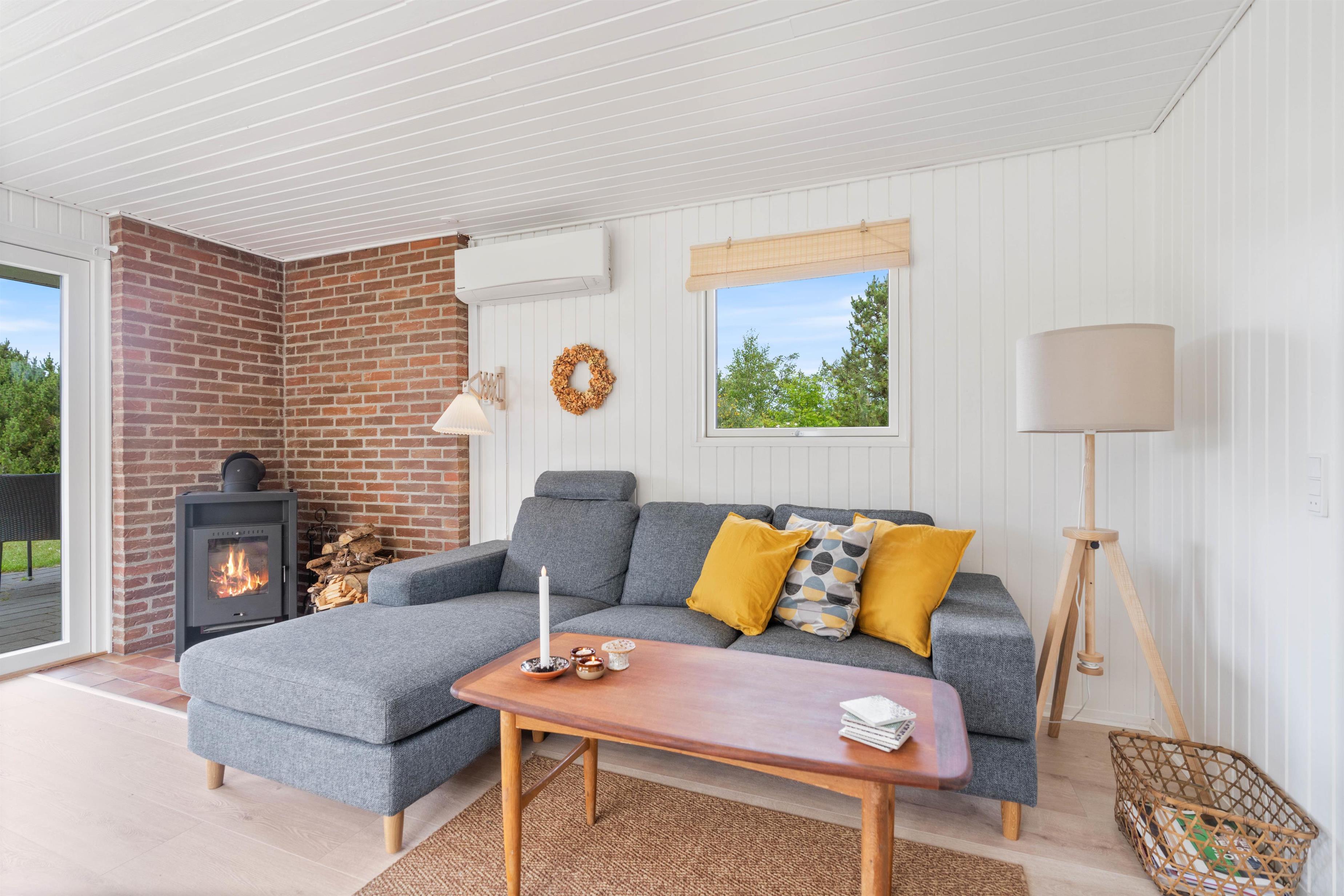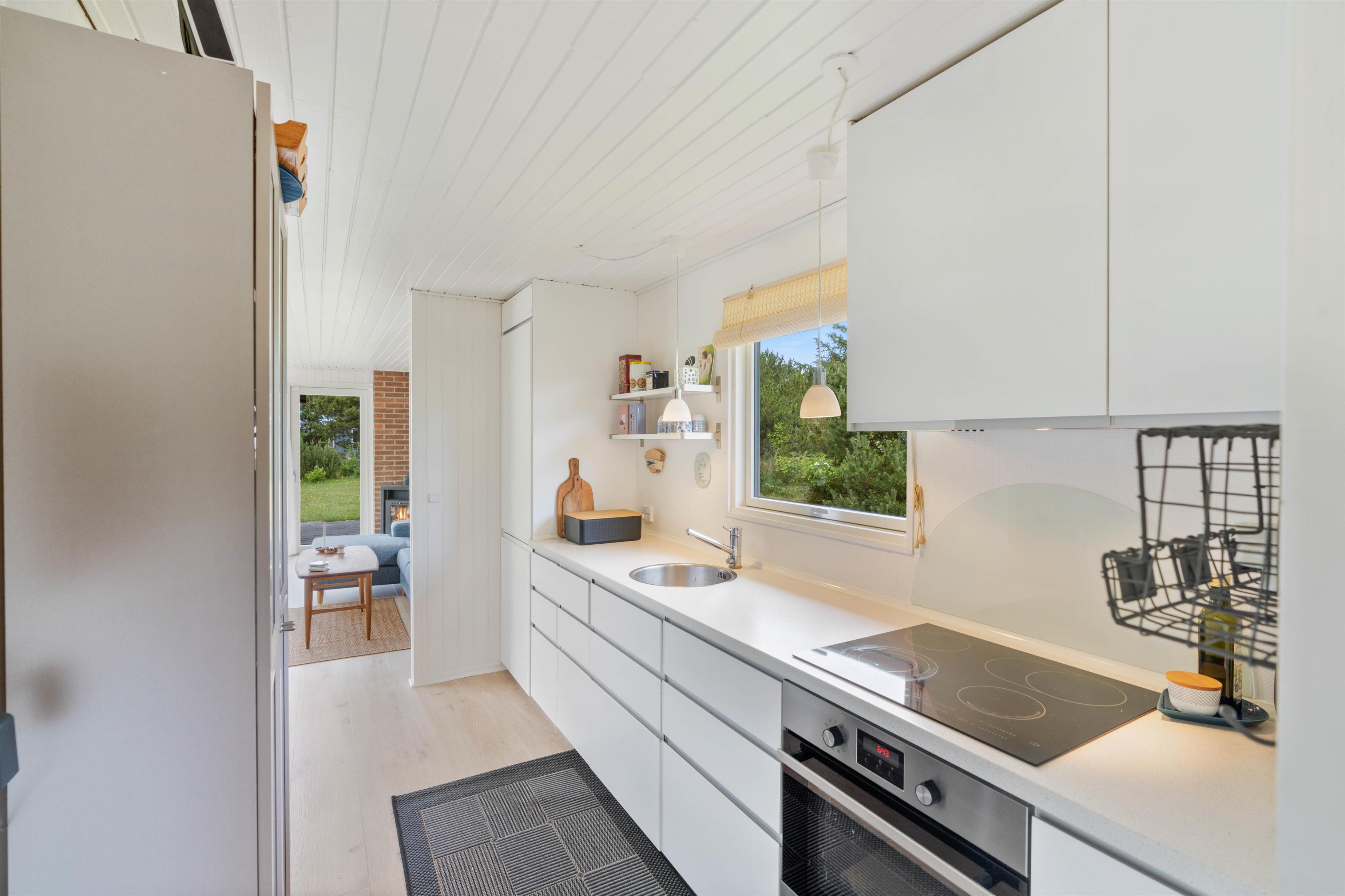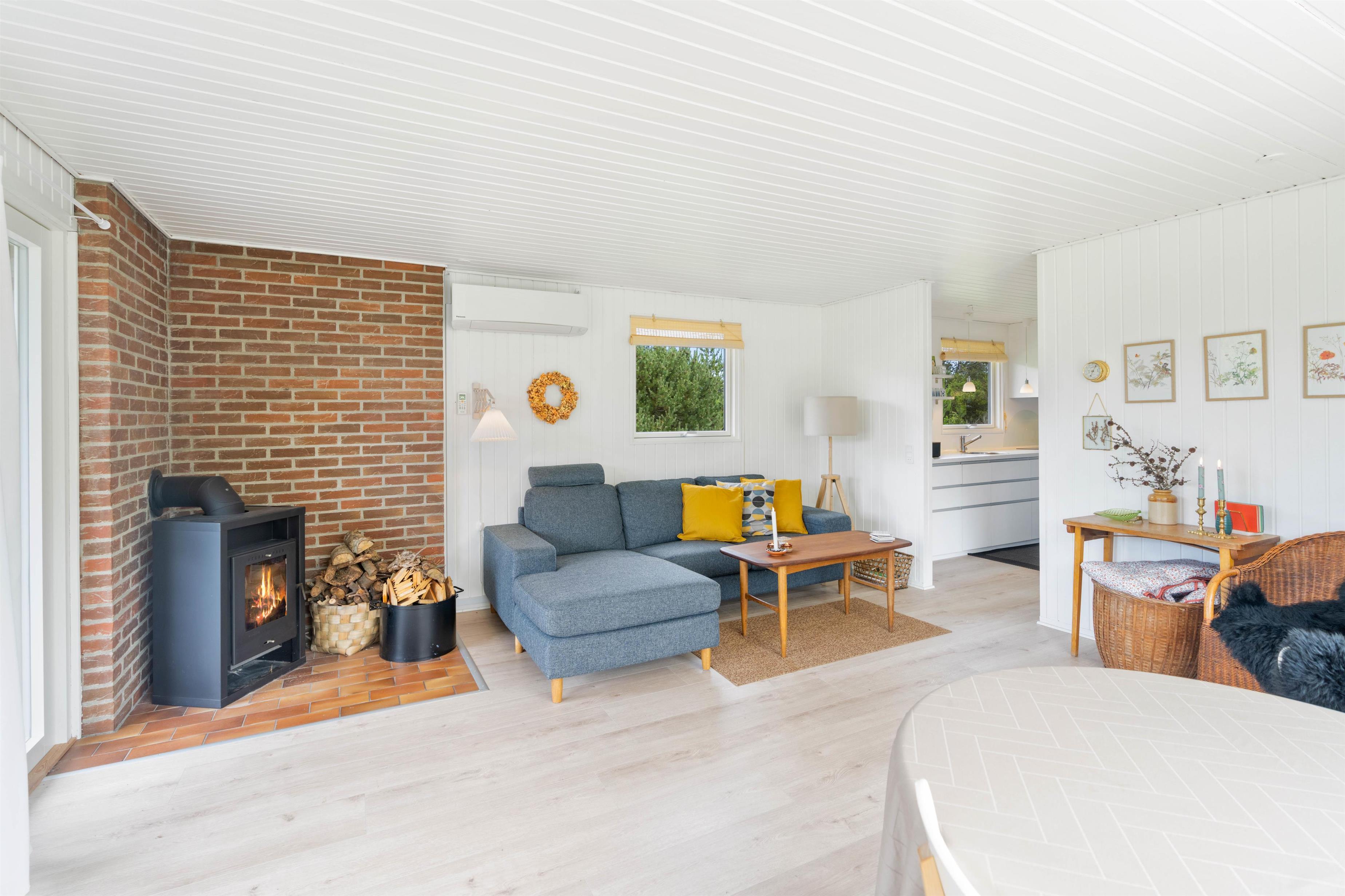 Sommerhusets stue og køkken ligger i forlængelse af hinanden, der giver jer rig mulighed for at tilberede aftensmåltidet, samtidig med at andre kan slappe af i sofaen med en god bog eller film med brændeovnens knitren i baggrunden. Efter en god nats søvn, behøver I ikke bekymre jer om at få kolde fødder, da feriehuset er udstyret med gulvvarme på badeværelset.