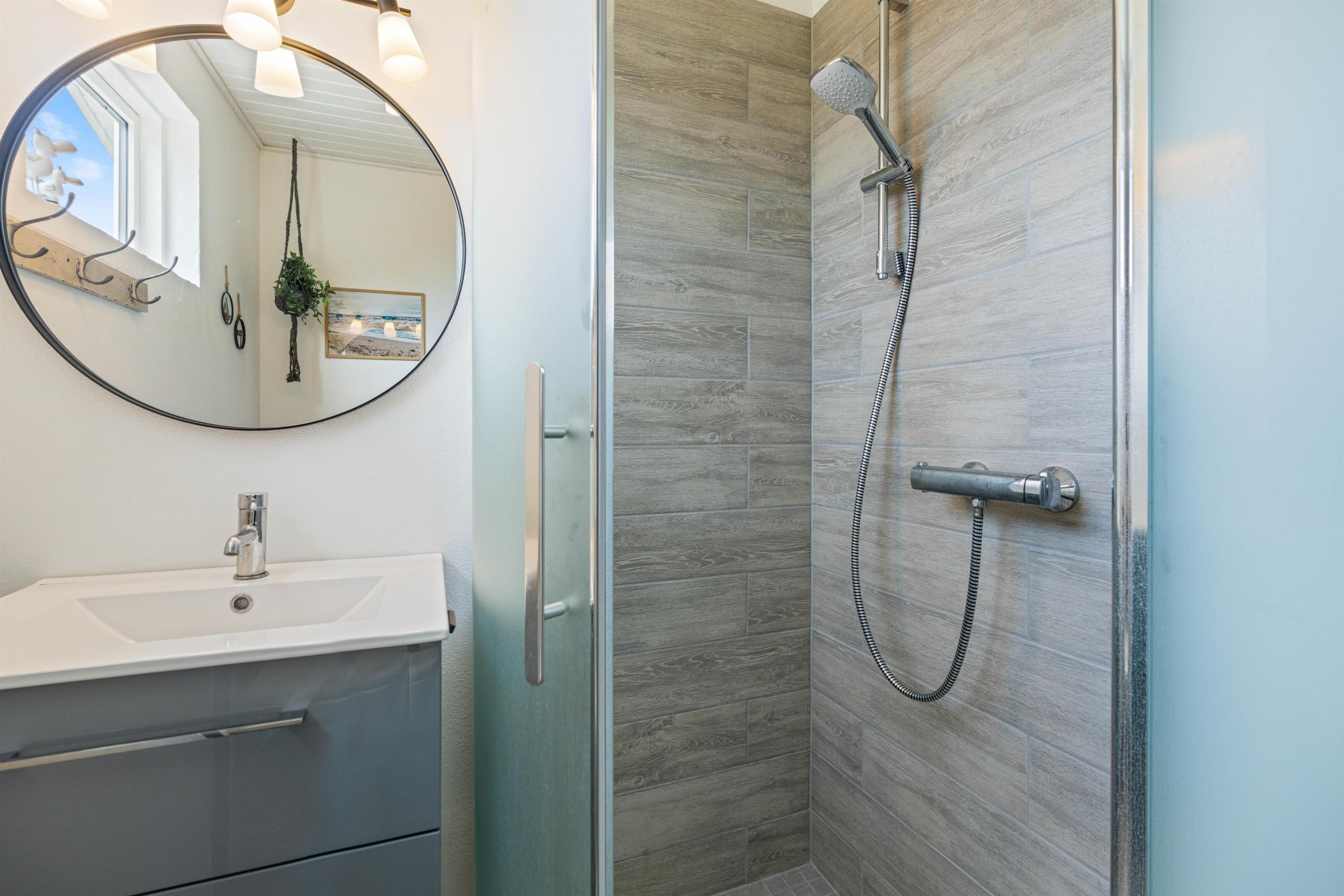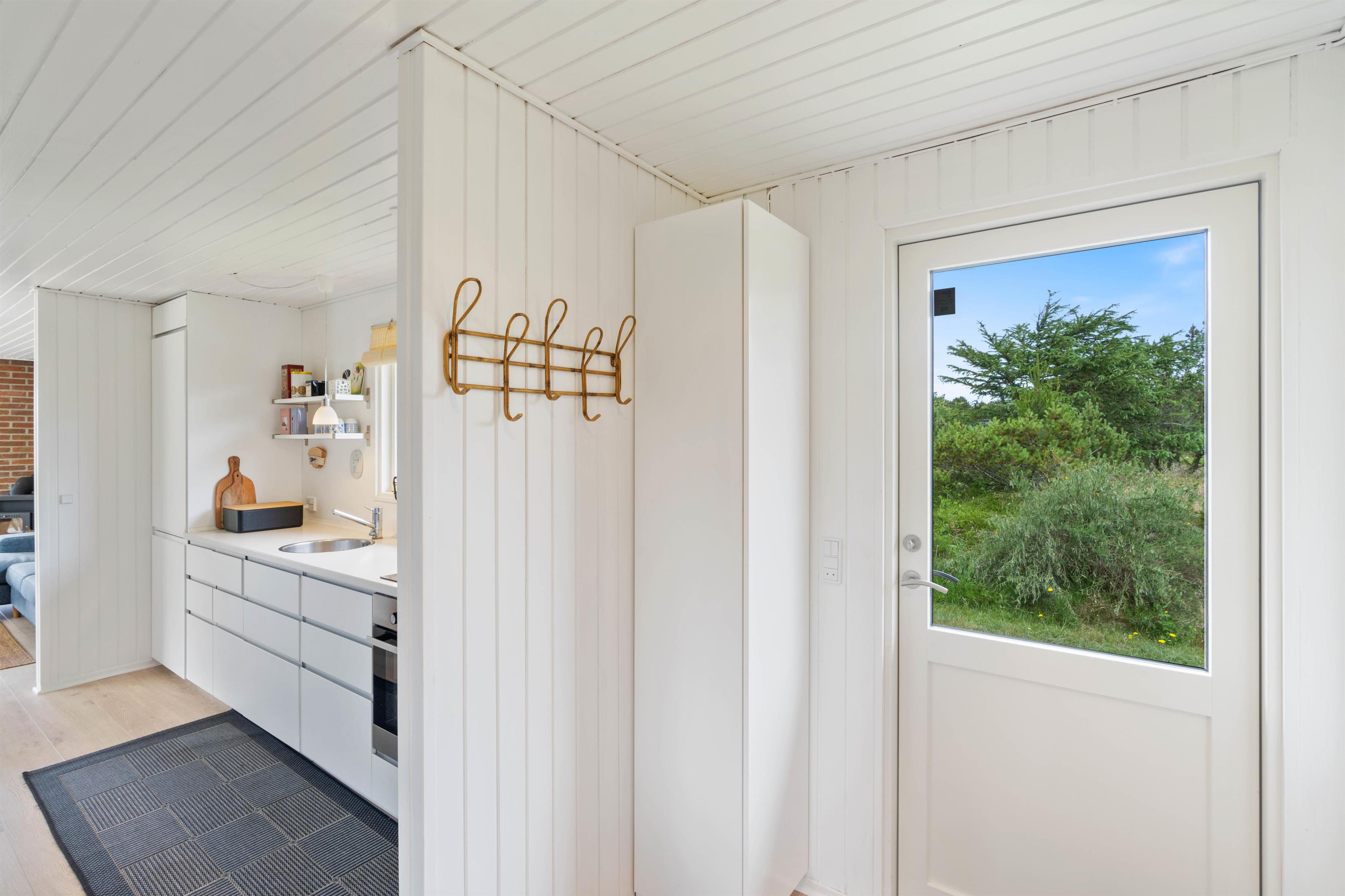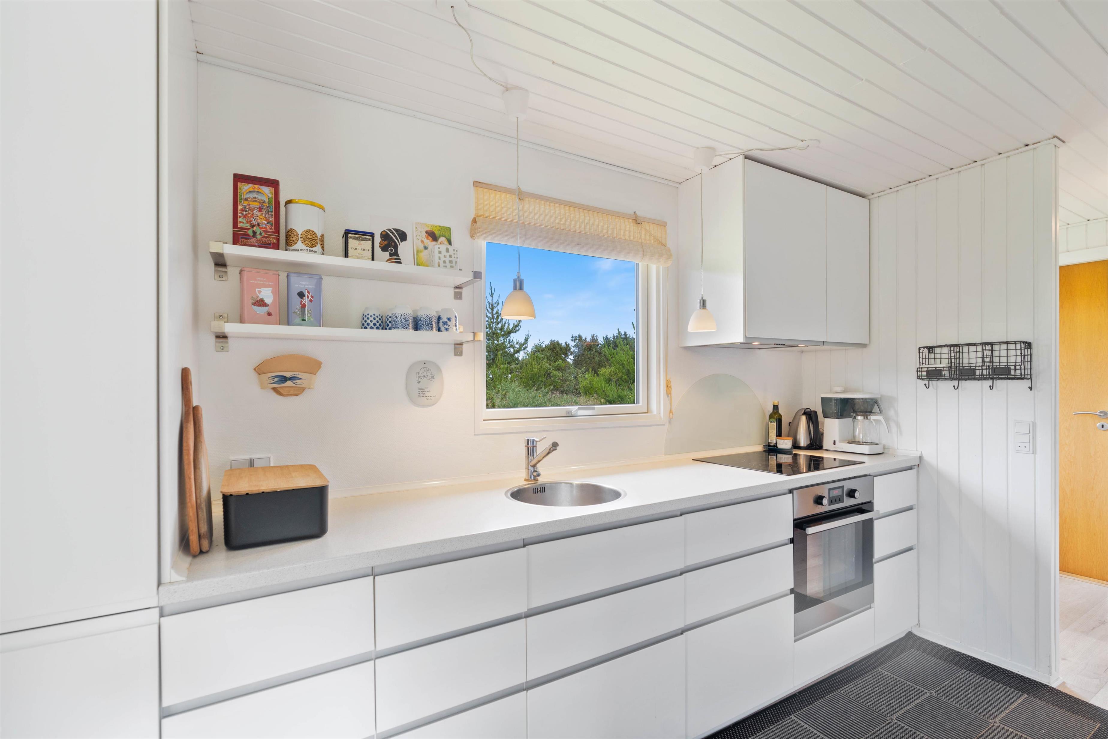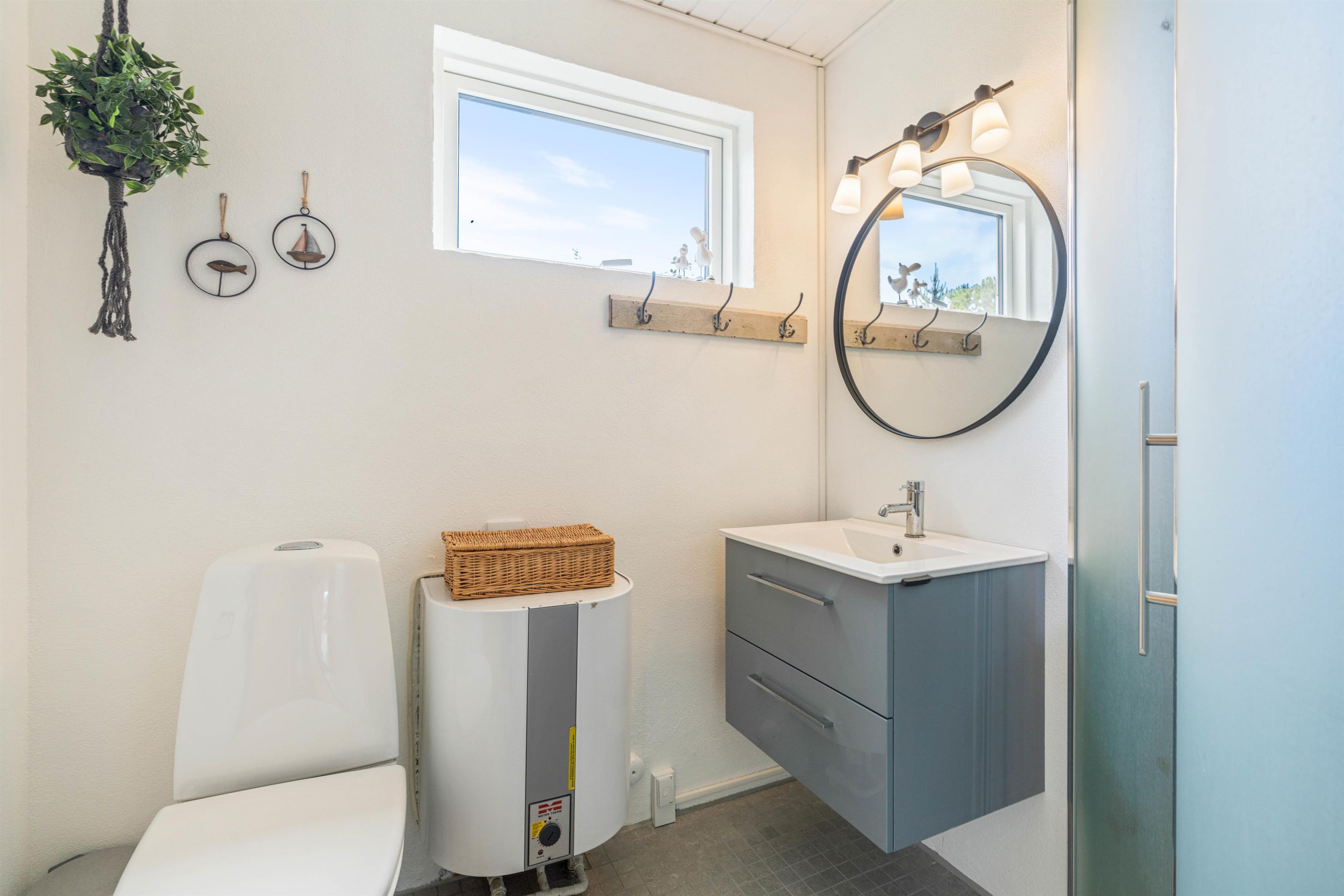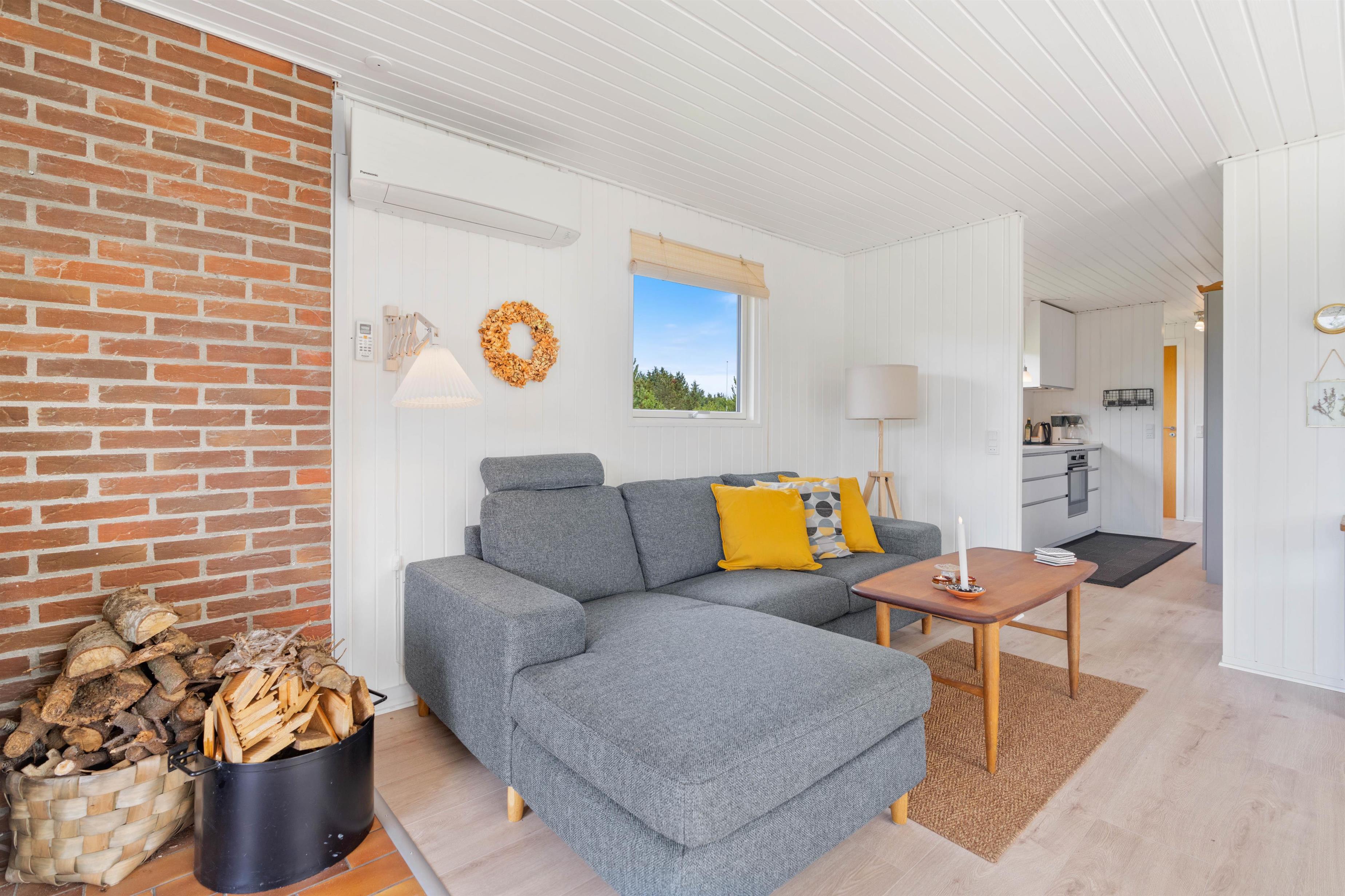 Sommerhusets stue og køkken ligger i forlængelse af hinanden, der giver jer rig mulighed for at tilberede aftensmåltidet, samtidig med at andre kan slappe af i sofaen med en god bog eller film med brændeovnens knitren i baggrunden. Efter en god nats søvn, behøver I ikke bekymre jer om at få kolde fødder, da feriehuset er udstyret med gulvvarme på badeværelset.