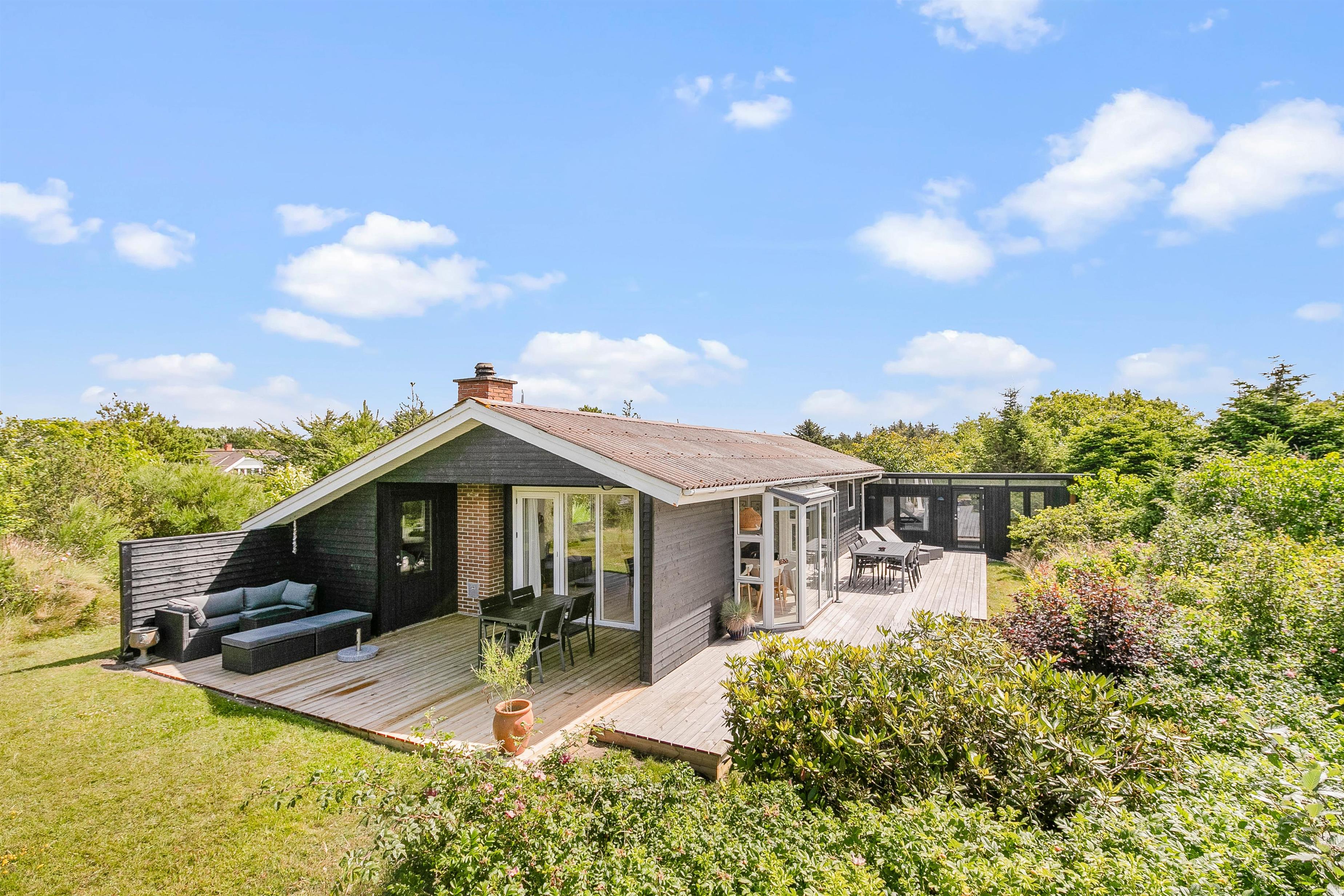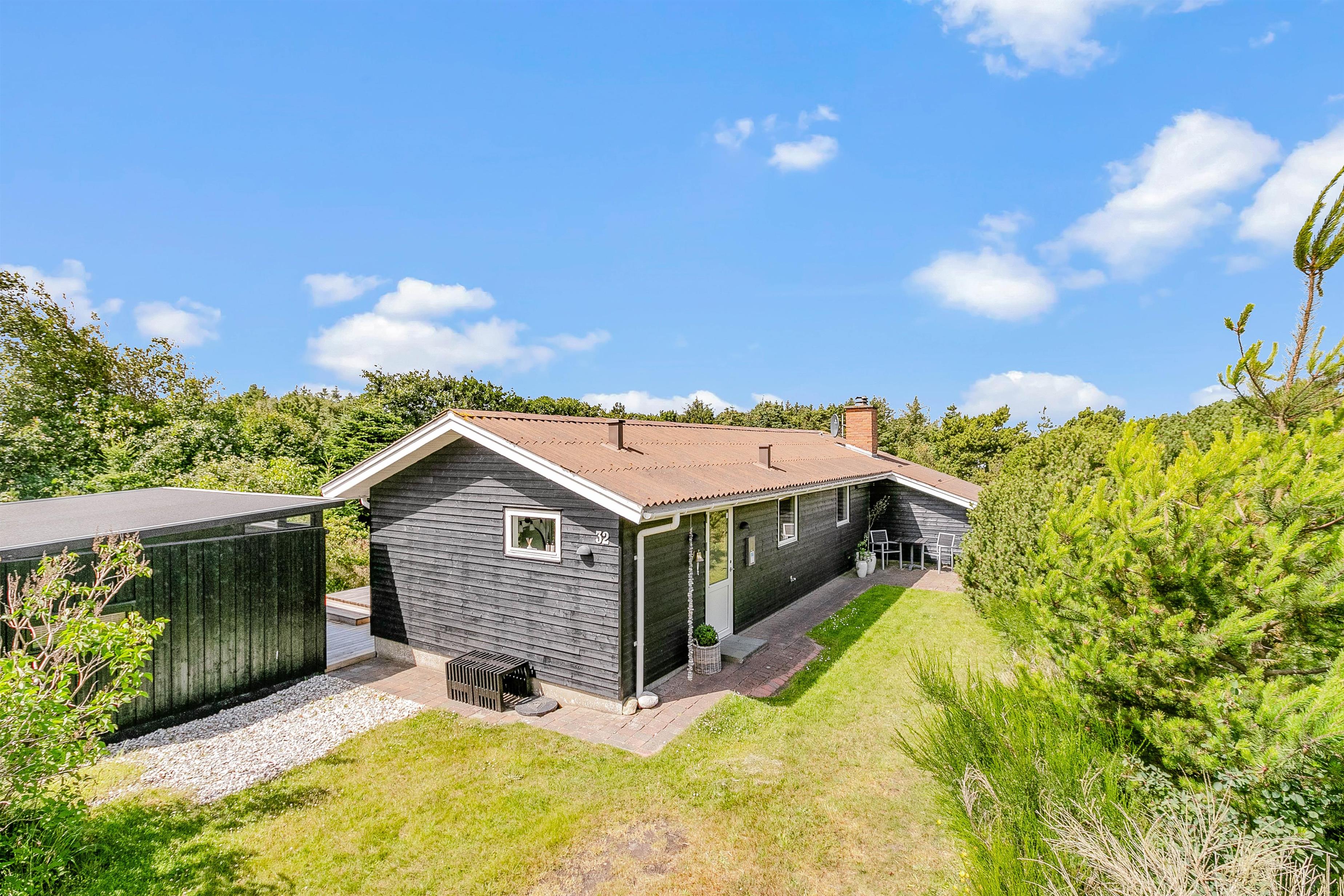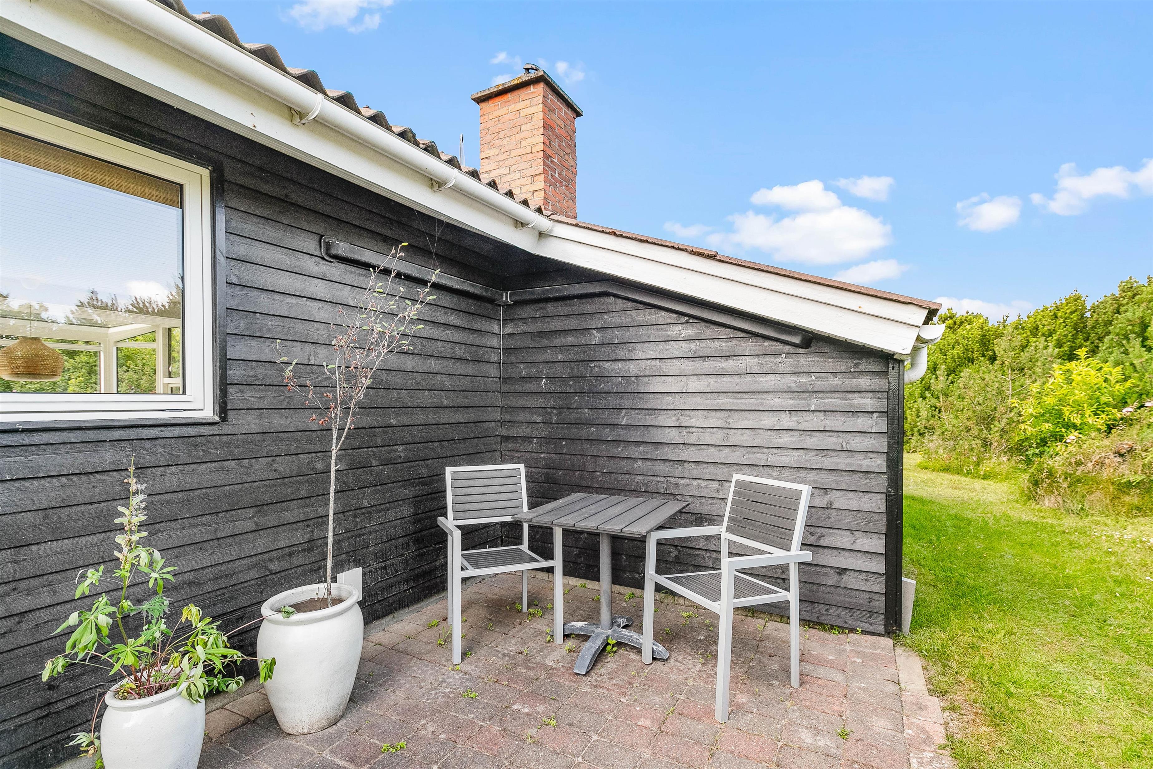 På grunden til feriehuset kan I have masser af privatliv, da feriehuset er indrammet af både træer og buske rundt om.