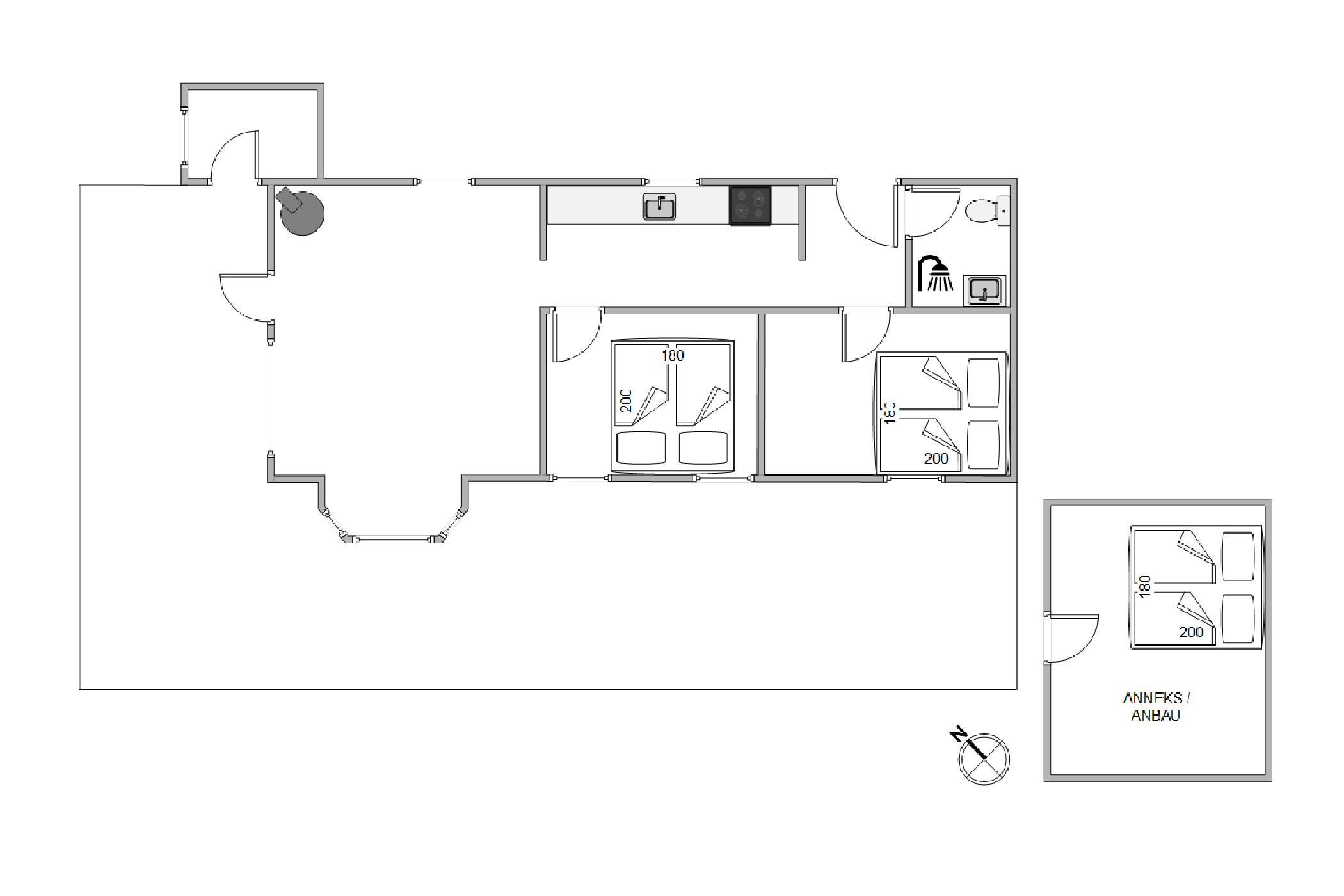 Sommerhuset råder desuden over 3 soverum, hver med en dobbeltseng til rådighed. 2 af soverummene befinder sig i feriehuset og det sidste er at finde i det tilhørende anneks, så hvis I har lidt større børn med på ferien, har de mulighed for at trække sig og hygge sig dér.