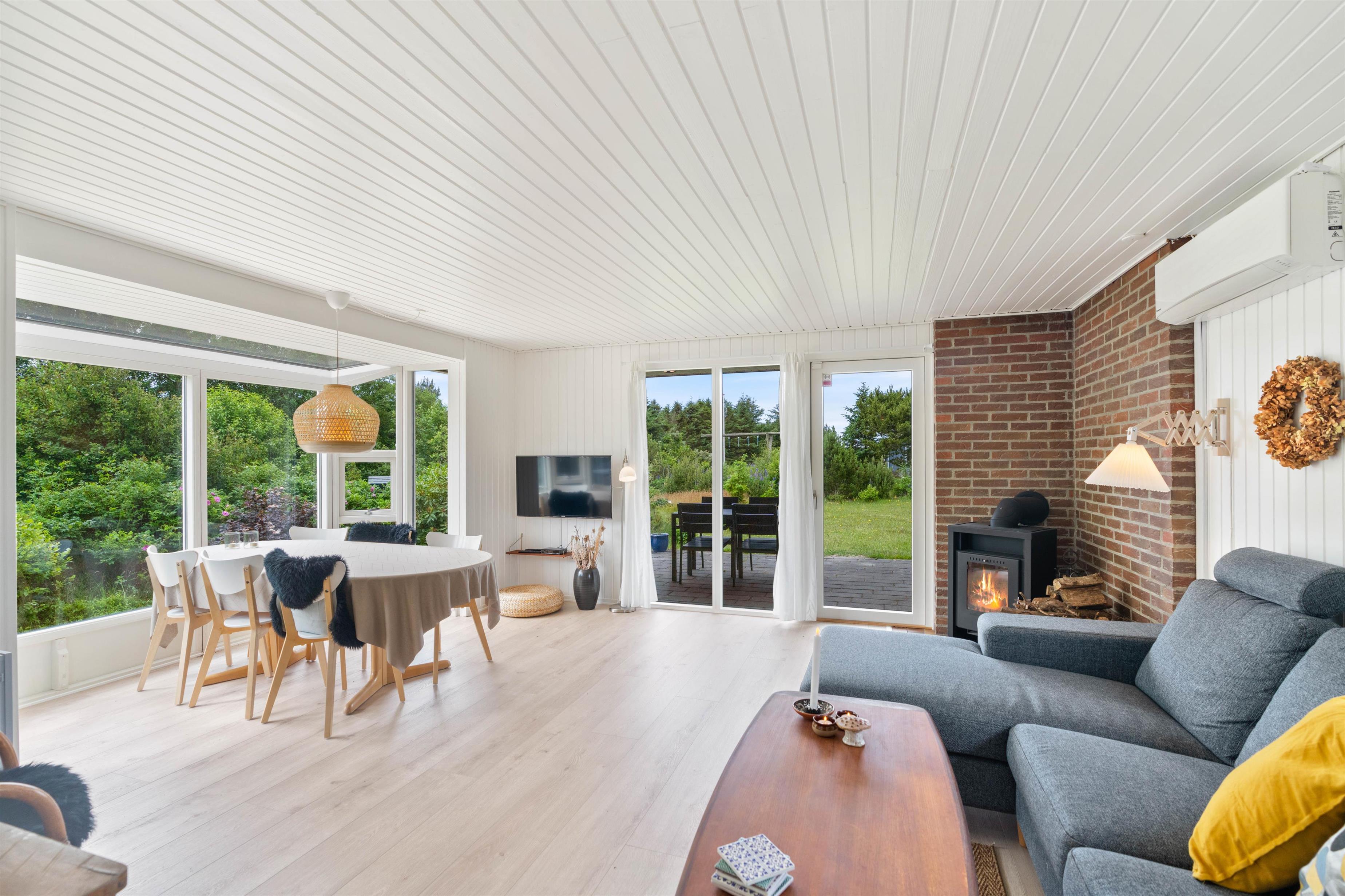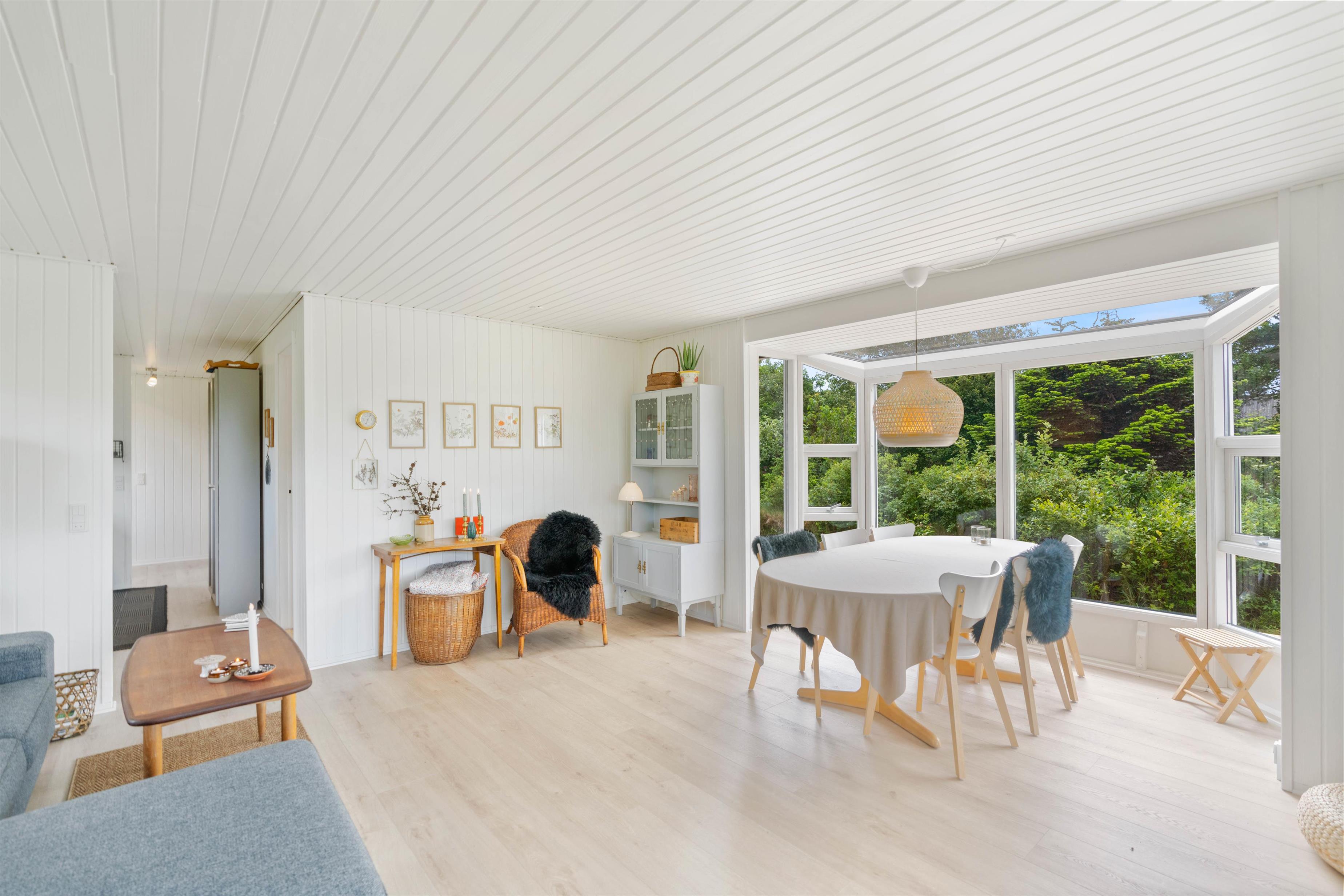 Det velindrettede sommerhus på Brunbjergvej 32 er renoveret i 2022 og byder på autentisk sommerhusstemning. Feriehuset fremstår lyst og imødekommende, hvilket bl.a. skyldes det store vinduesparti i stuen med et perfekt lysindfald.