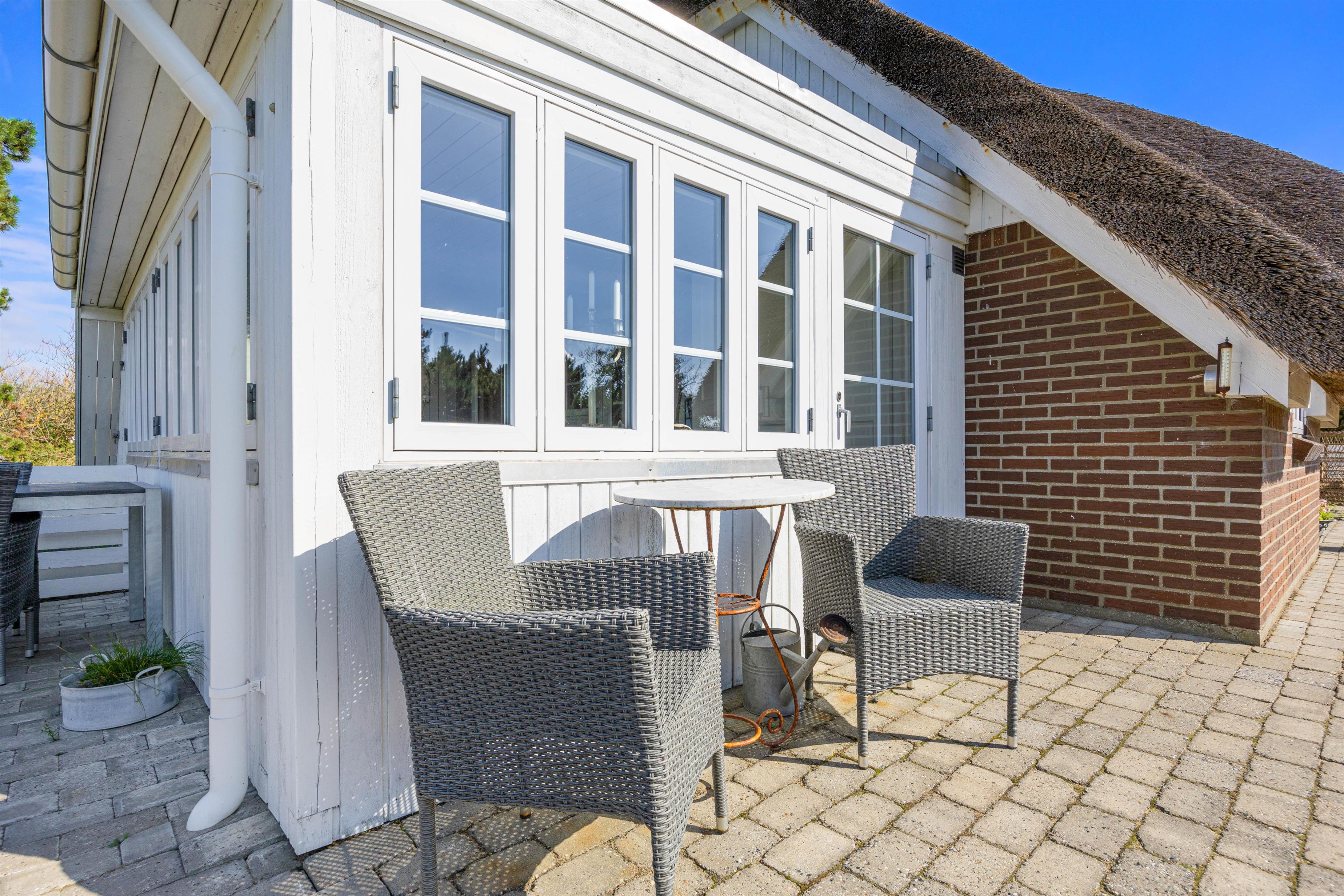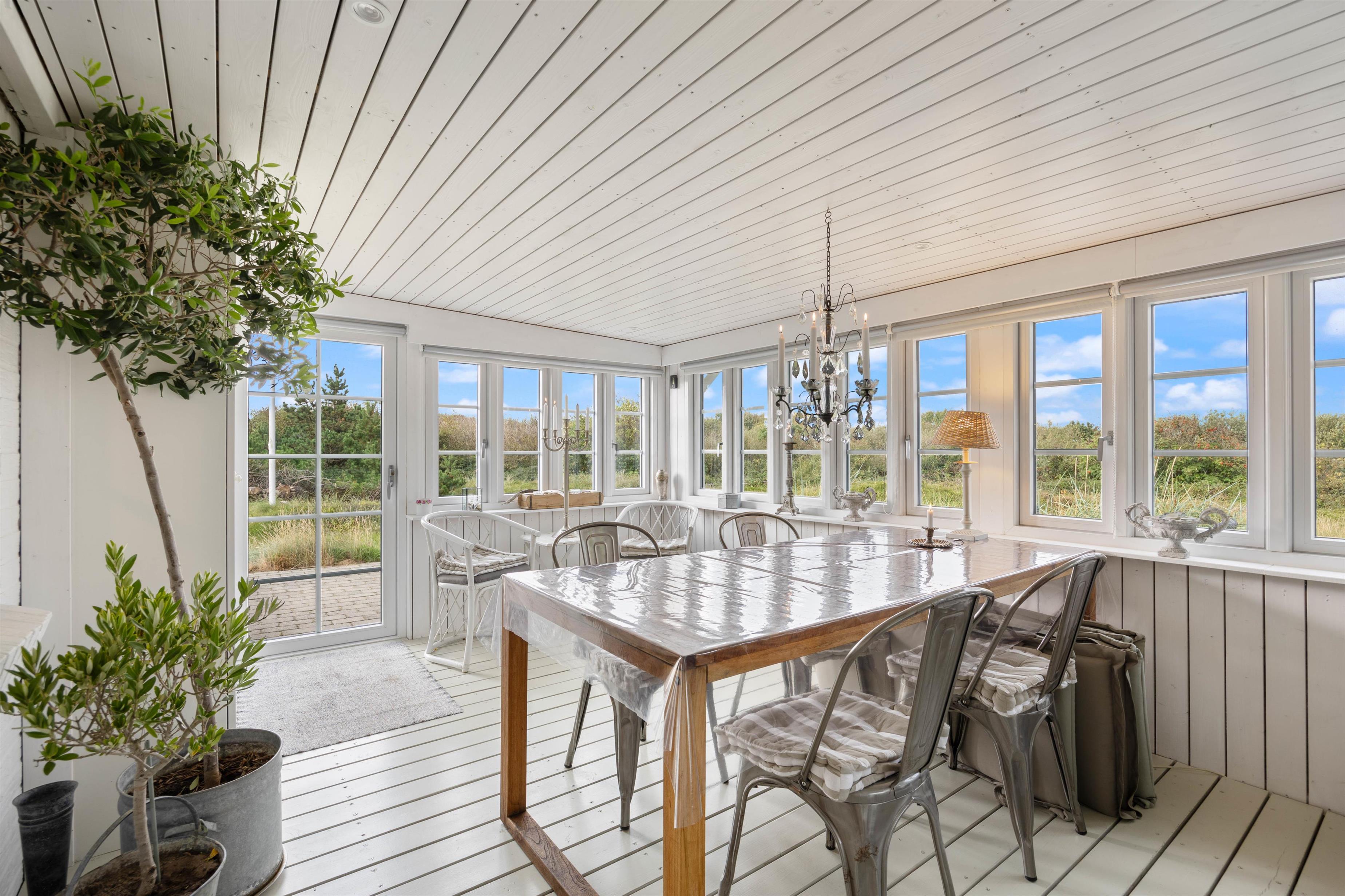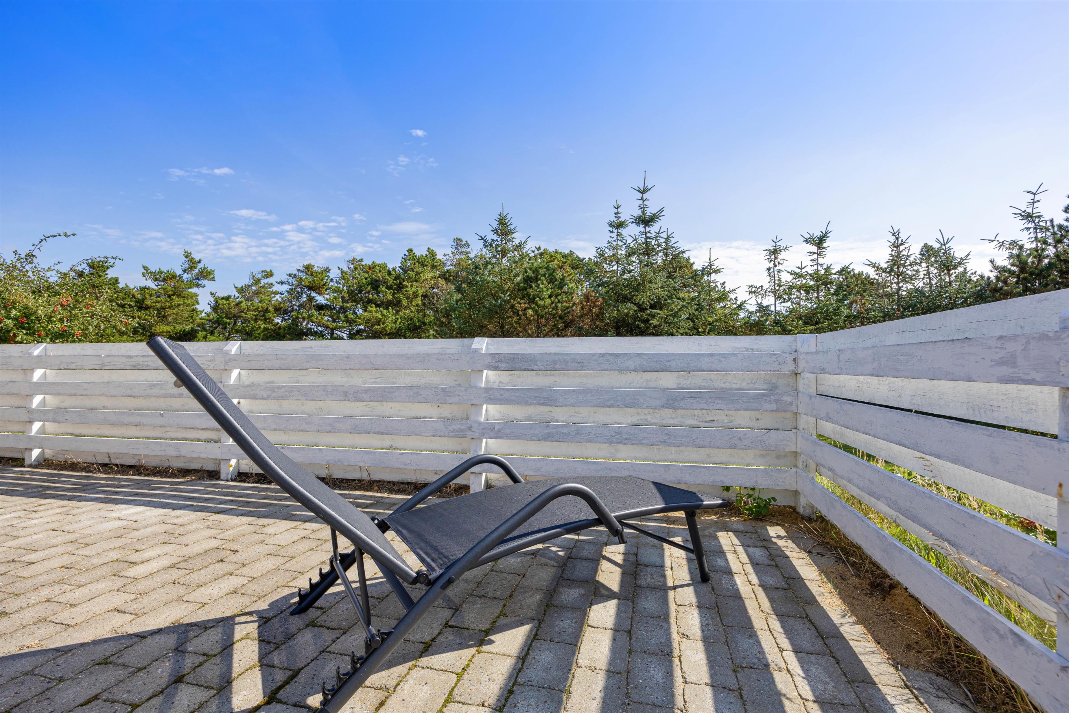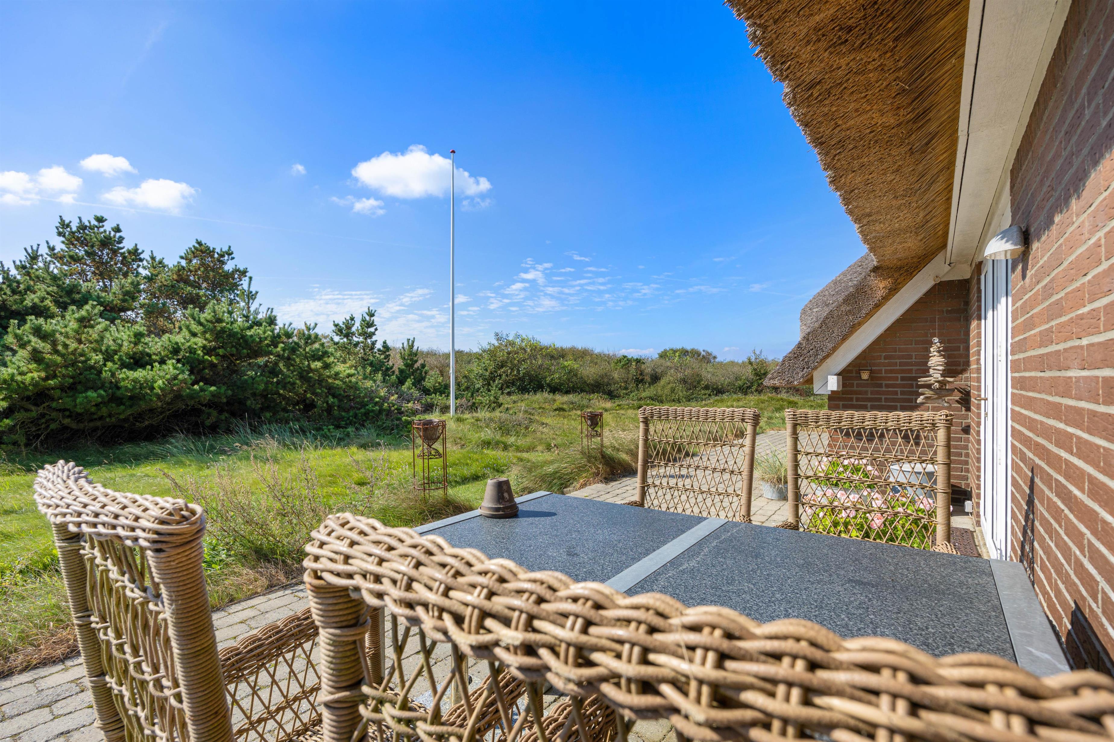 Den 2002 m2 store grund ligger midt i naturen på Lodberg Hede. Nyd solnedgangen over Søndervigs klitter på stenterrassen, der går hele vejen rundt om feriehuset, så I kan følge solen i løbet af dagen.