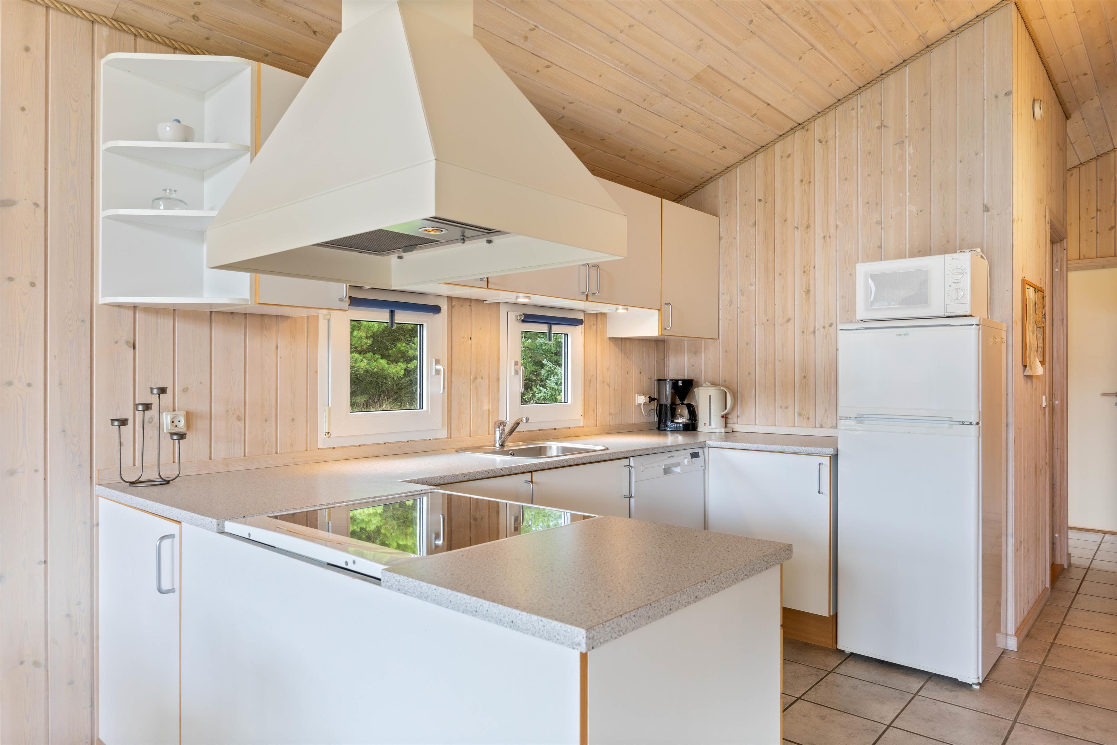 Den lyse og hyggelige stemning er gennemgående for sommerhuset. Der hersker på flere måder en vaskeægte sommerhusidyl i huset, hvilket blandt andet kan tilskrives de lyse panelvægge, den åbne planløsning og de store åbne rum. Samtidig er indretningen hyggelig og enkel, og I vil uden tvivl hurtigt kunne føle jer hjemme i huset.