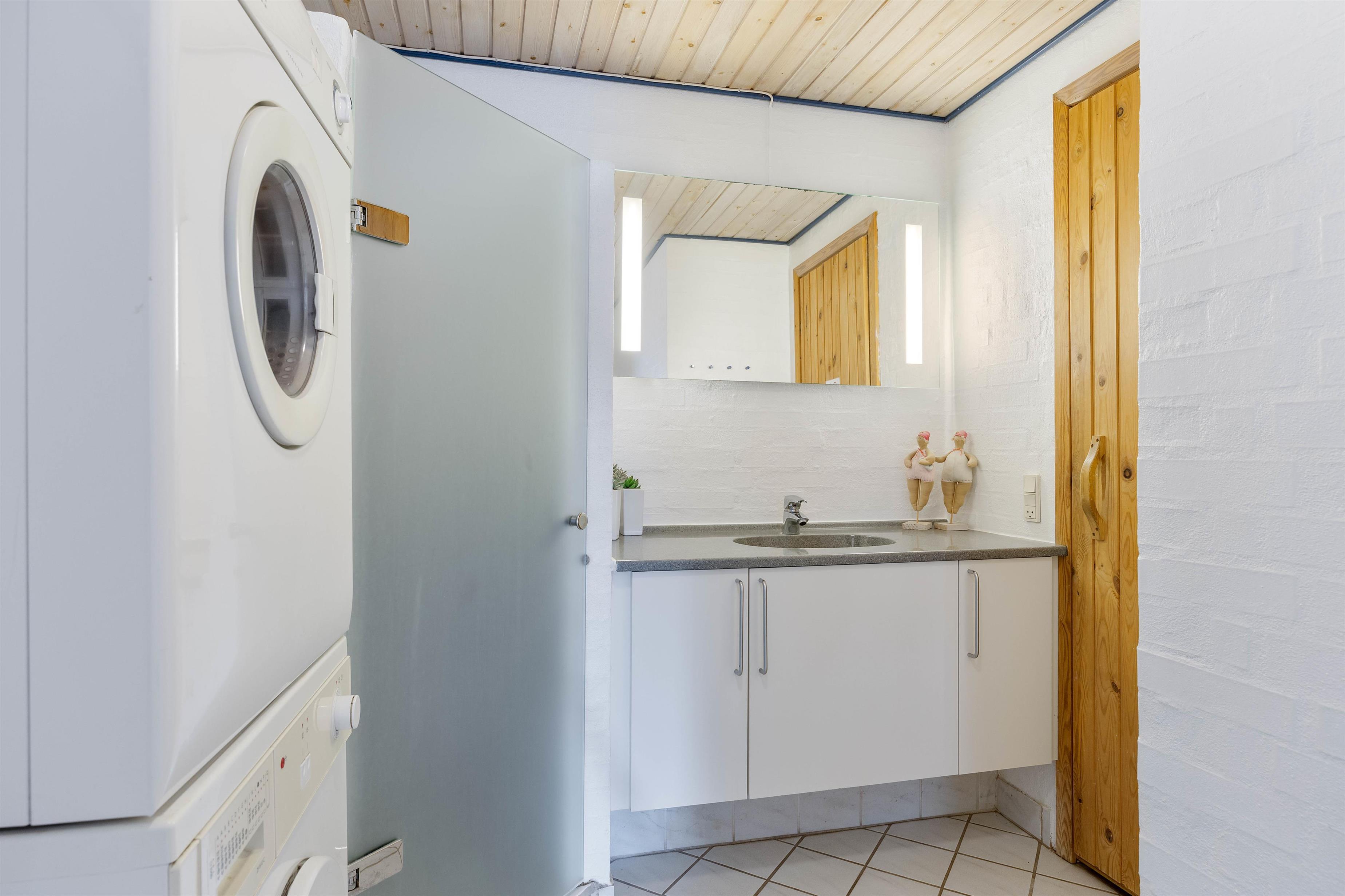 Sommerhuset på Granalle 7 har også et stort og veludstyret køkken, der er perfekt til madlavning og tilberedning af lækre måltider til hele familien. Det store spisebord og den hyggelige spiseplads er det perfekte sted at samles og nyde måltiderne sammen.