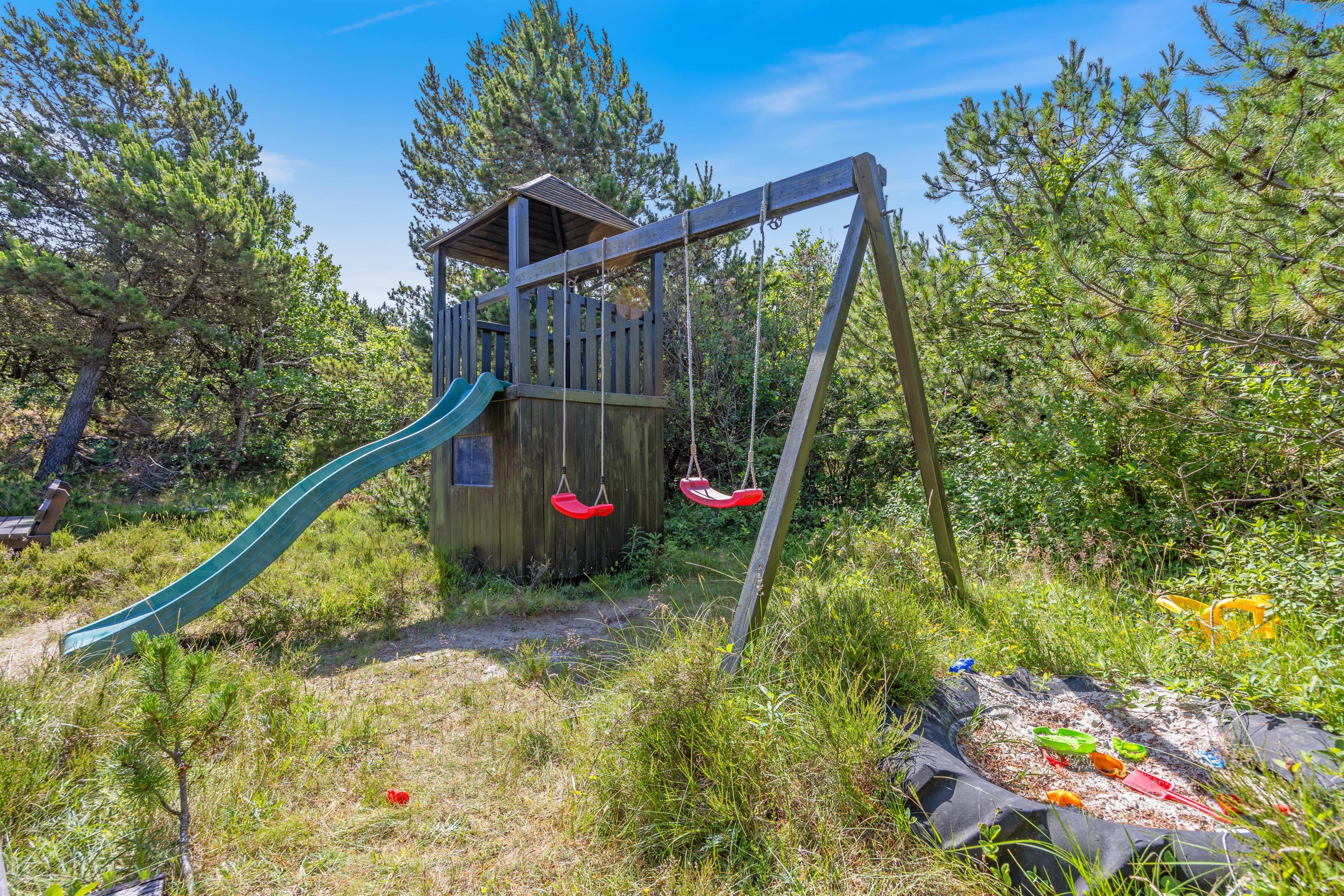 Fra Granalle 7 er der kun 1500 meter til havet, så kan du med en rask lille spadseretur stå med fødderne i vandkanten og mærke det brusende Vesterhav. Efter en god tur til vandet, kan i med fordel slappe af i sommerhuset og på den flotte, dejlig naturgrund med plads til at de små kan udfolde sig i klatretårnet, rutsje på rutsjebanen og ellers gå på opdagelse på grunden. Ydermere er der Petanquebane og Beach Volley bane tilhørende huset.