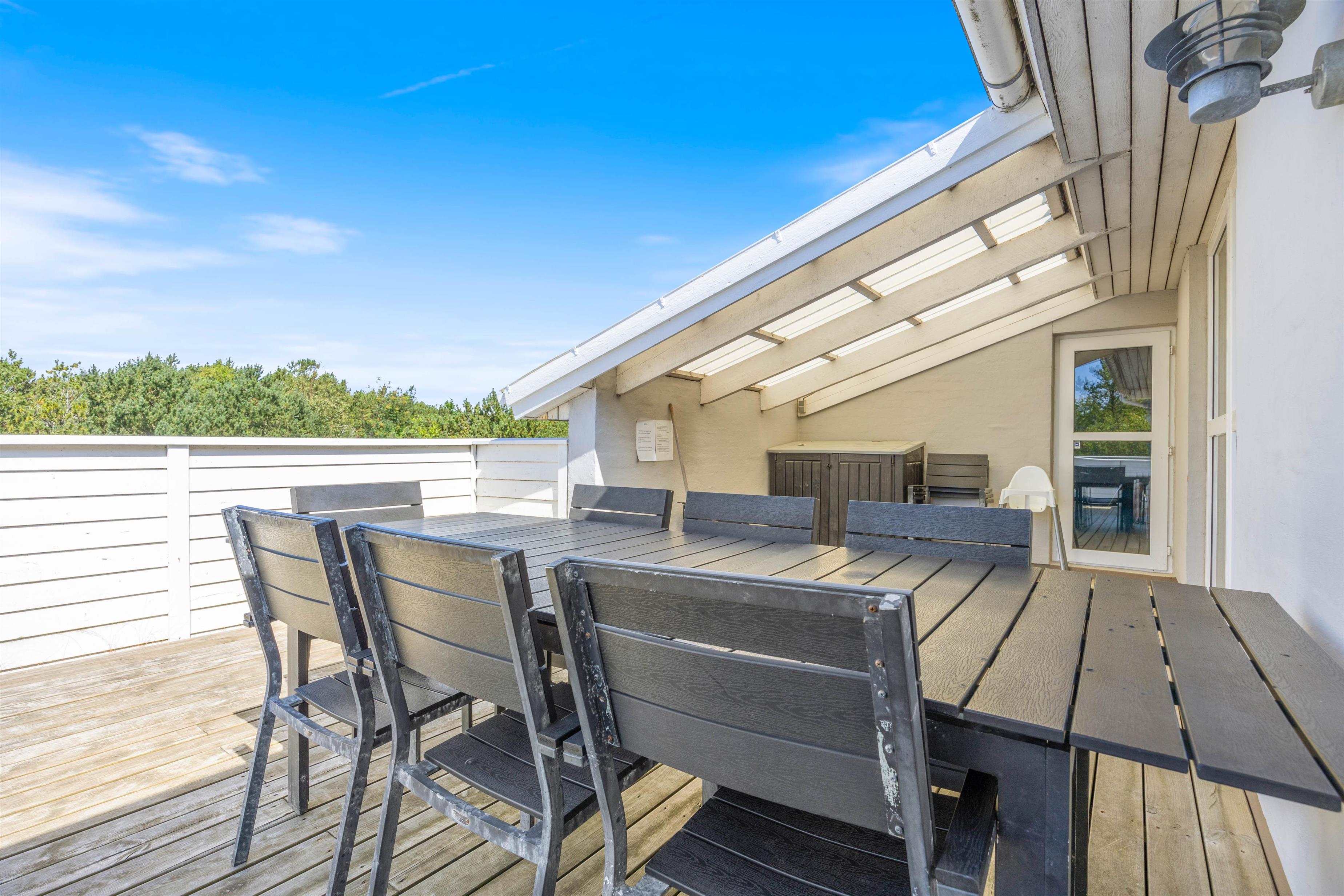 Der er en dejligt lukket træterrasse som giver mulighed for at grille, spise og sole sig udenfor, når vejret tillader det. Skulle vejrguderne dog ikke være med jer, så kan i trække i læ under den overdækkede del og stadig nyde en dejlig vin og hinandens selskab udendørs.