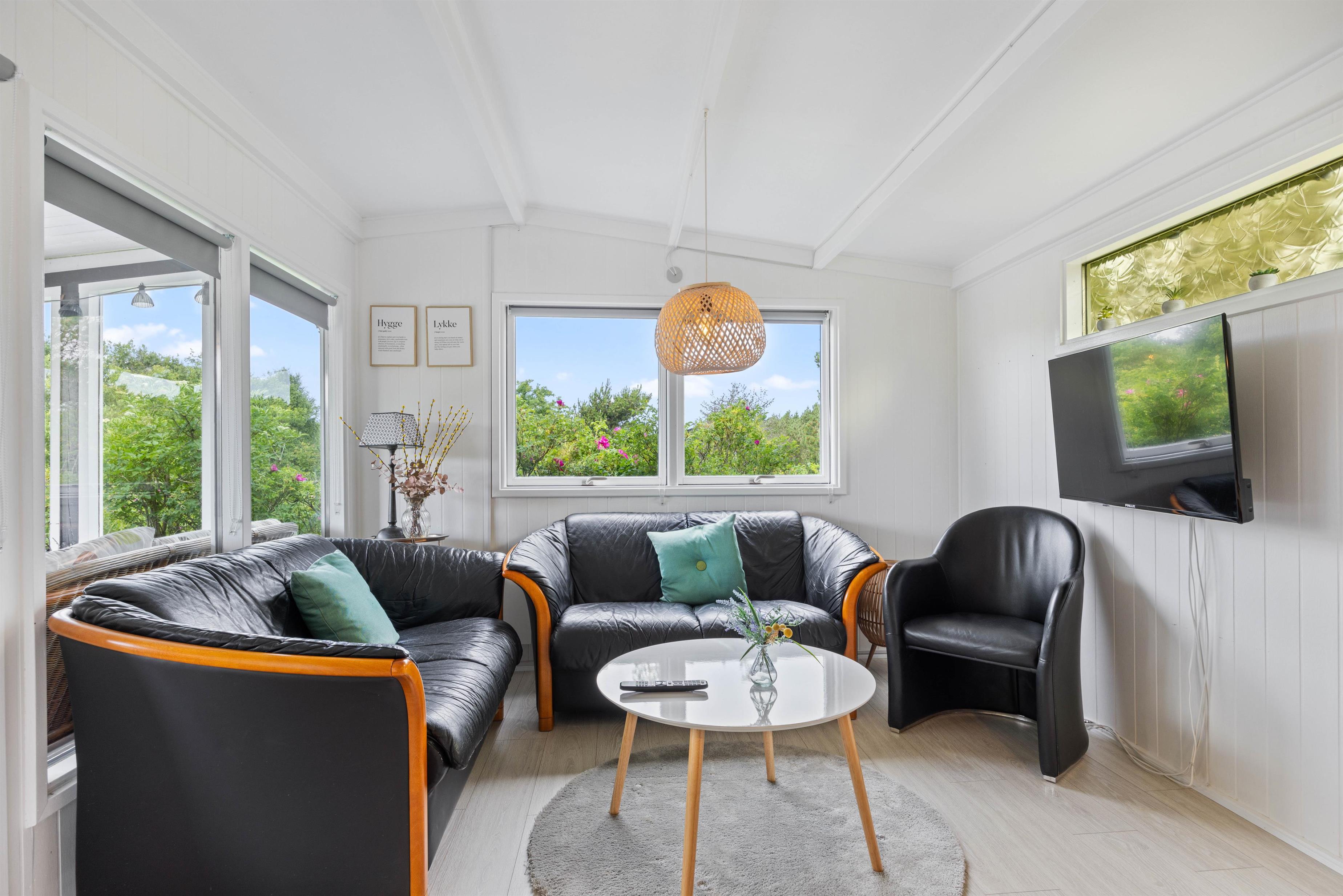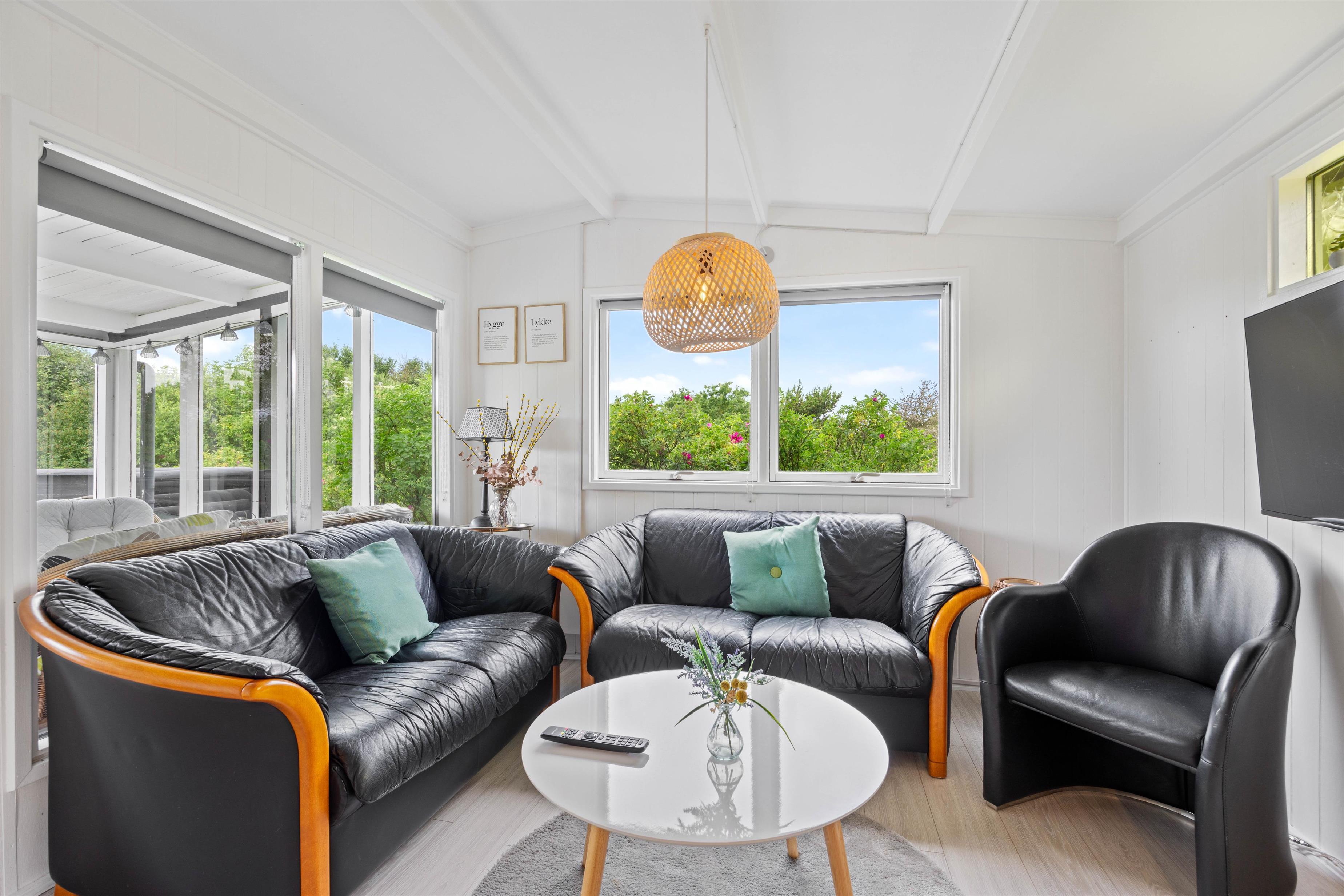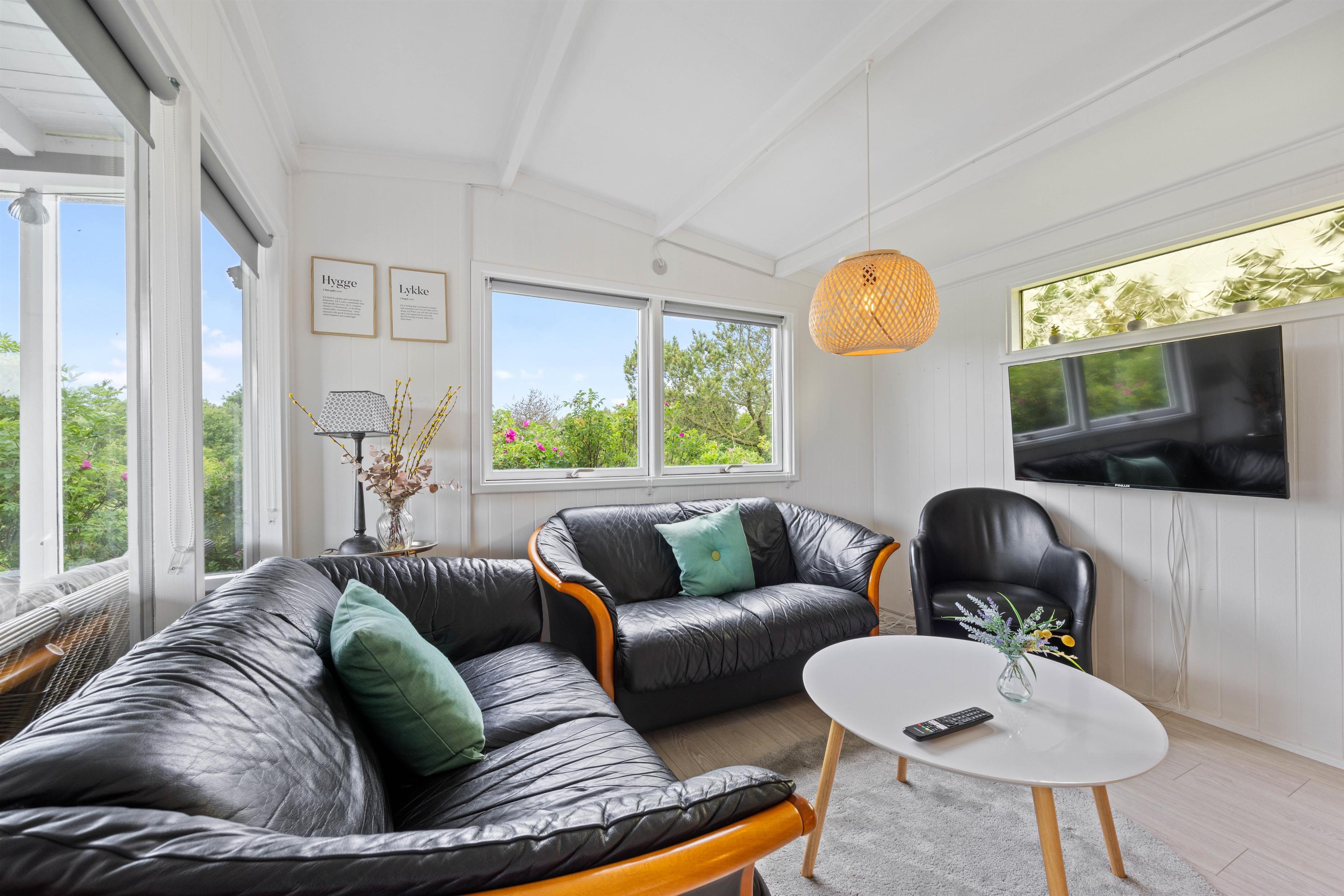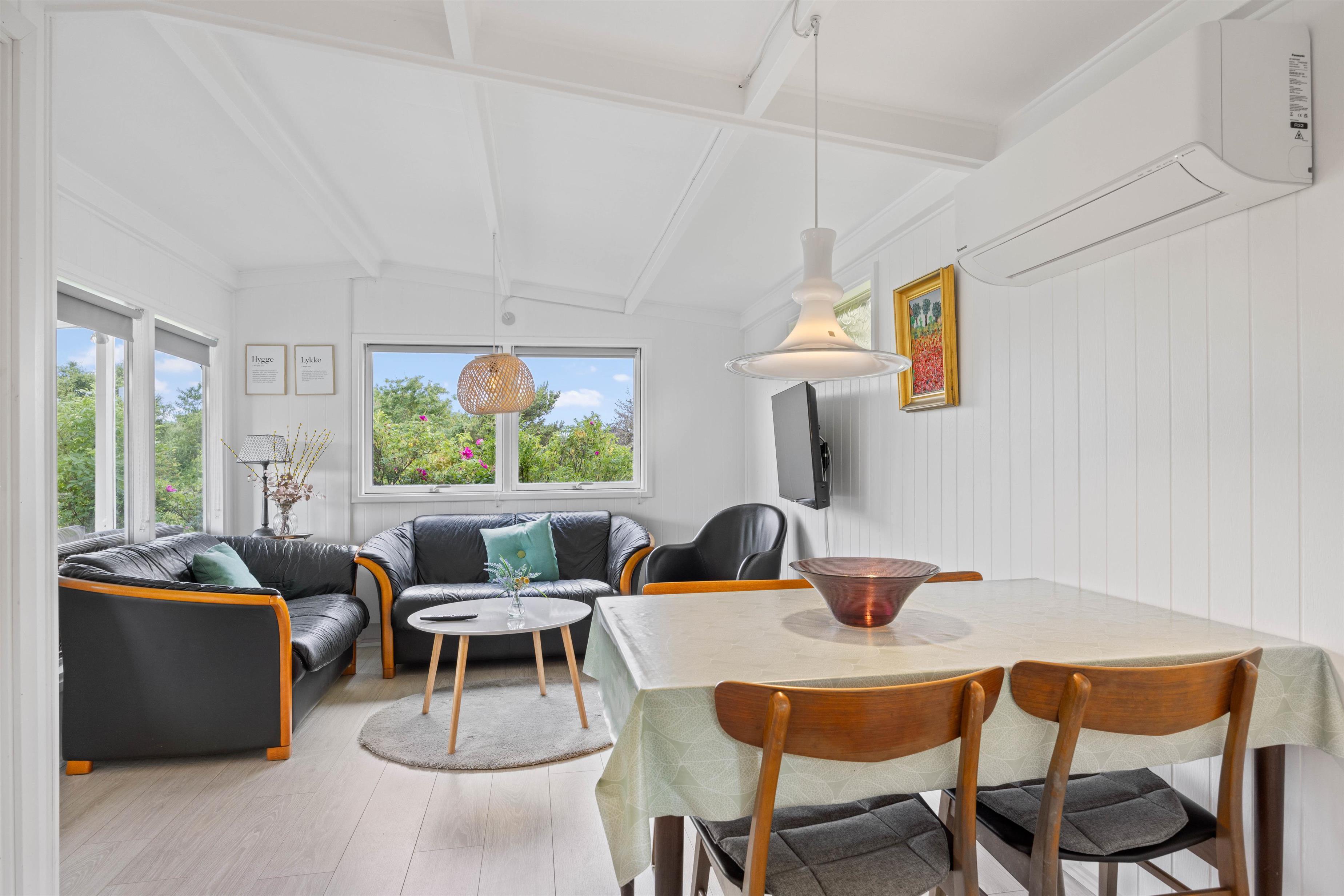 Lige så snart I træder ind i dette 48 kvadratmeter sommerhus, vil I straks føle jer hjemme. Her er lyst og venligt indrettet med mulighed for kvalitetstid. Om aftenen når I har brug for at lade batterierne op, kan I dele de 3 værelser imellem jer. Så I kan få en god nats søvn, og være friske og veloplagte til en ny god feriedag. 2 af soveværelserne er indrettet med en dobbeltseng, og det sidste soveværelse er indrettet med to enkeltsenge.