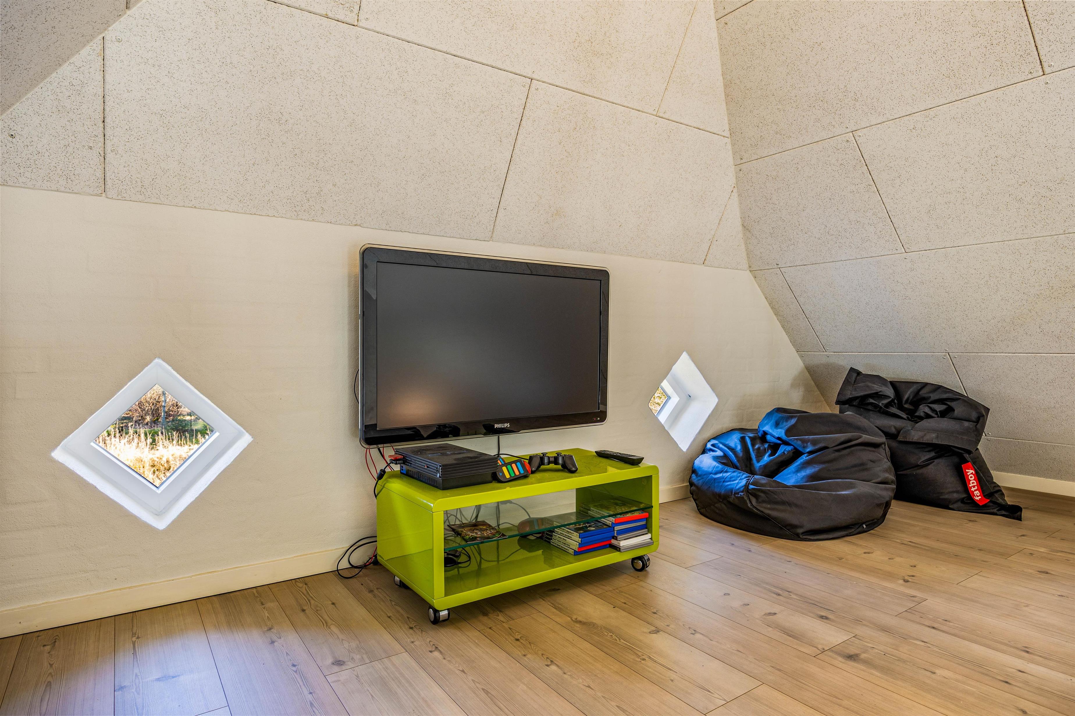 Flere af husets lyskilder har lysdæmper, så I nemt kan skabe en helt særlig stemning, der forvandler huset til et fristed fyldt med ro og hygge. Der er også installeret lysdæmpning i spaområdet og på den overdækkede terrasse. I får dermed fuld kontrol over atmosfæren – fra klart og funktionelt lys om dagen til et blødt og varmt skær om aftenen.