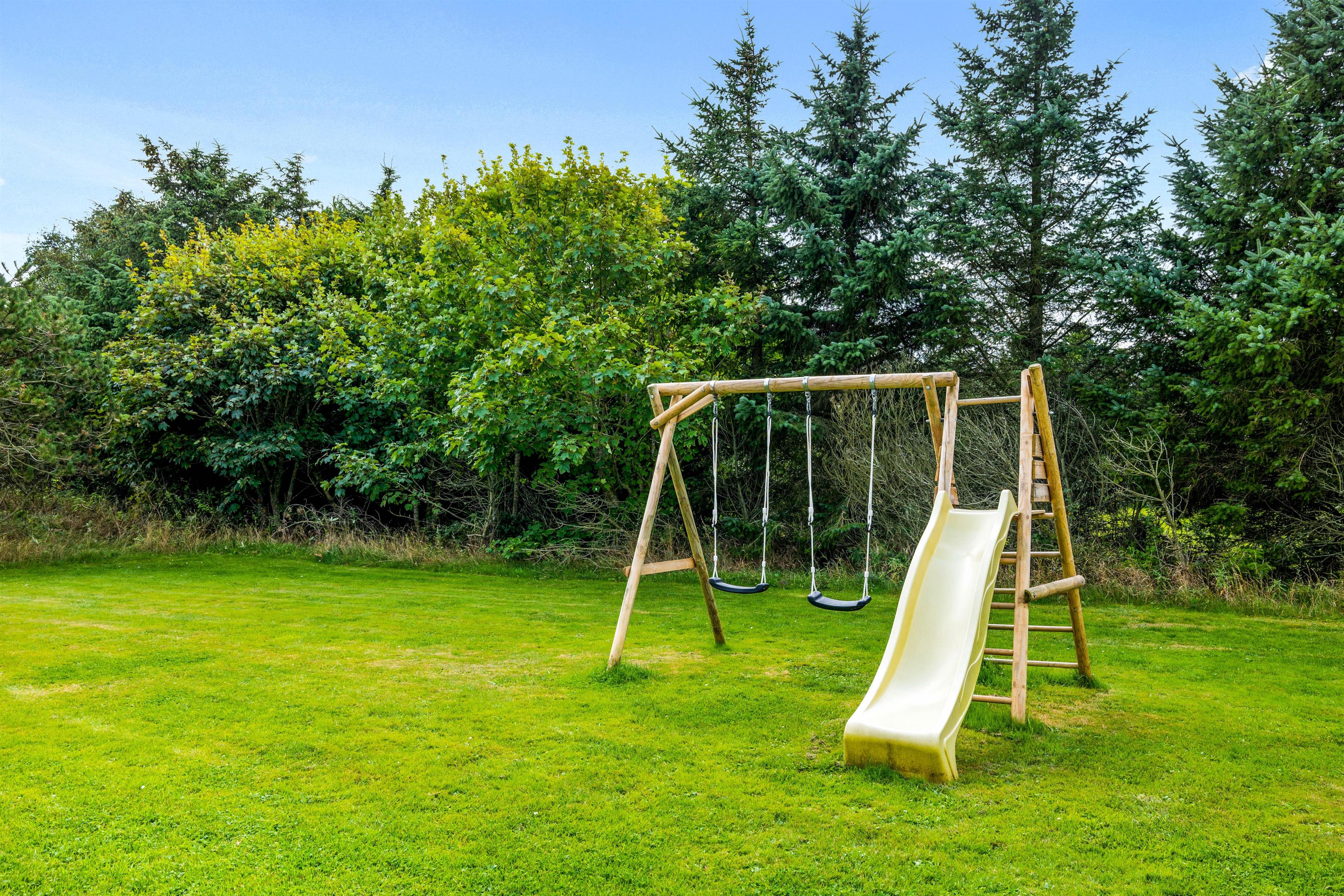 Sommerhuset har flere skønne terrasser, hvor der kan findes både sol og læ det meste af dagen. Endvidere er der en 15 m2 overdækket terrasse. Grunden er en kombination af fri natur og græsplæne, som giver gode muligheder for boldspil og leg. For eksempel er der på grunden både gyngestativ, en fodboldbane og en beach volley-bane. Både hus og grund er særdeles børne- og hundevenlig.