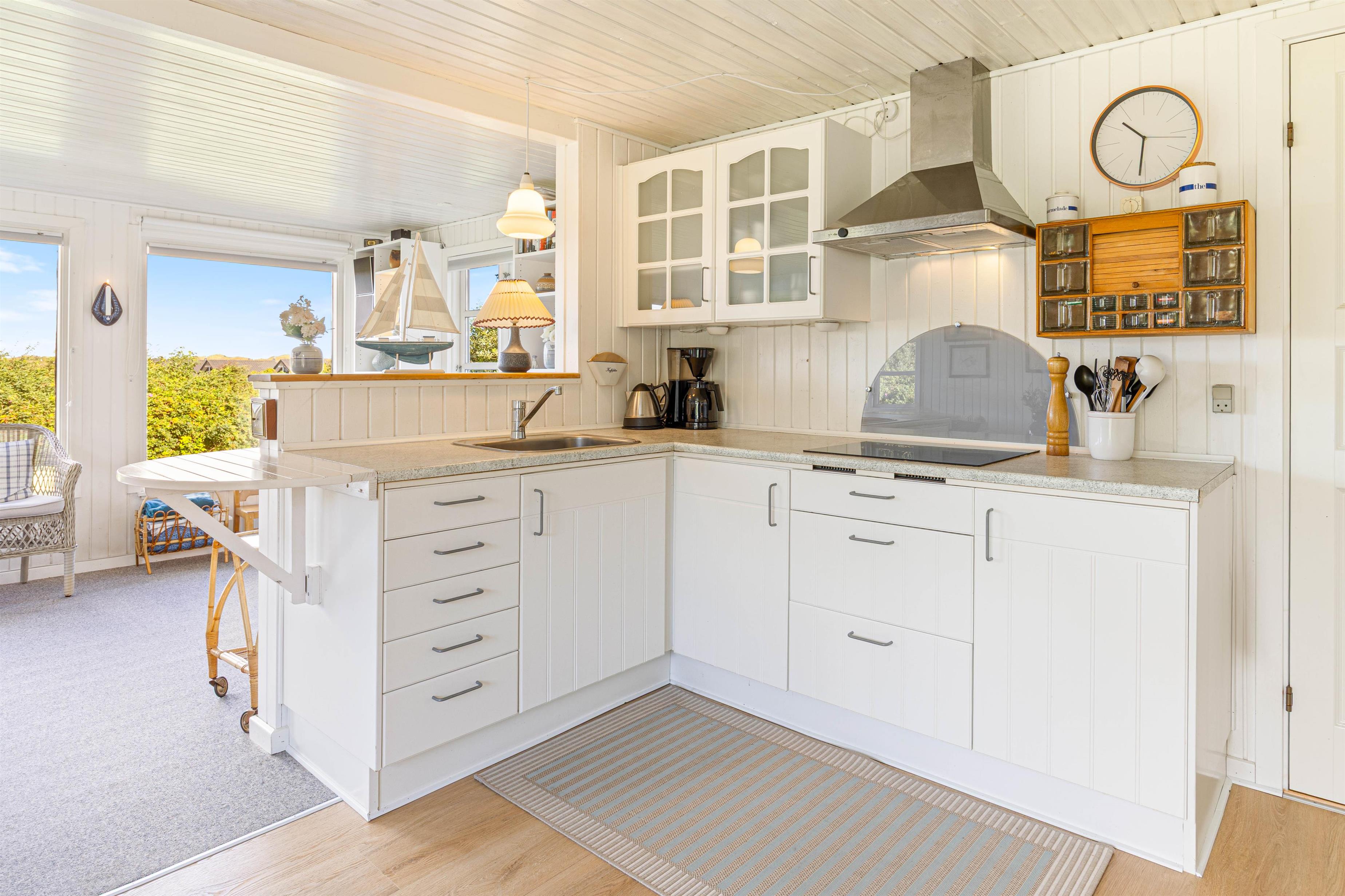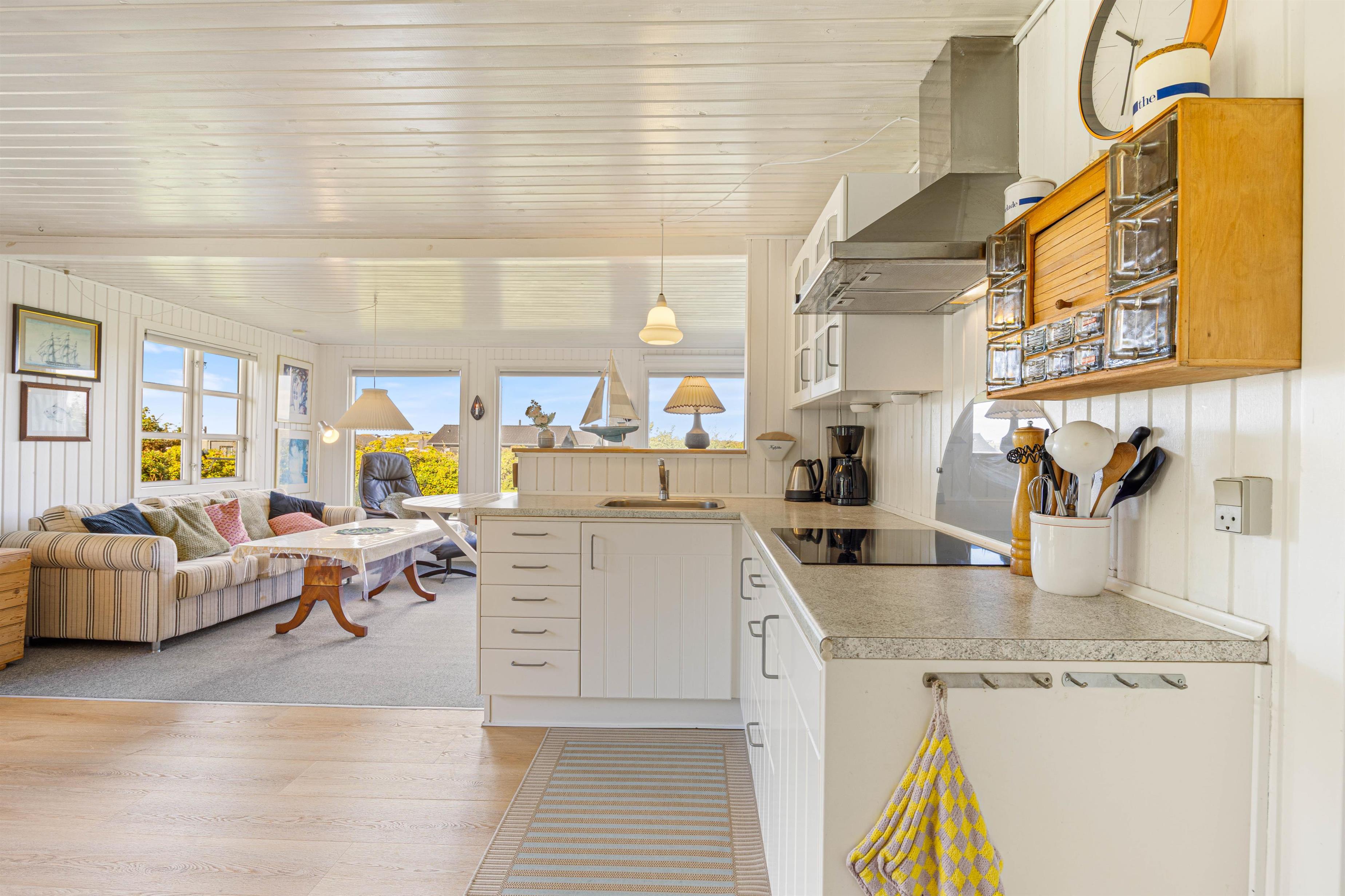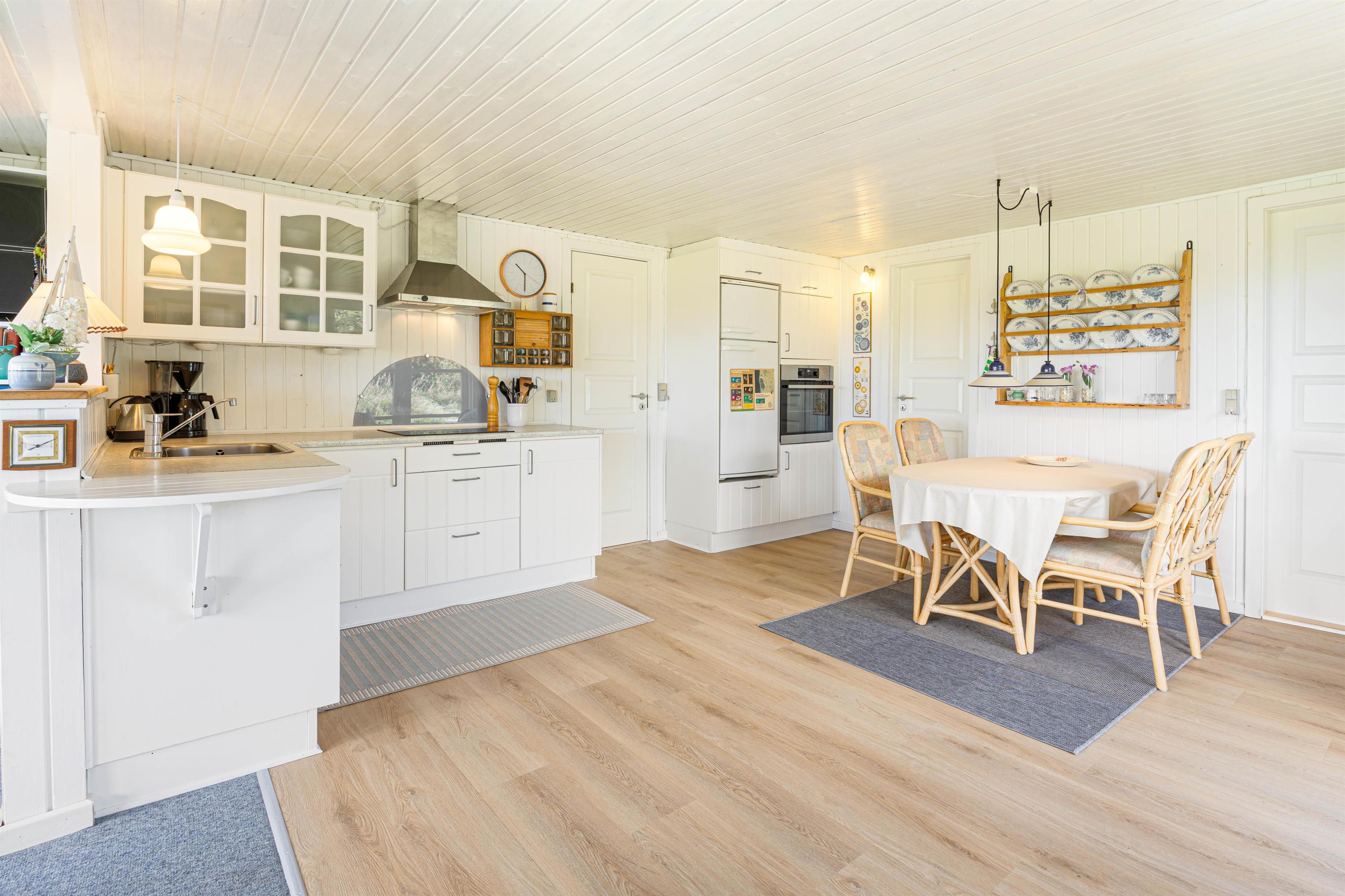 Sommerhuset byder jer velkommen med sin oprindelige charme, hvor i helt sikkert vil føle jer hjemme. De 82 m2 er fordelt på et åbent opholds- og spiseområde med et åbent køkken, så I er sammen uanset om I laver mad, eller sidder i sofaen og slapper af. Der er ingen opvaskemaskine, så her er rig mulighed for at snakke imens man vasker op sammen.
