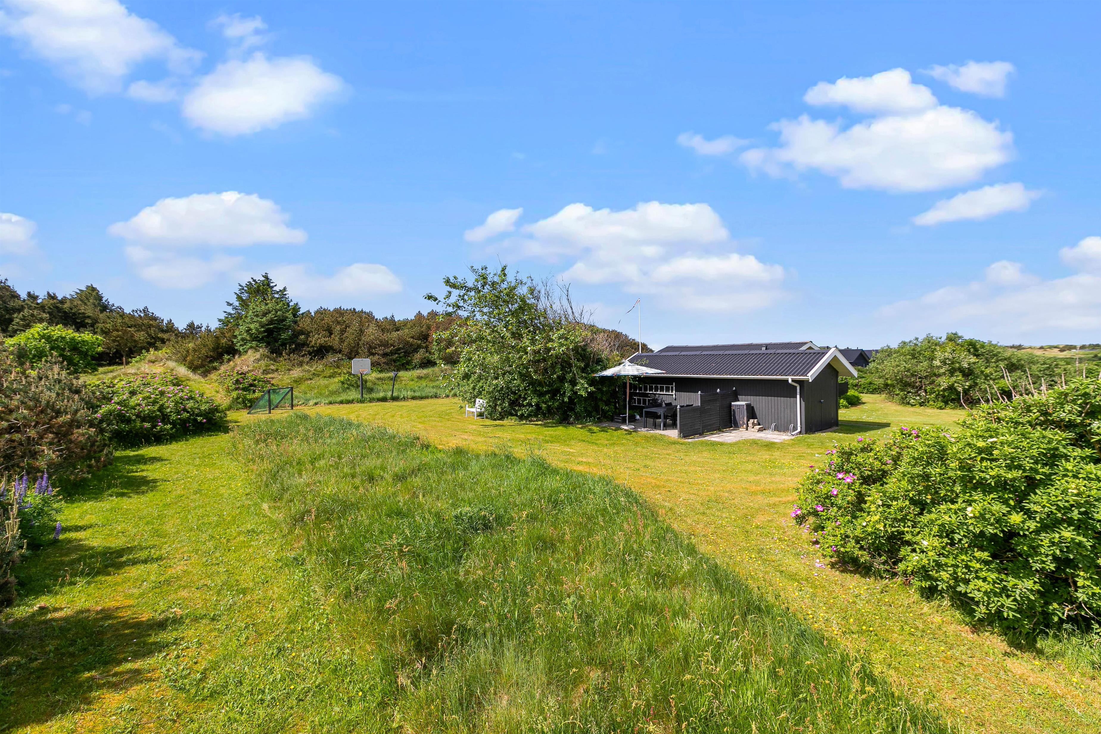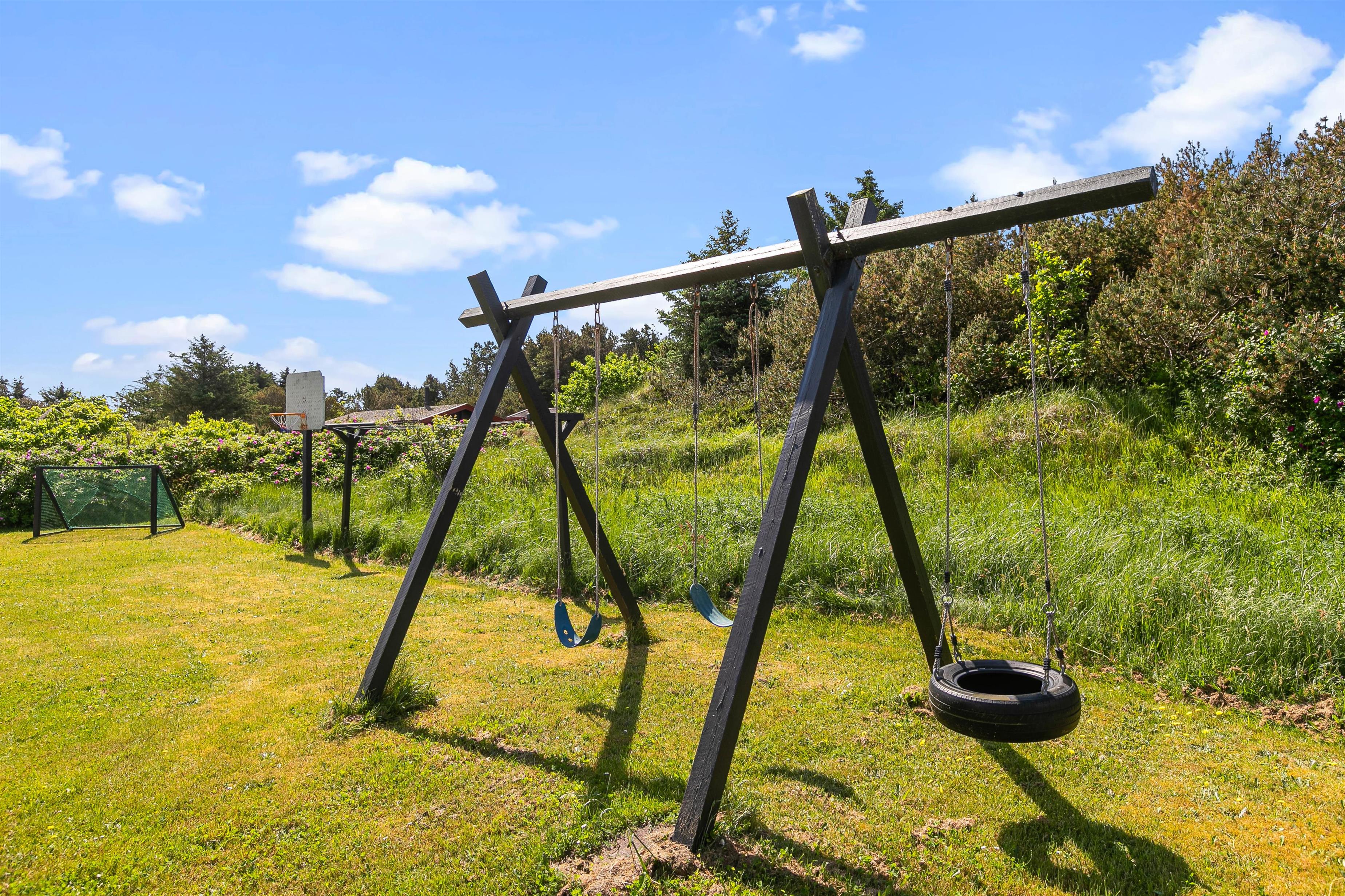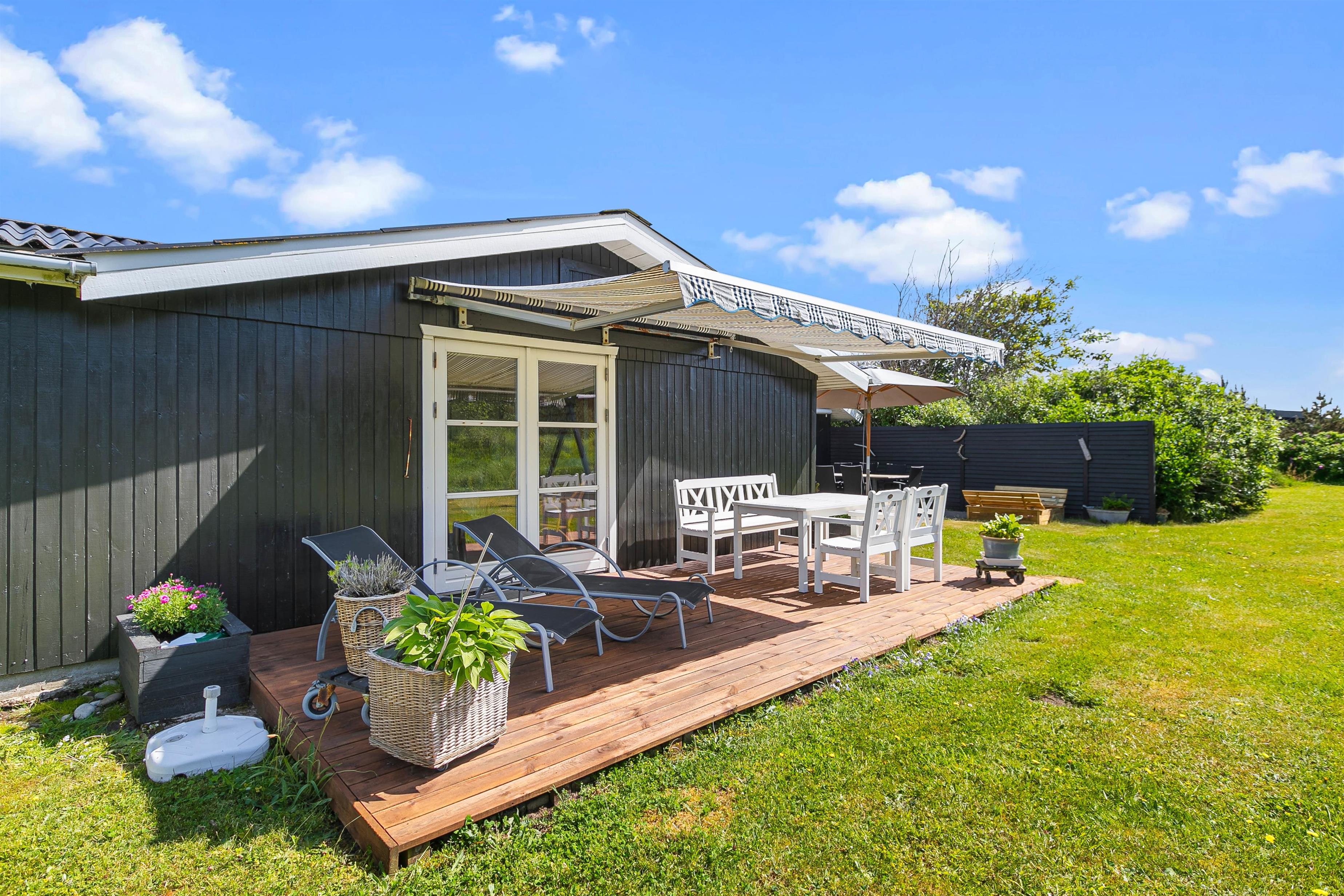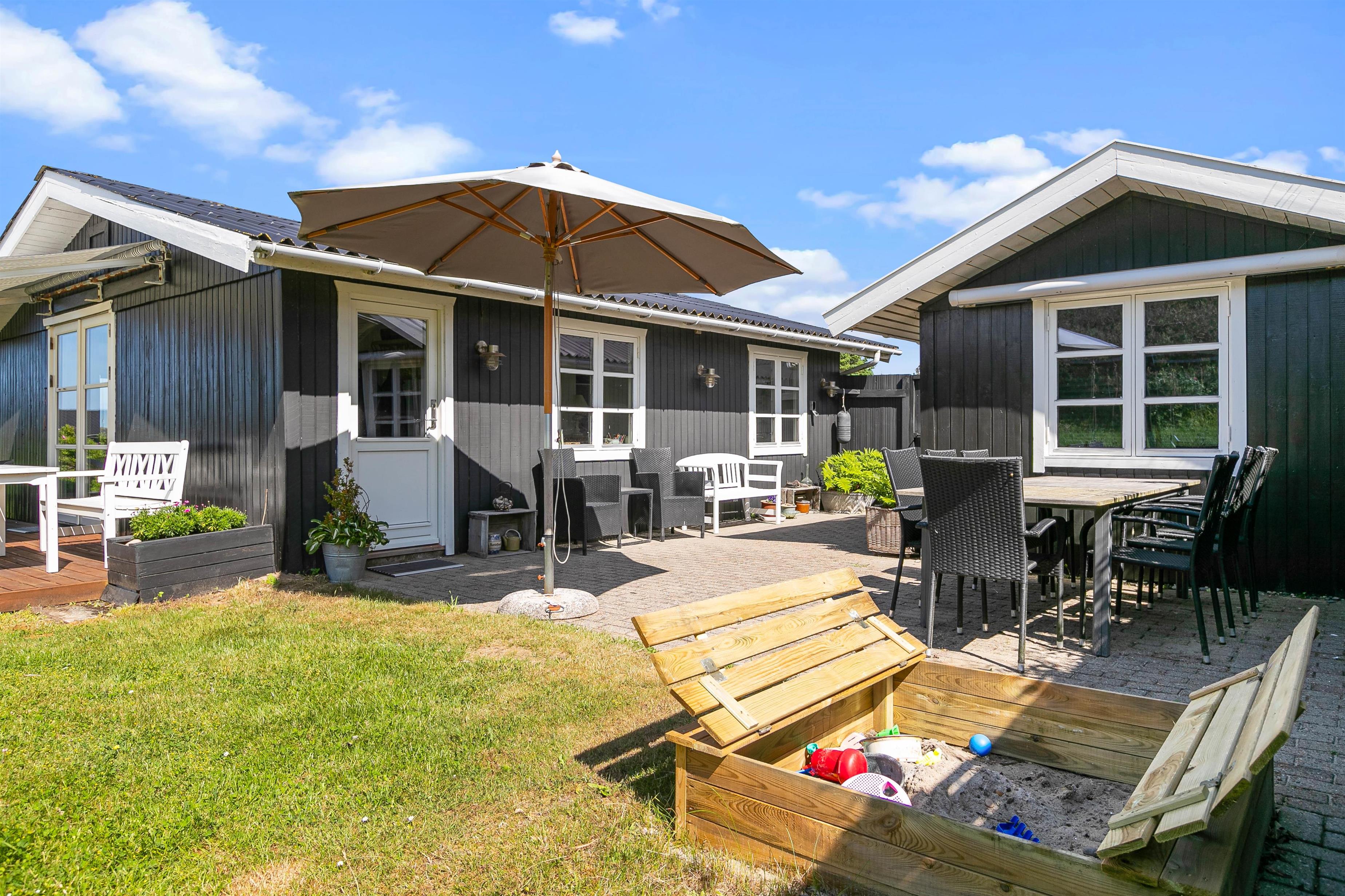 Sommerhusets ligger på en 1633 m2 stor naturgrund, så her er der derfor plads til at I kan slå jer løs og få brugt en masse energi. På grunden finder I også en gynge og en sandkasse, hvilket der helt sikkert vil glæde jeres børn. Imens børnene leger i haven og nyder det gode ferievejr, kan I sidde på træterrassen og nyde en kold drink. I har også mulighed for at tænde op for sommerhusets tilhørende grill, som står på stenterrassen, hvor I sammen kan tilberede et lækkert måltid mad.