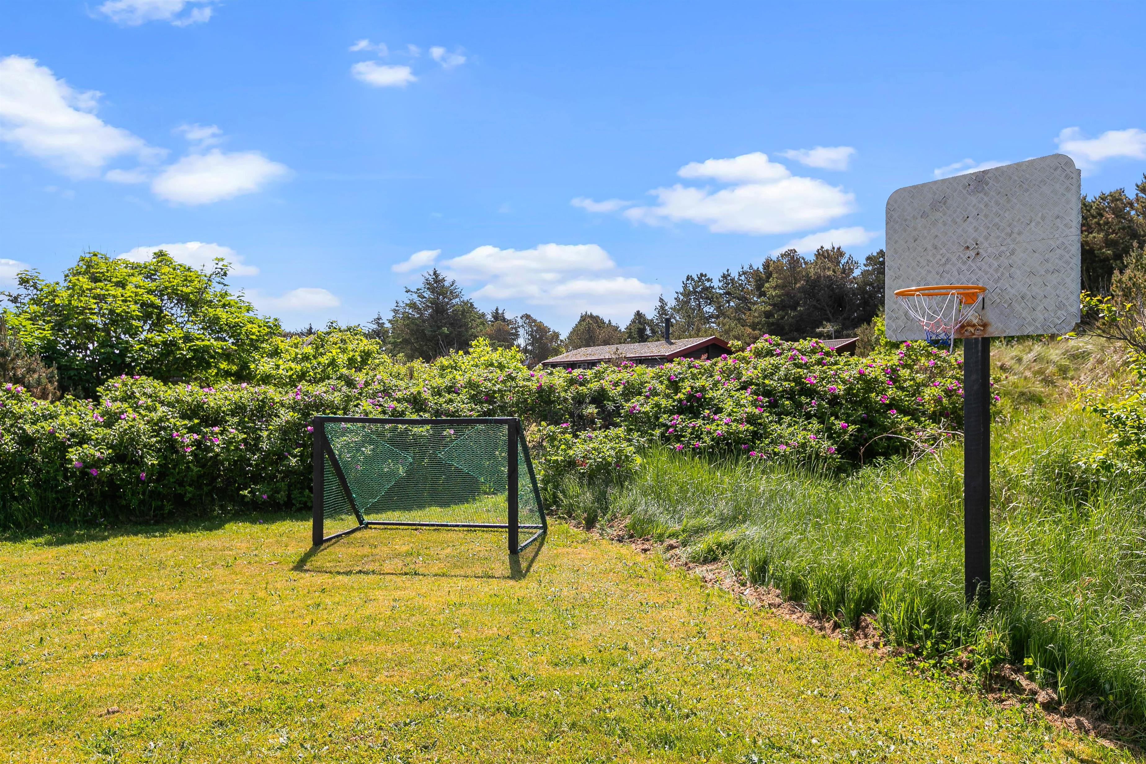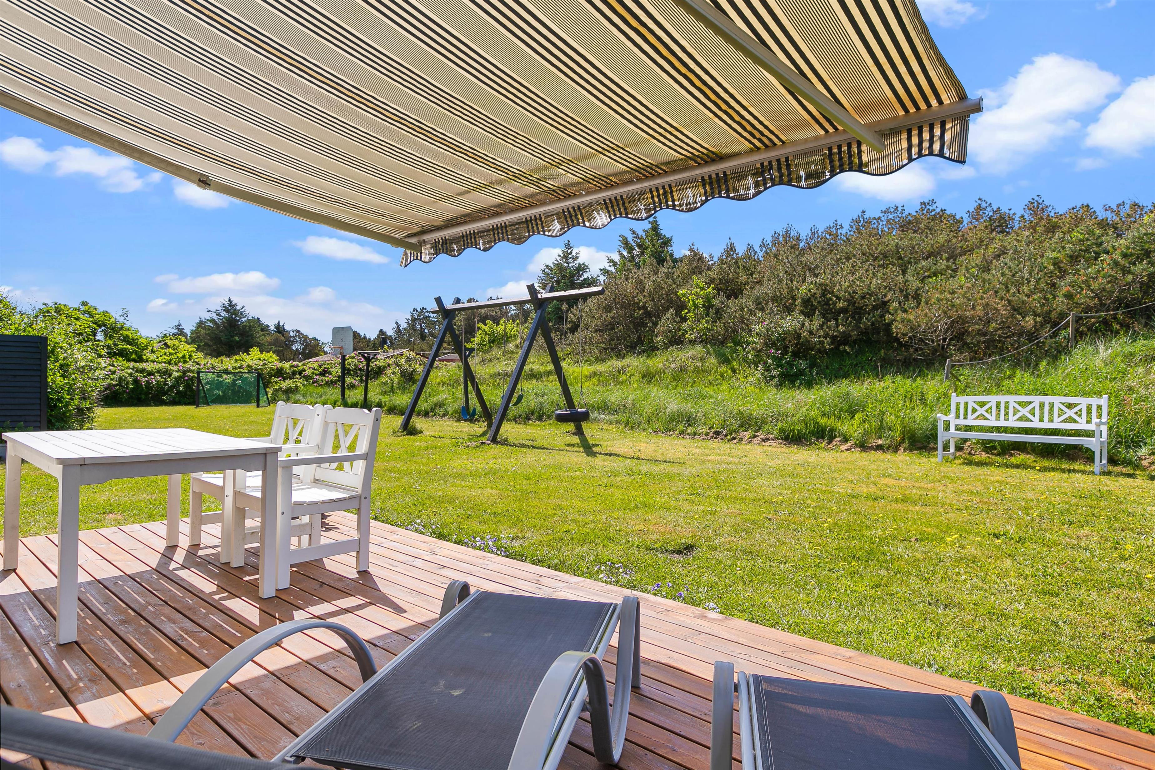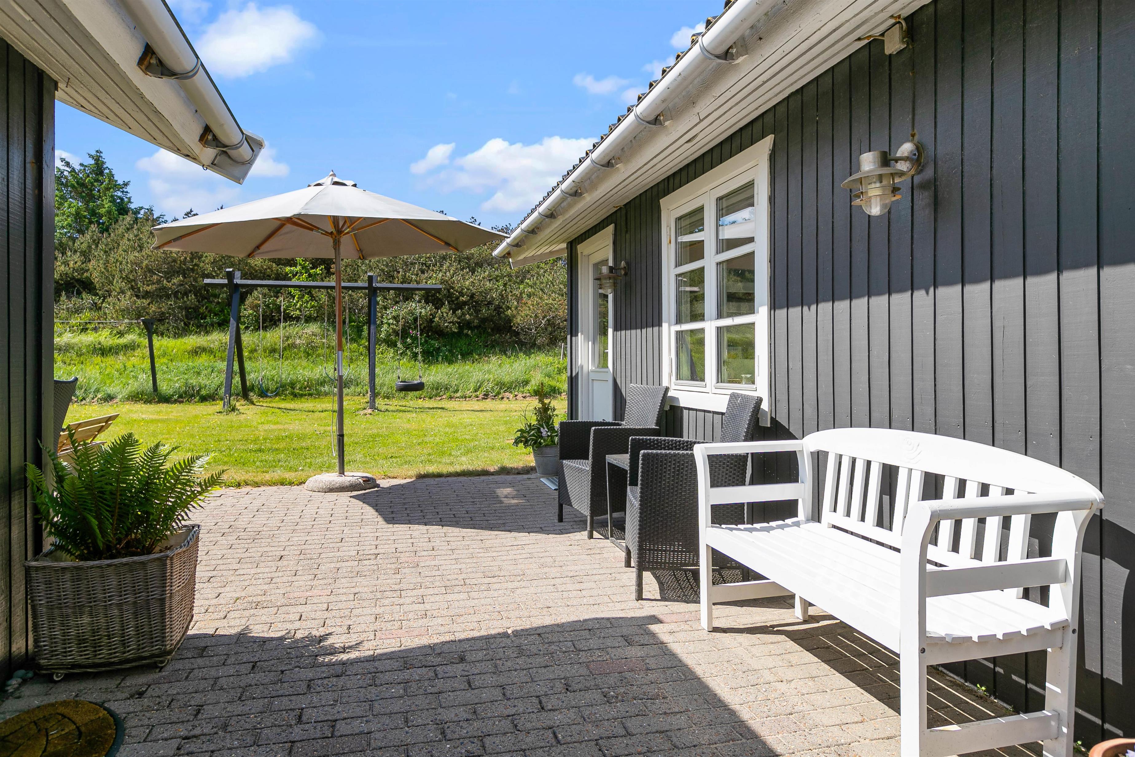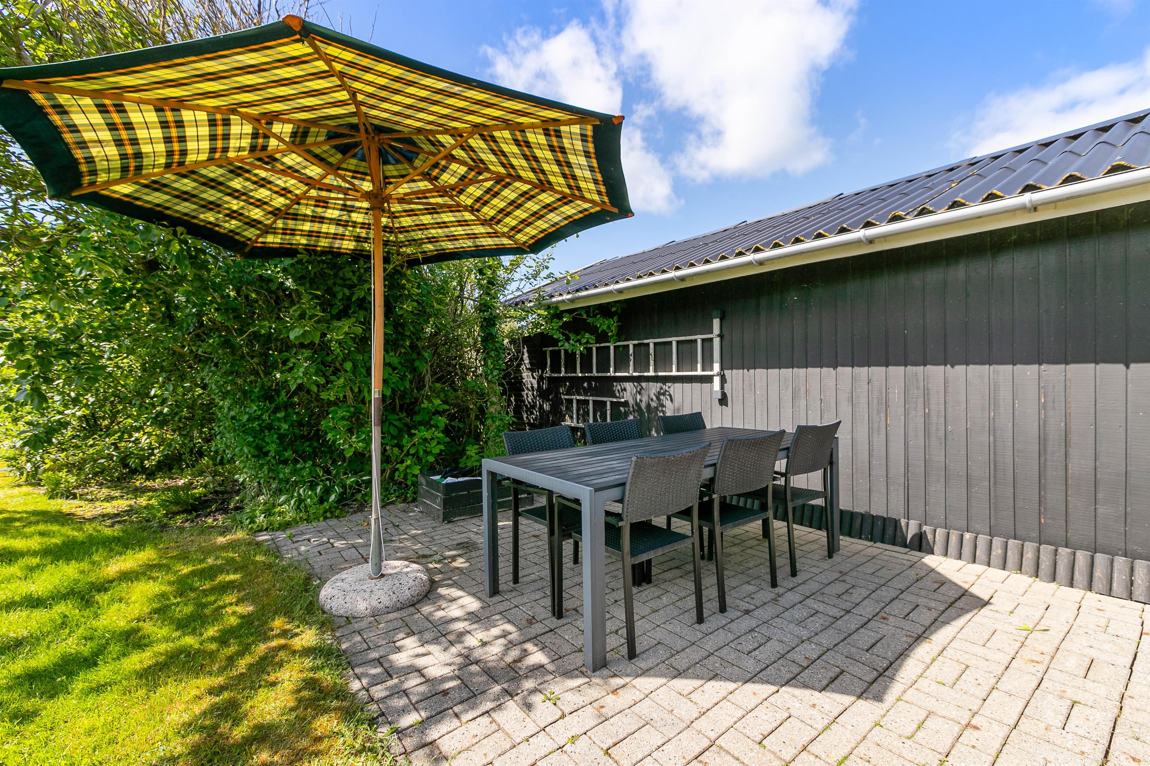 Sommerhusets ligger på en 1633 m2 stor naturgrund, så her er der derfor plads til at I kan slå jer løs og få brugt en masse energi. På grunden finder I også en gynge og en sandkasse, hvilket der helt sikkert vil glæde jeres børn. Imens børnene leger i haven og nyder det gode ferievejr, kan I sidde på træterrassen og nyde en kold drink. I har også mulighed for at tænde op for sommerhusets tilhørende grill, som står på stenterrassen, hvor I sammen kan tilberede et lækkert måltid mad.