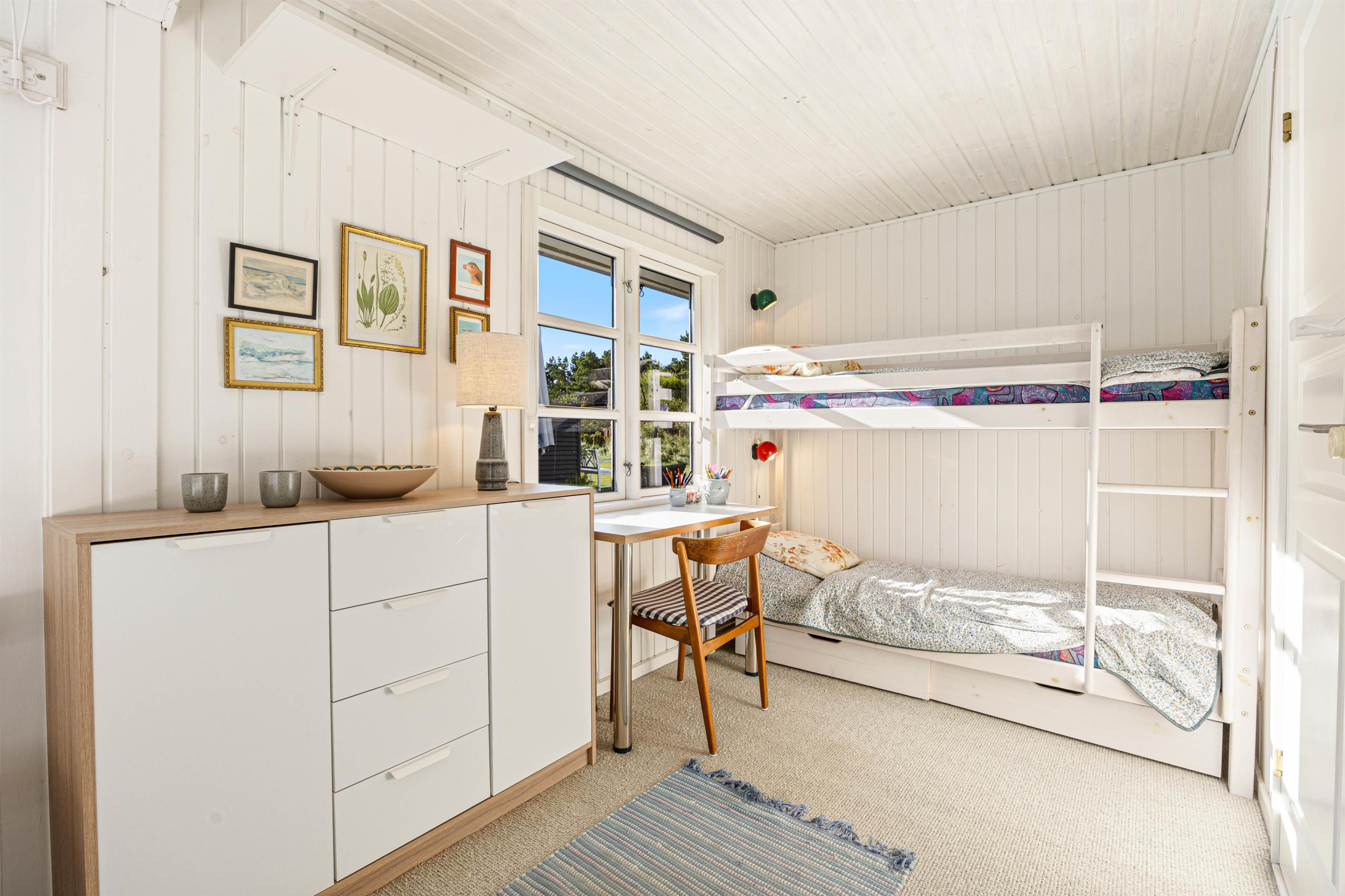 Sommerhuset rummer 1 badeværelse og 3 soveværelser, hvor af den ene af soveværelserne er placeret ud i feriehusets tilhørende anneks. I feriehuset finder I også en hyggelig stue, hvor i sammen kan slappe af og nyde jeres ferie.