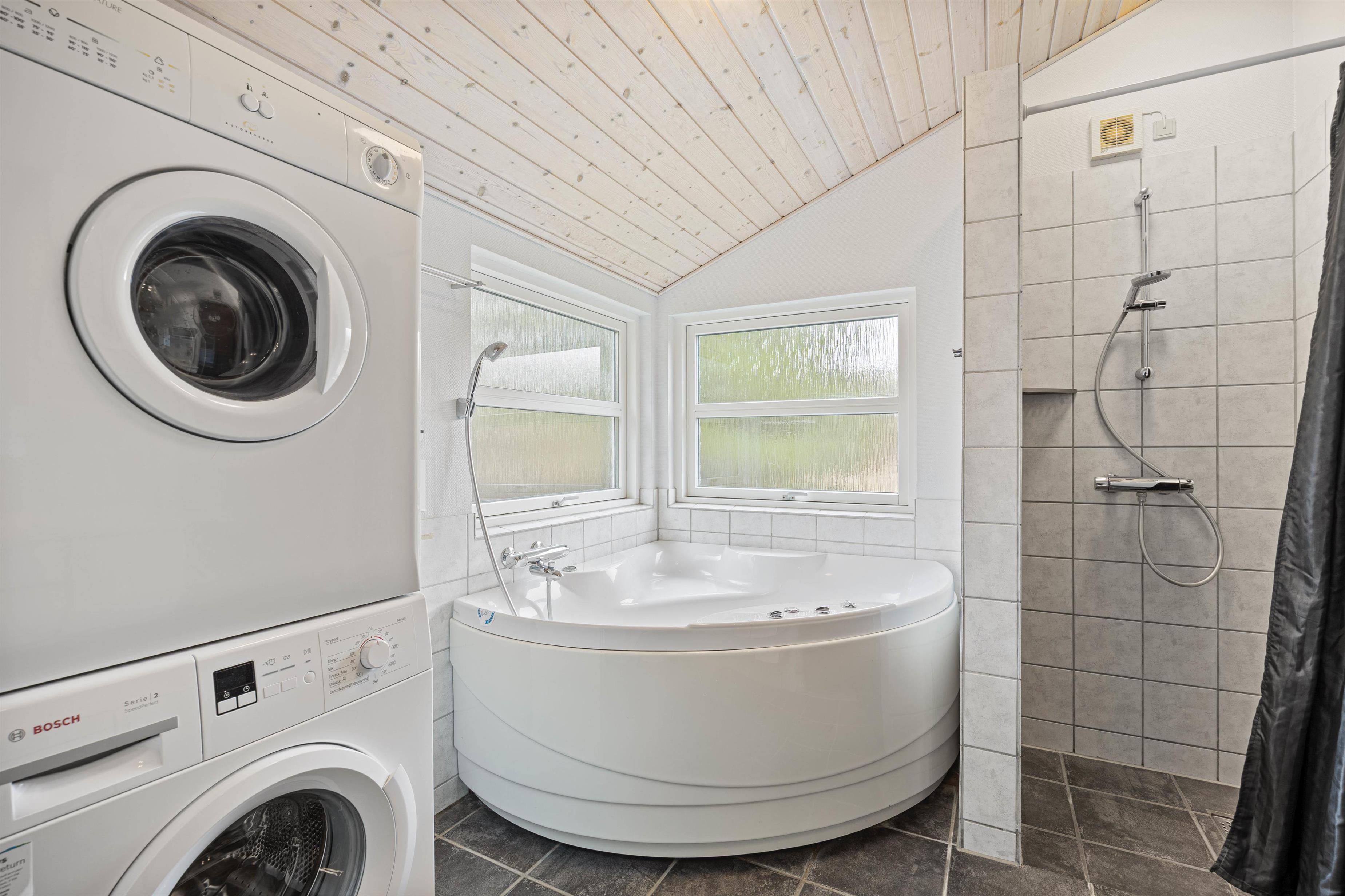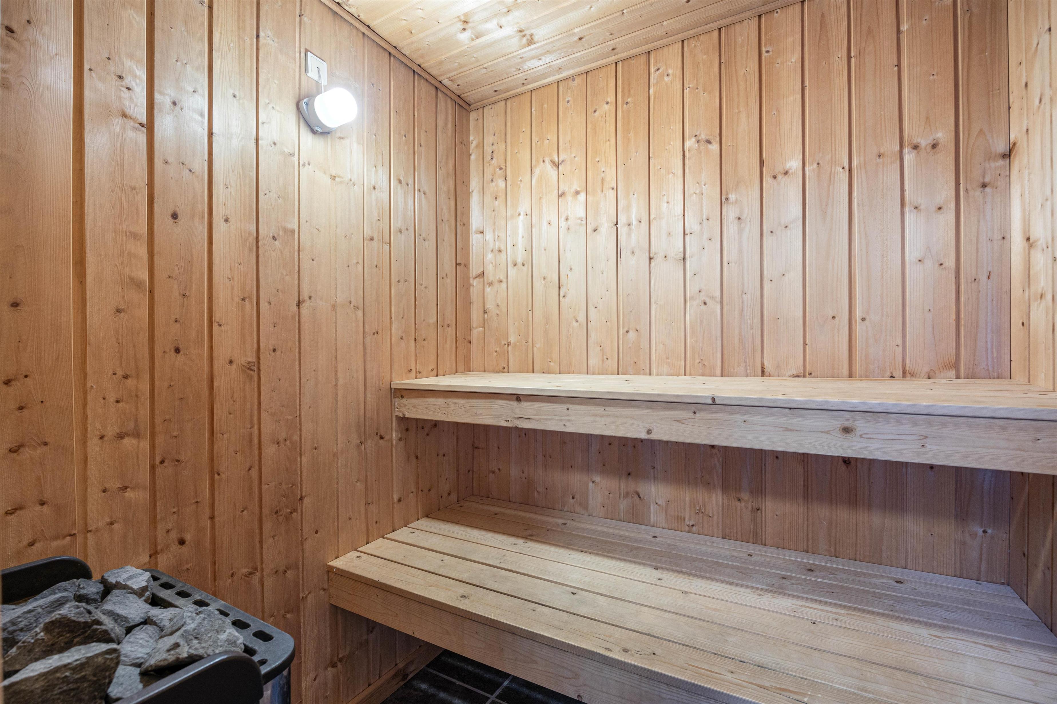 Huset indbyder på alle måder til samvær og nærvær. I husets ene ’wellness-badeværelse’, er der spabad og sauna, som giver kroppen alle muligheder for at komme ned i gear og blive varmet godt igennem. Det giver dig mulighed for at slappe af og genoplade batterierne og er det ideelle tilflugtssted fra hverdagens stress og jag.
