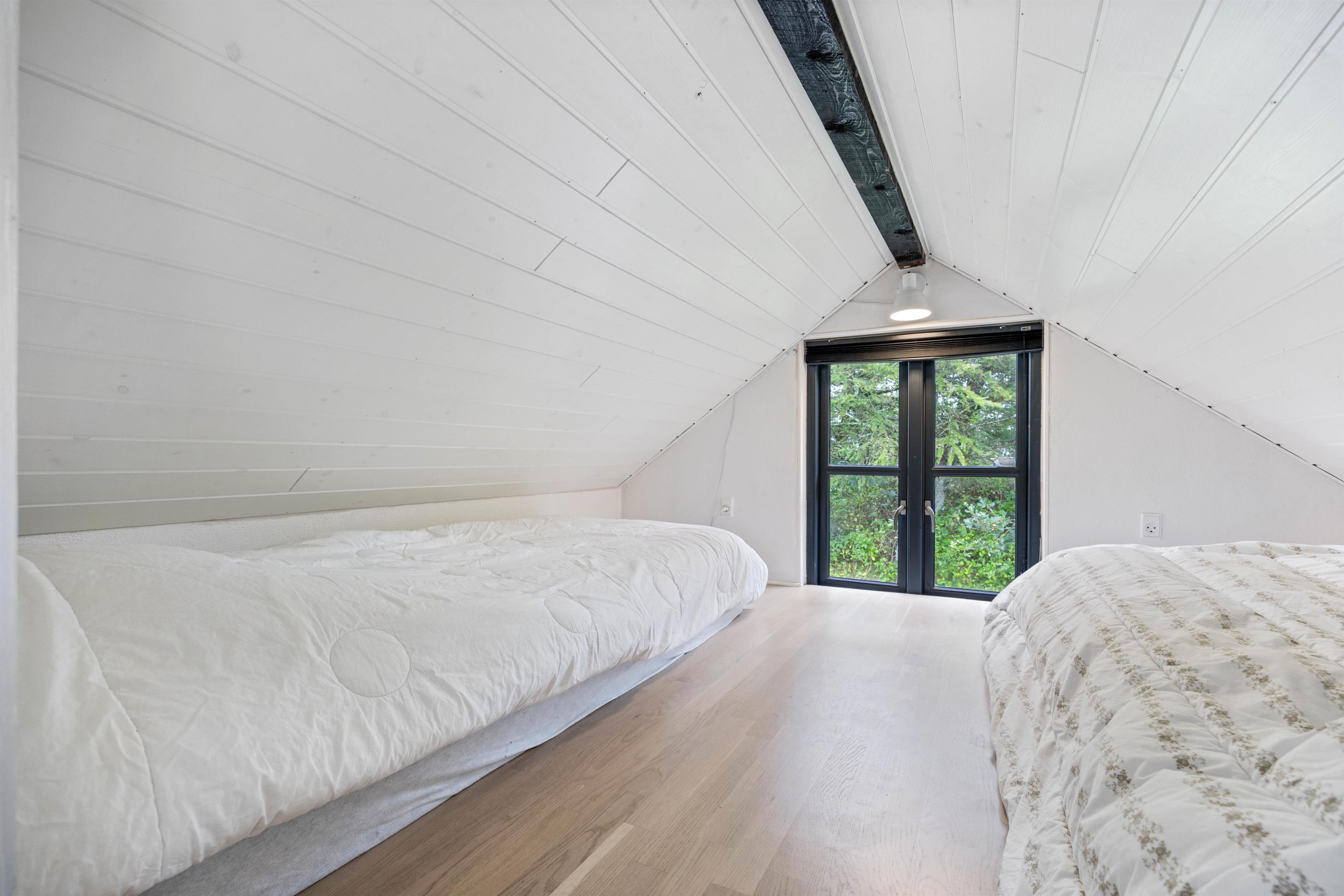 Feriehuset er indrettet med 2 soveværelser, som hver er indrettet med en dobbeltseng. Der er yderligere 2 sovepladser oppe på hemsen, hvilket der helt sikkert vil glæde jeres børn. I badeværelset er der gulvvarme, så her skal I ikke bekymre jer om kolde fødder. For ekstra komfort og afslapning, finder i på badeværelset et lækkert badekar, der helt sikkert vil bidrage med noget godt til jeres ferie.