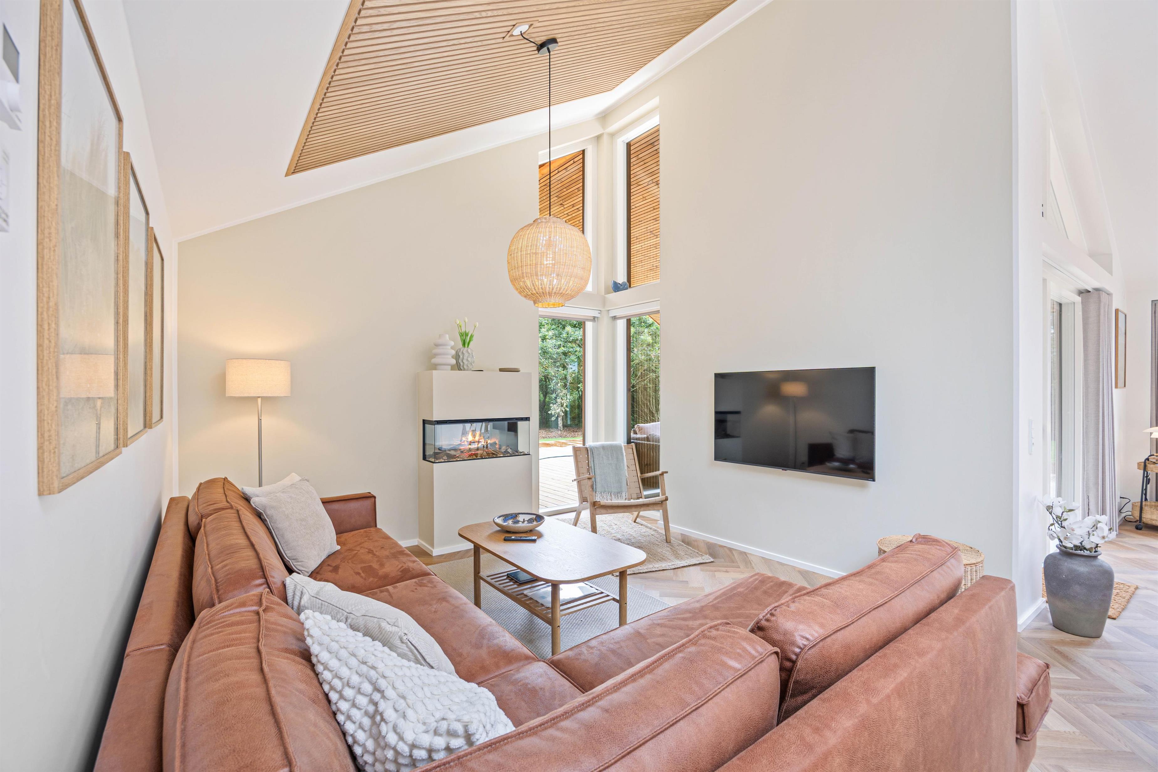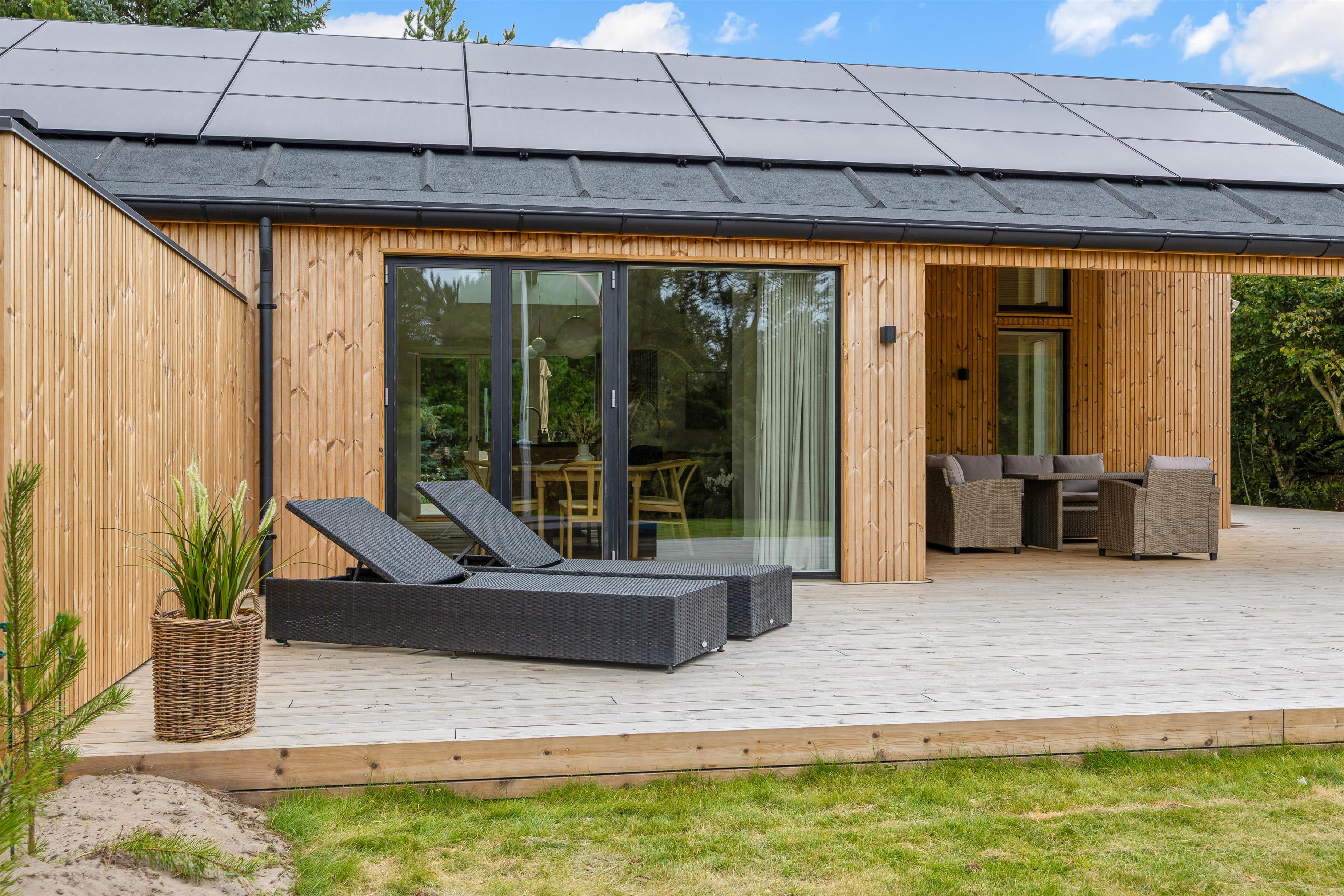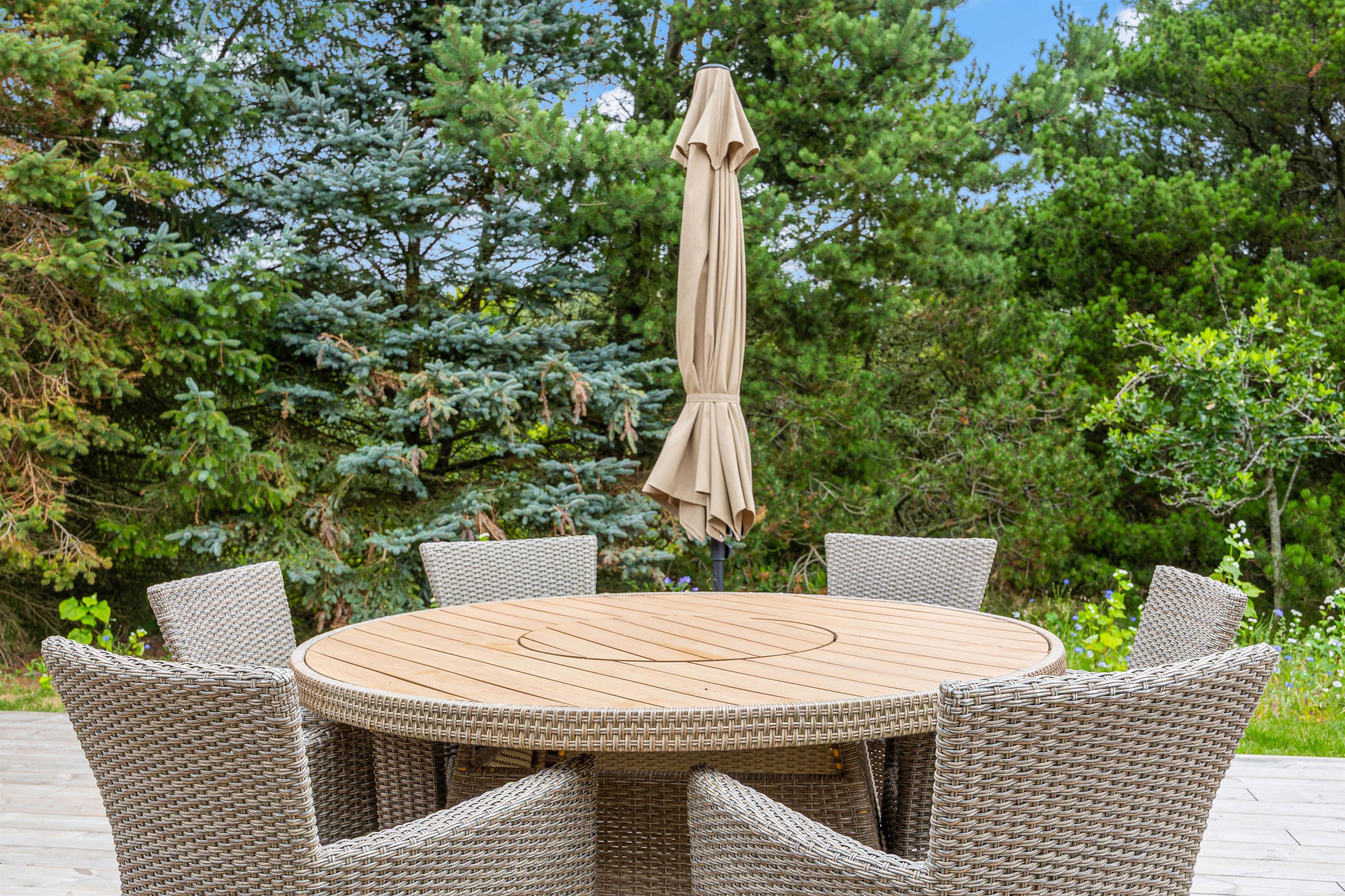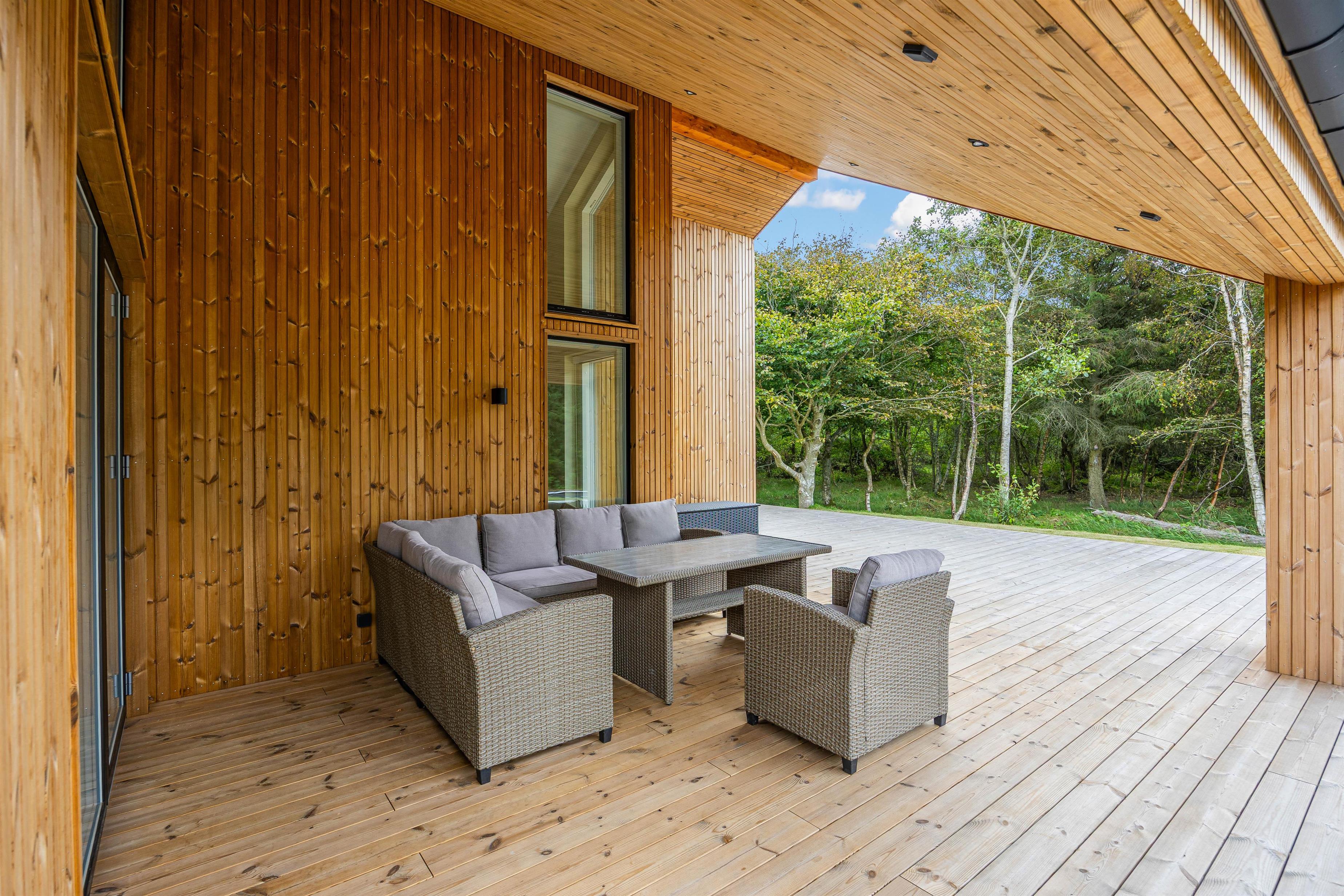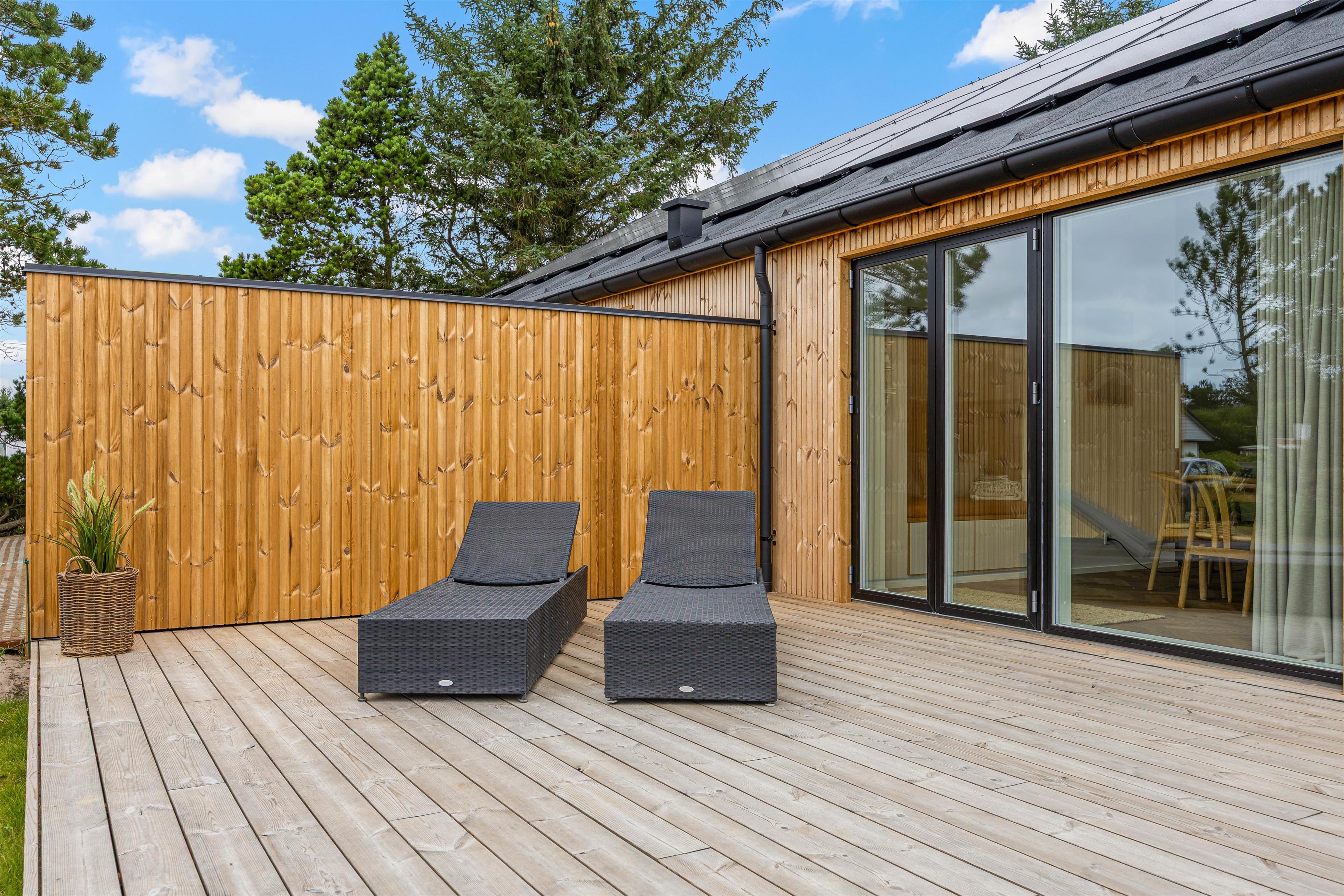 Udearealet omkring dette dejlige feriehus lader intet tilbage at ønske. Tilbring solrige dage på den åbne terrasse, eller træk jer tilbage til den afskærmede eller overdækkede terrasse, som giver jer privatliv og beskyttelse mod det skiftende vejr. Græsplænen indbyder til leg og afslapning, mens havemøblerne giver en ideel mulighed for at nyde den friske luft. Brug det udendørs spabad til at slappe af efter en oplevelsesrig dag, eller nyd en stund i udesaunaen – og bare mærk, at I har ferie. En forfriskende udebruser, der er tilgængelig hele året, afrunder wellness-oplevelsen.