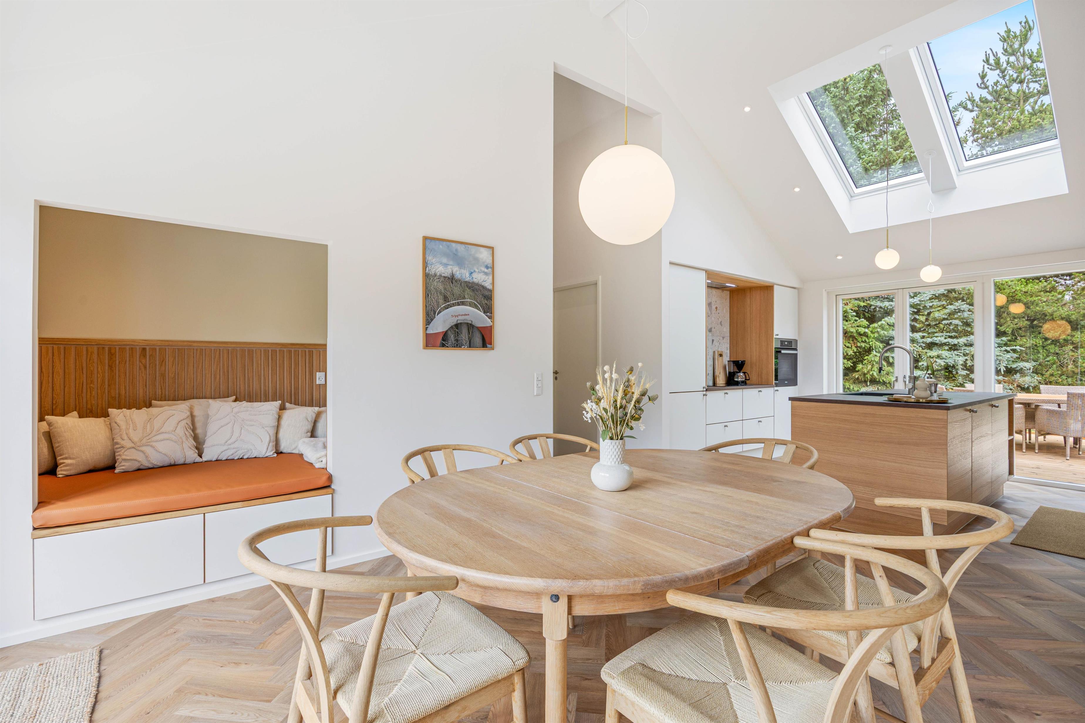 Med plads til op til 6 personer er dette feriehus ideelt til familier eller vennegrupper. Feriehuset er udstyret med alle de nødvendige bekvemmeligheder for at gøre jeres ophold så behageligt som muligt. Det moderne køkken, der er udstyret med opvaskemaskine, indbyder til fælles madlavning. Med vaskemaskine og tørretumbler er der også mulighed for længere ophold, uden bekymring for ikke at have nok tøj med. To badeværelser, inkl. Gulvvarme er med til at gøre morgenrutinerne behagelige.