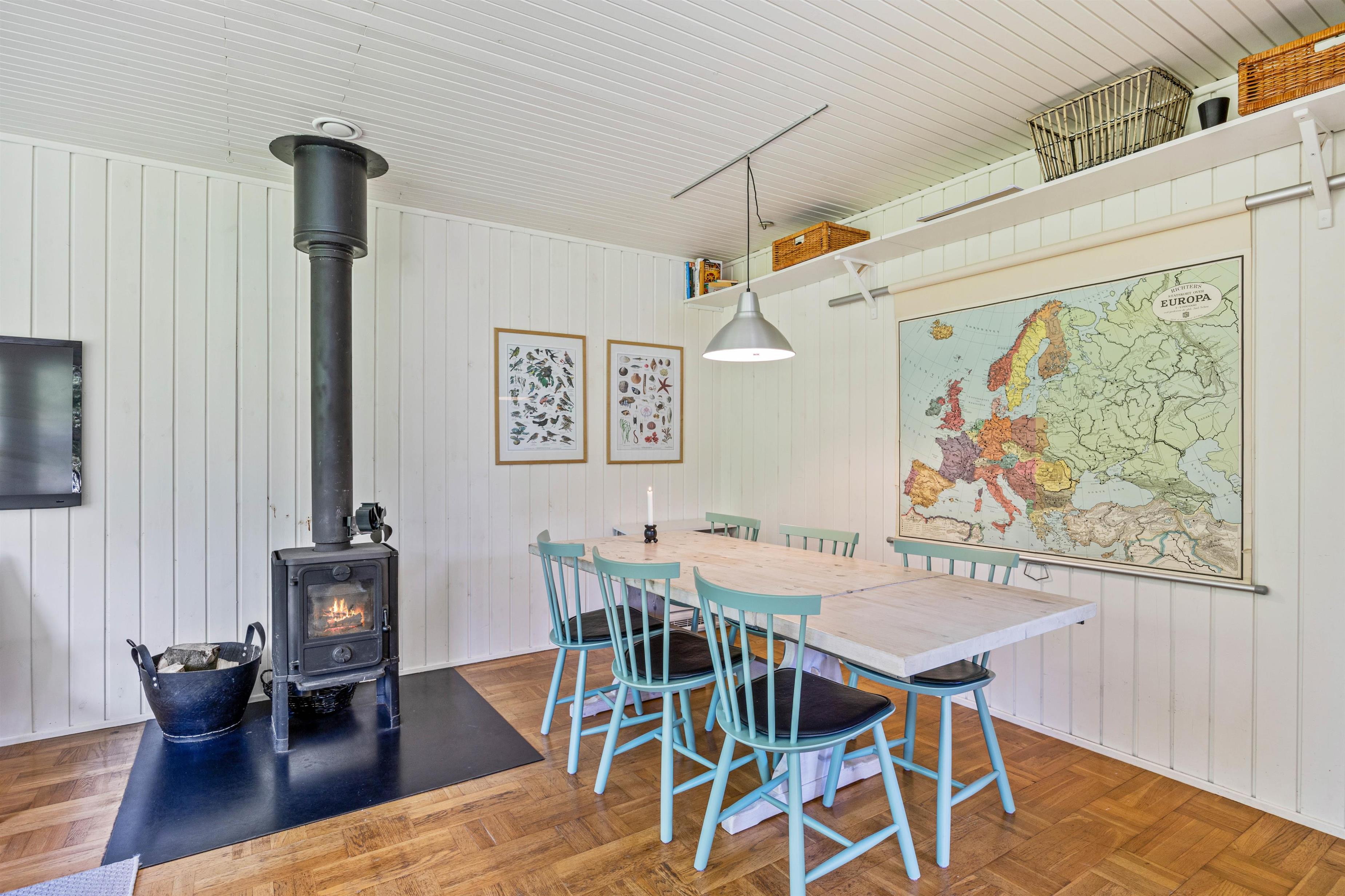I sommerhusets stue vil I uden tvivl tilbringe mange dejlige og hyggelige feriestunder sammen. Her har I mulighed for at samles til sjove spil og gode film i tv’et. I kan også streame jeres yndlingsfilm og -serier, da der er Chromecast. Alt imens sørger brændeovnen for at fuldende feriestemningen med sin knitren og varme.