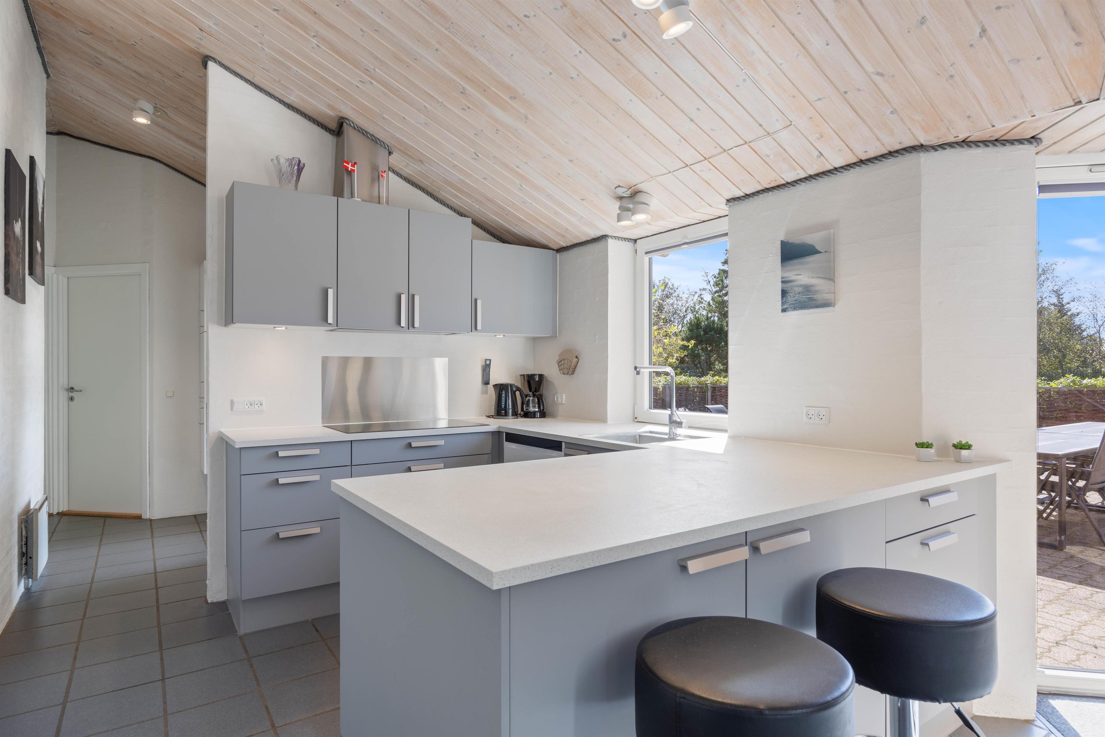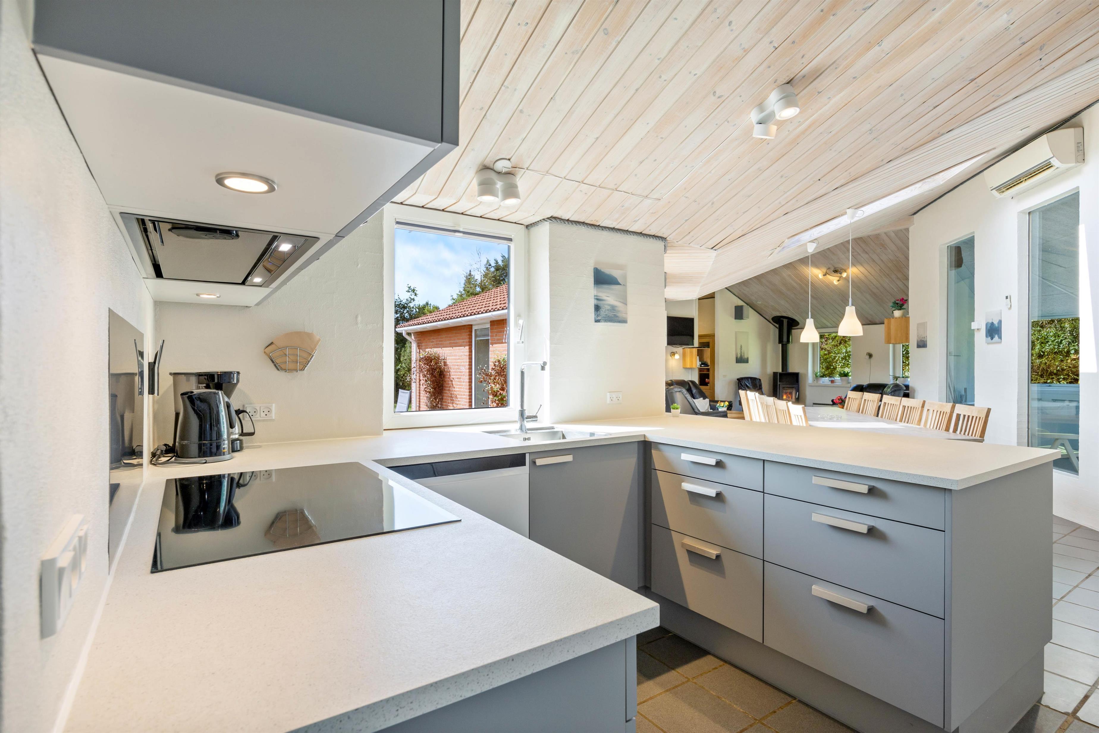 Med et moderne køkken, er der styr på alle detaljerne, så I kan få den bedste ferie. Der er god plads i sommerhuset, og den hyggelige atmosfære gør, at I straks vil føle jer hjemme! Hele familien kan samles i den store stue, som indbyder til filmaftner eller timevis af spilhygge i hinandens selskab. Her kan I tænde op for brændeovnen, som tilføjer lidt ekstra sommerhushygge.