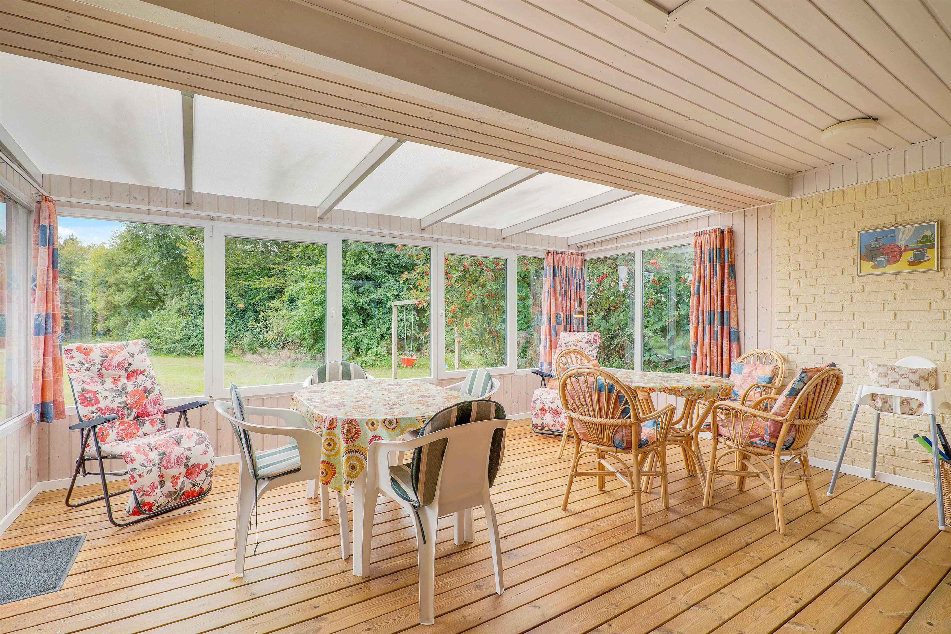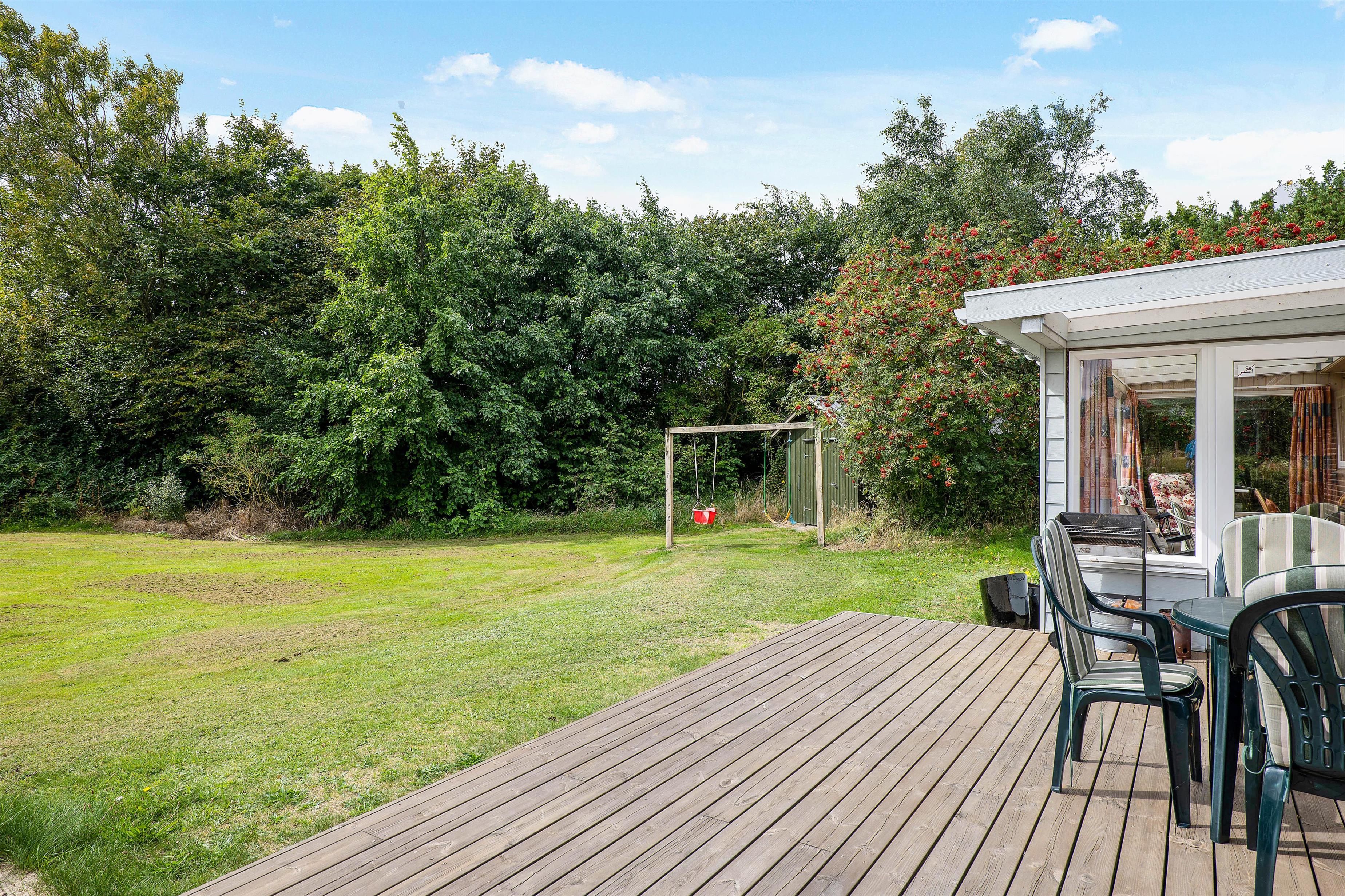 Der er masser af plads til børnenes udfoldelsesmuligheder i sommerhuset på Tambjergvej – både indenfor, men i særdeleshed også udenfor på den store grund. Her har familiens yngste mulighed for at lege i sandkassen, der er praktisk afskærmet. På den måde er børnene i ly for den værste vind.