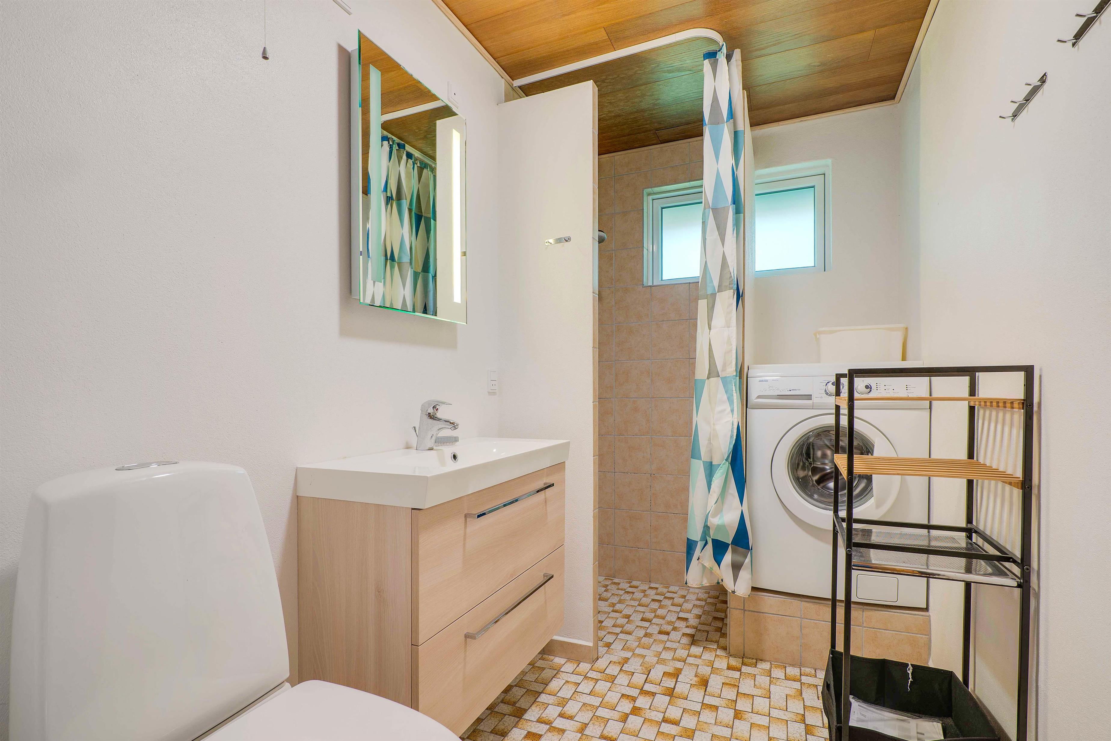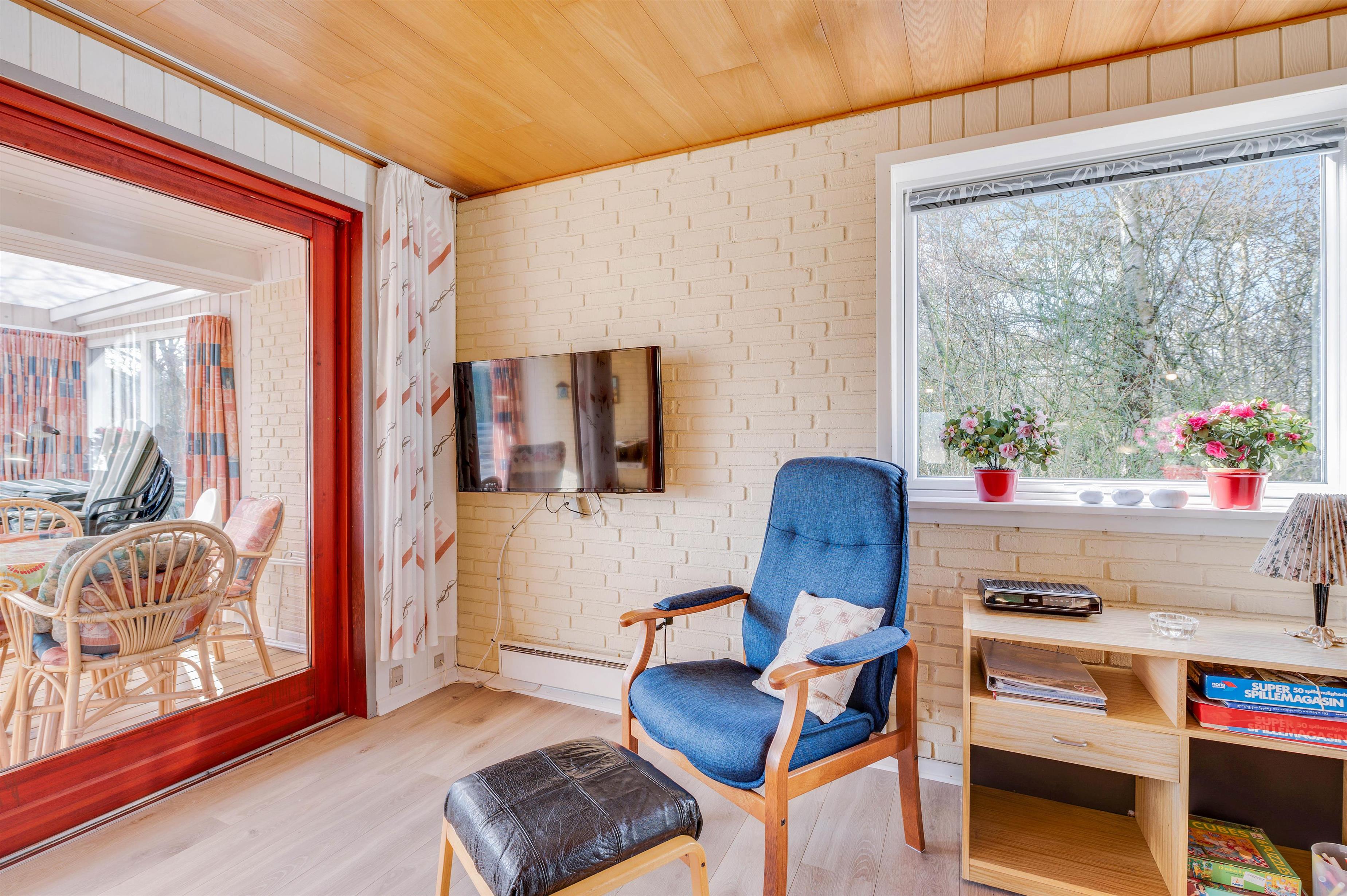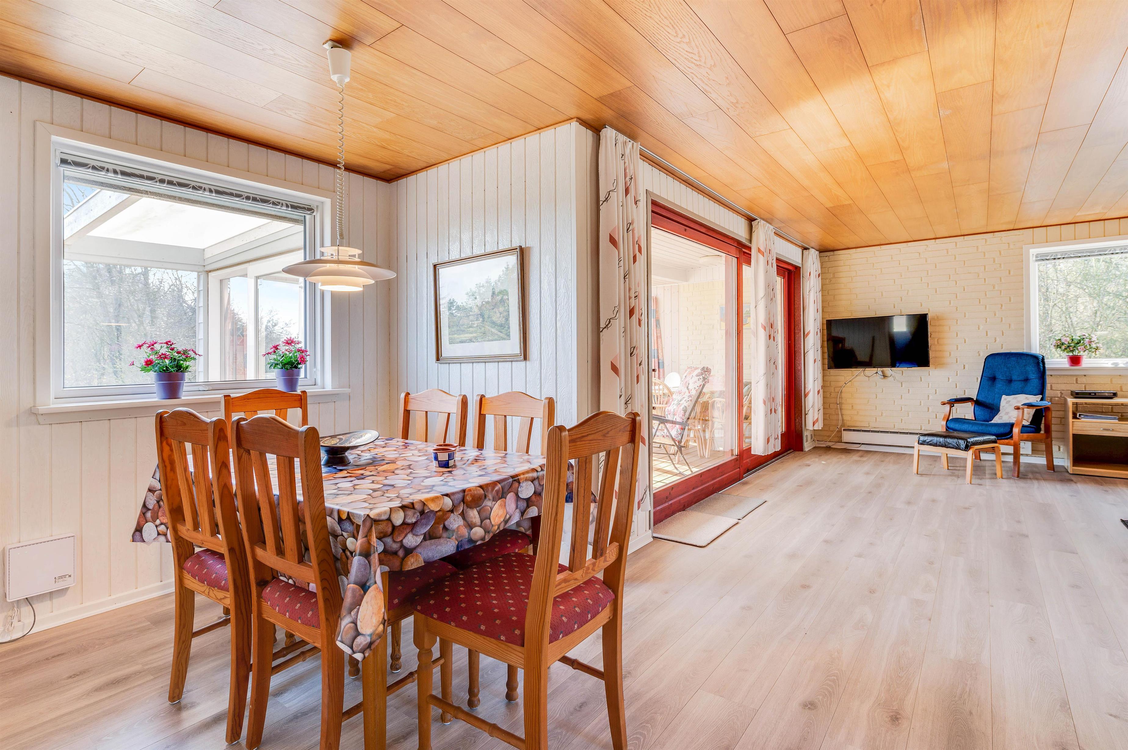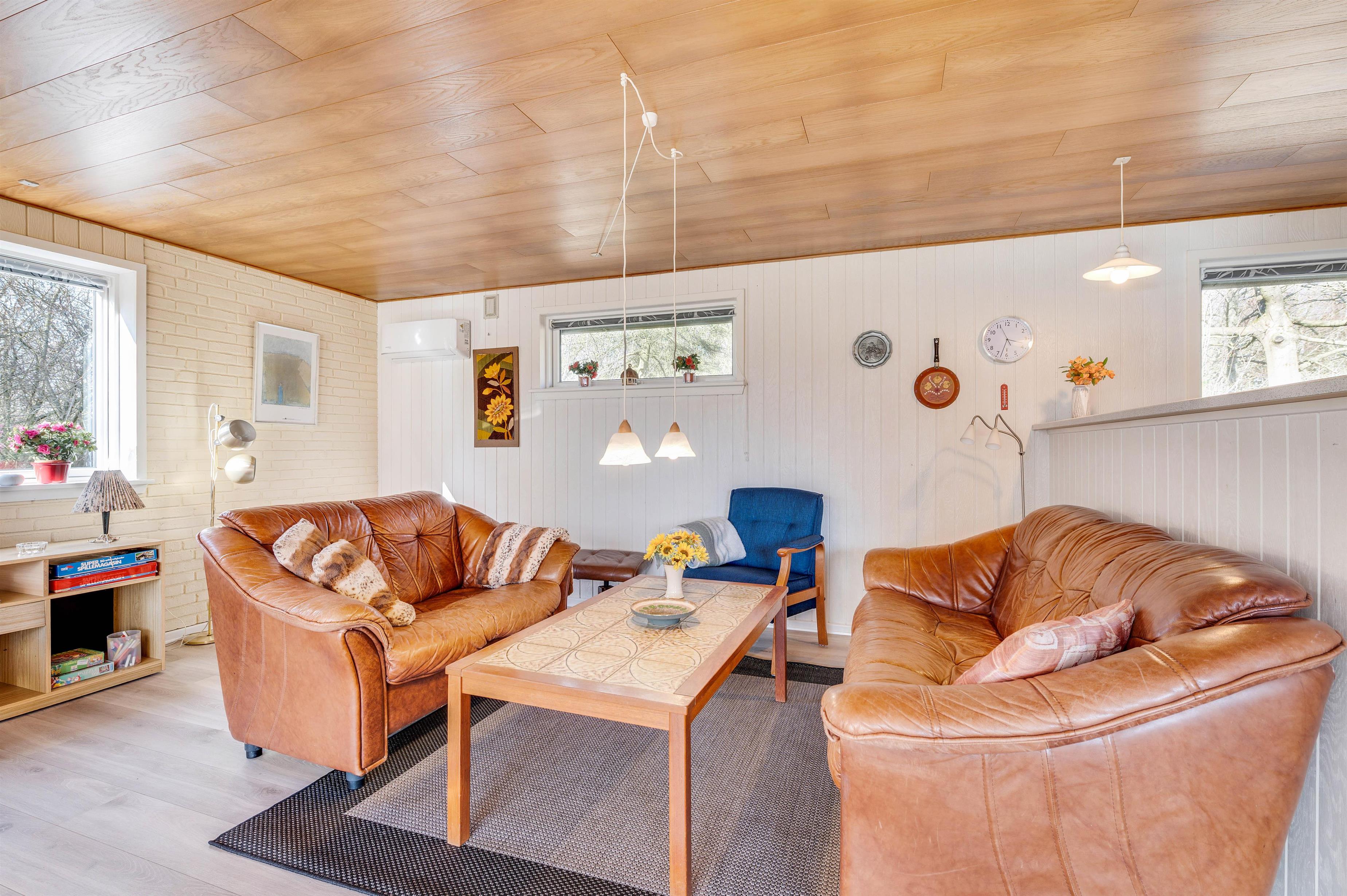 Det charmerende sommerhus i Lodbjerg Hede er indbegrebet af hyggelig sommerhusstemning. Her kan I slappe af i de bløde sofaer, der kalder på at blive indtaget til boglæsning eller en lille lur. Sofagruppen har direkte udsyn til den hyggelige udestue, der er ideel til at nyde morgenens første kop kaffe.