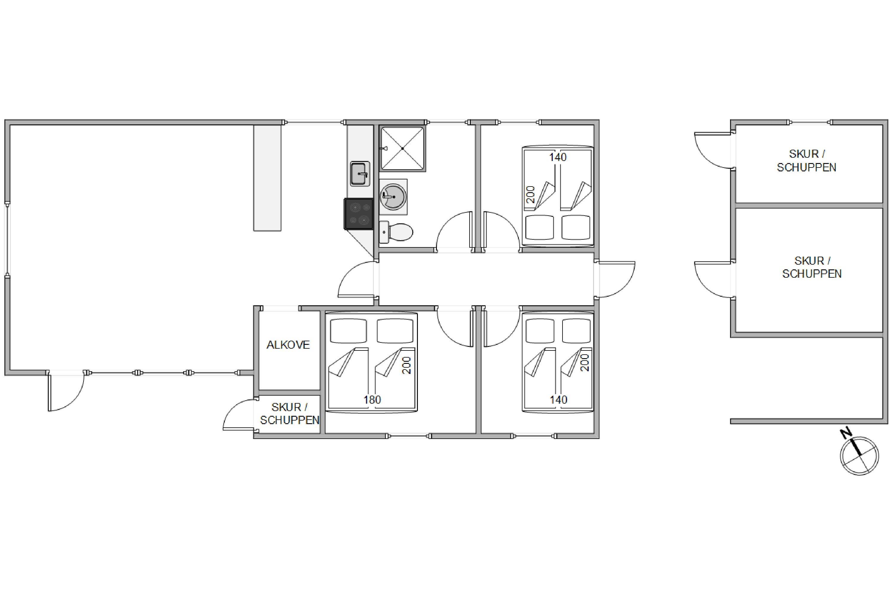 Sommerhuset byder på 3 gode værelser med skabsplads og plads til 4 overnattende feriegæster, hvilket gør det perfekt til den lille familie eller parret, der ønsker ekstra plads. Det moderniserede badeværelse er udstyret med praktiske og pæne klinker samt en fin bruseniche.