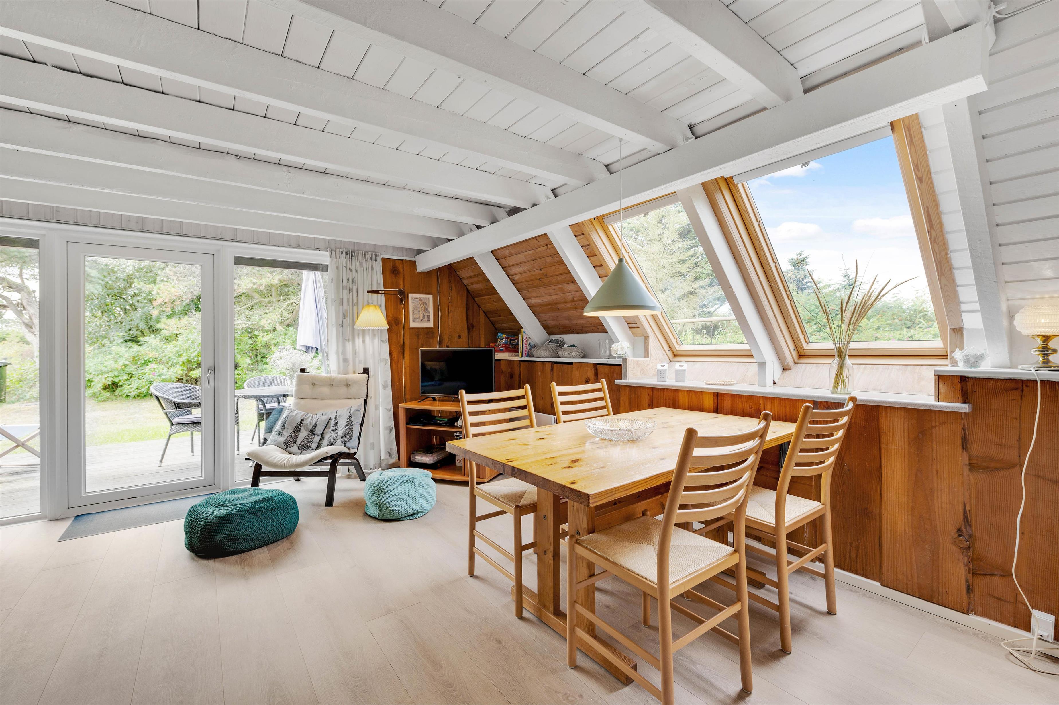 Alrummet er hjertet i sommerhuset, og her vil I uden tvivl komme til at tilbringe mange hyggelige timer sammen med at lave mad, spise, spille spil og se film – I kan streame jeres yndlingsfilm via Chromecasten.