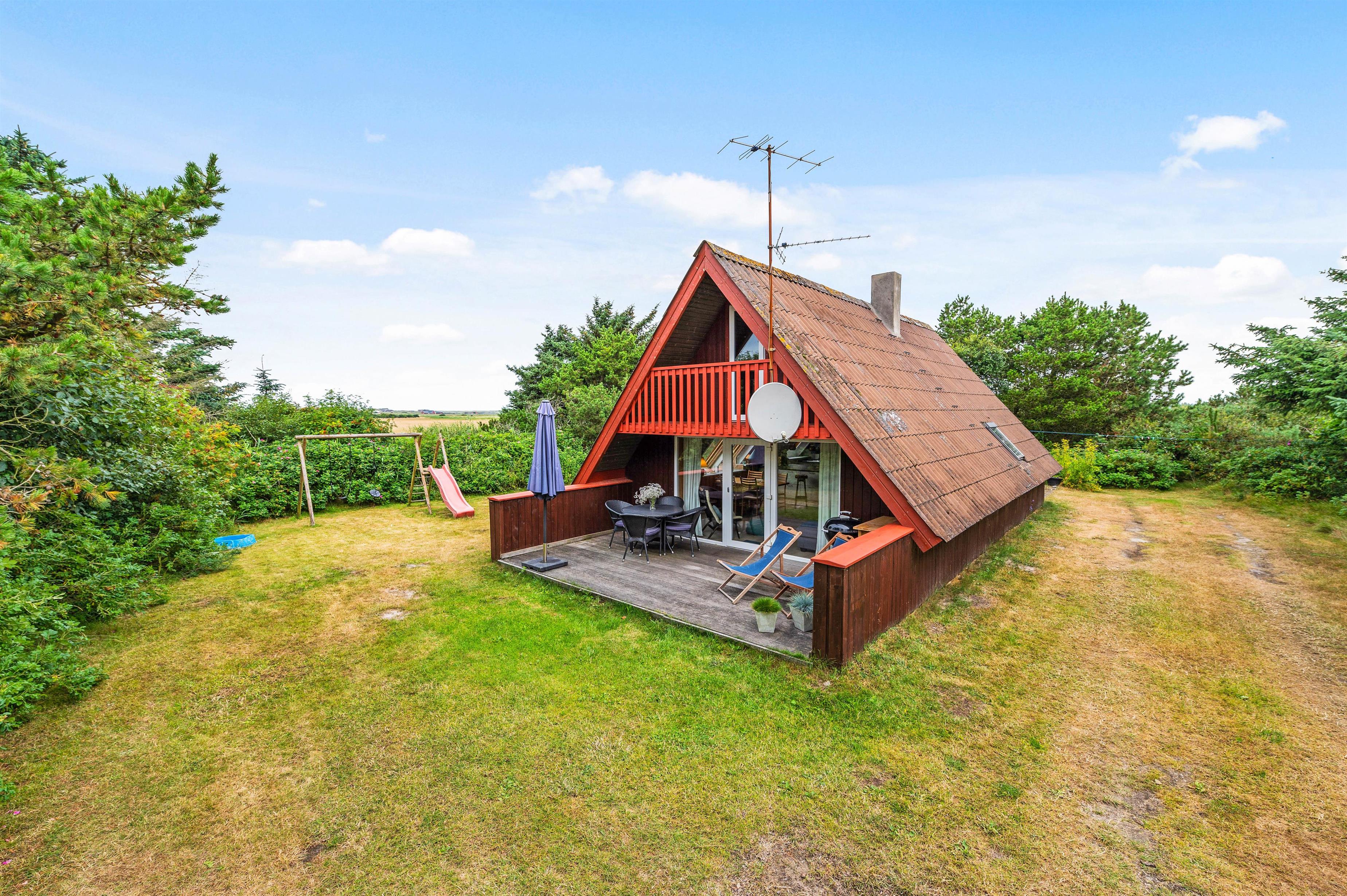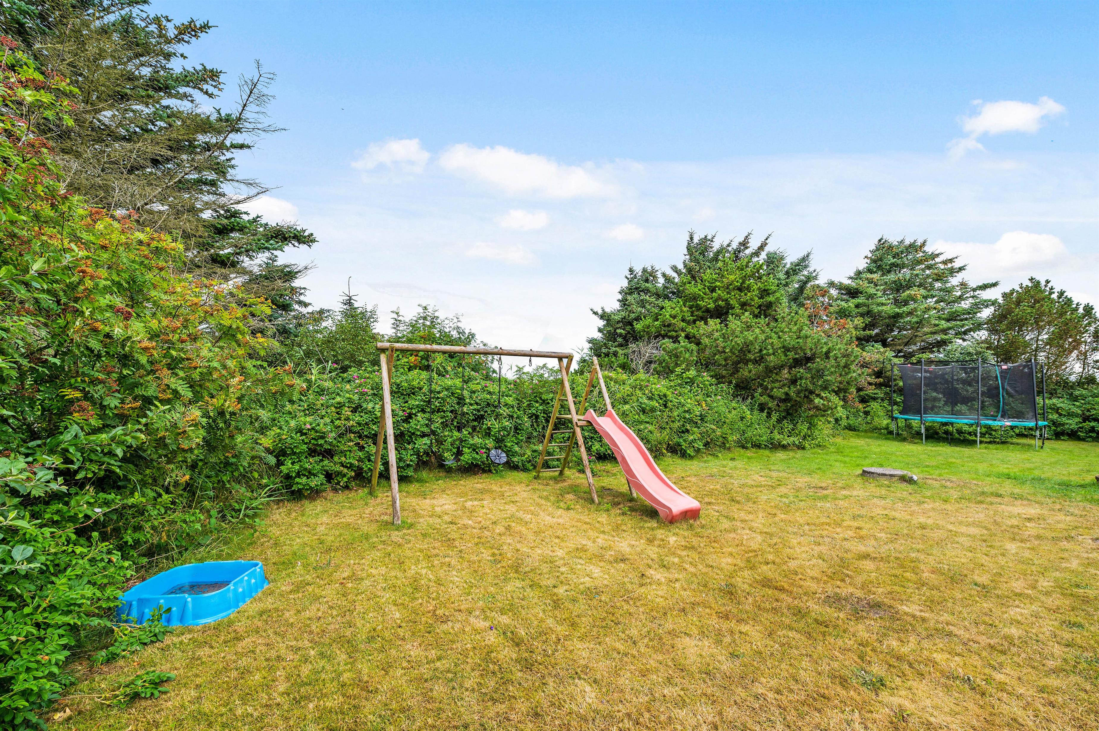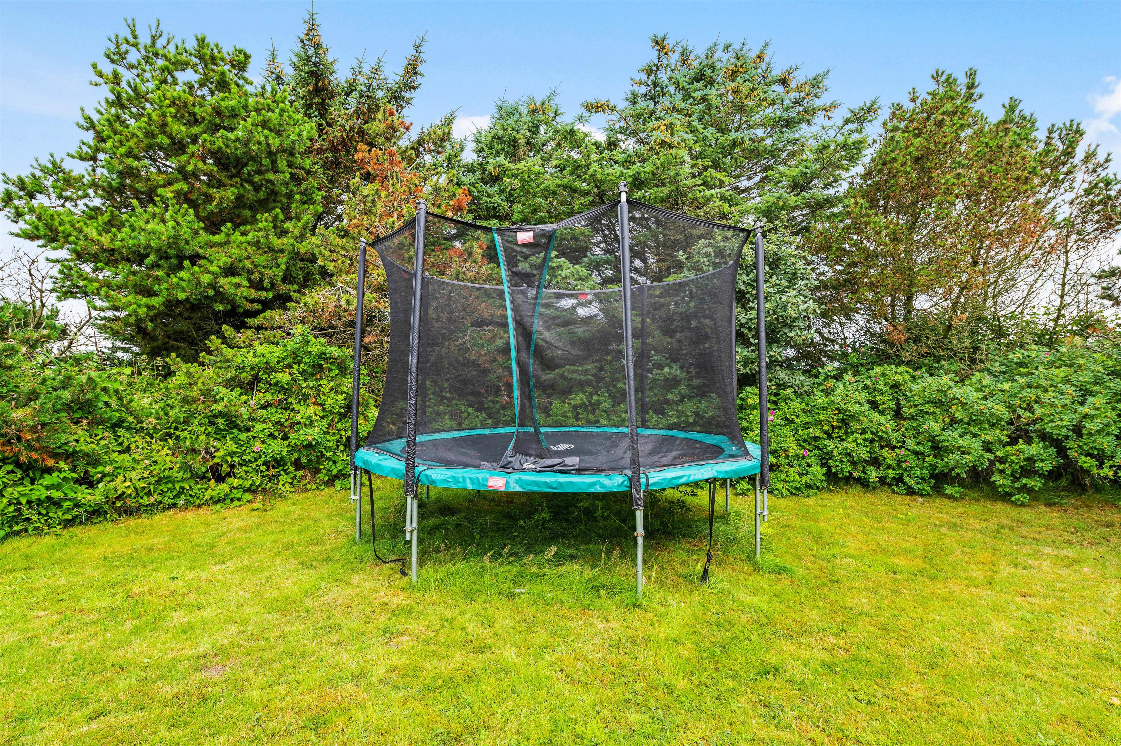 Der står både havemøbler og liggestole klar til jer, så I kan sætte jer godt til rette og nyde de solskinsfyldte feriedage udendørs. Mens de voksne slapper af på terrassen, kan børnene lege i haven, hvor der er et gyngestativ samt trampolin til dem.