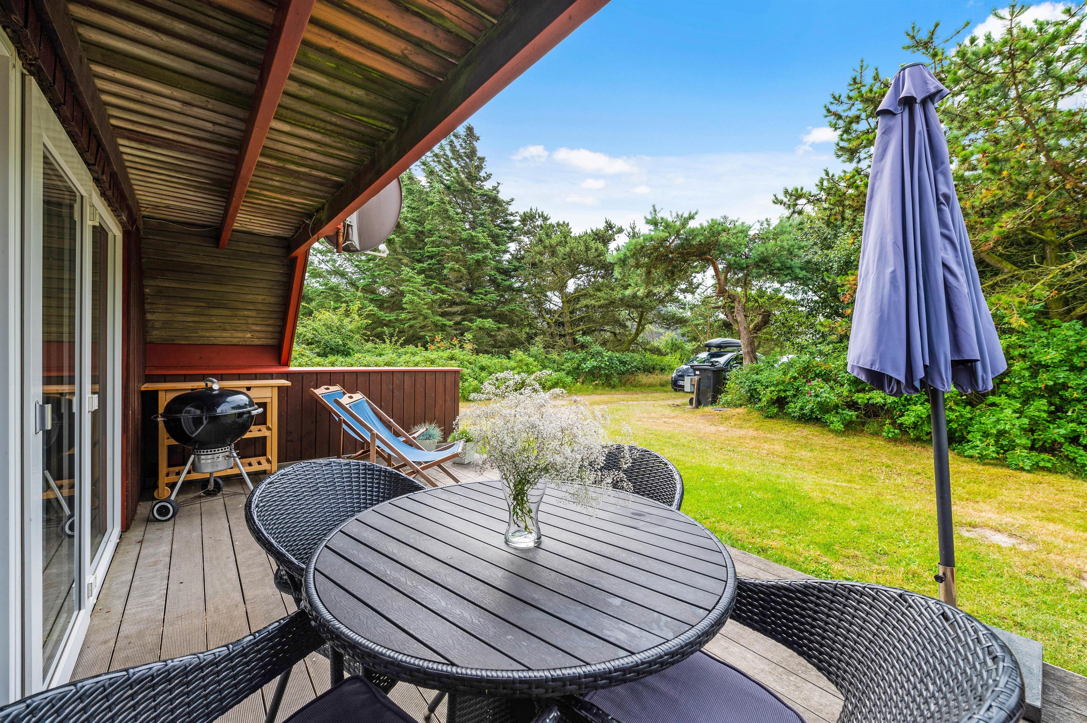 Efter en dejlig feriedag kan I afslutte dagen med en lækker middag, som I kan lave på grillen på sommerhusets terrasse.