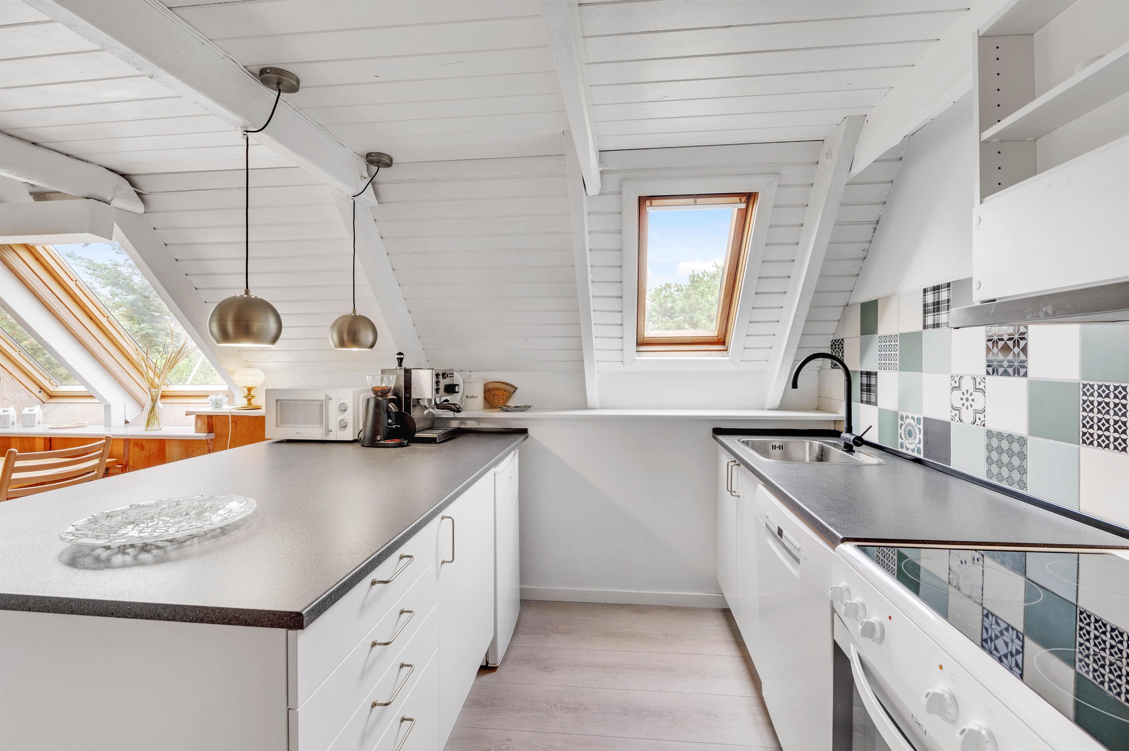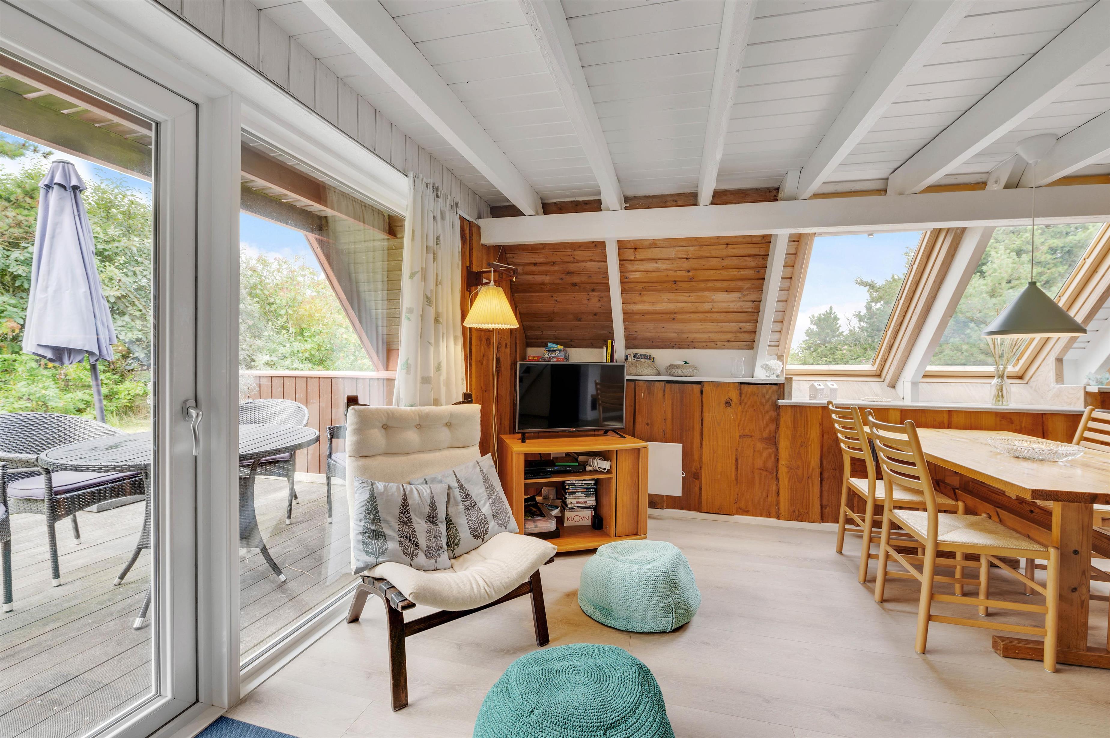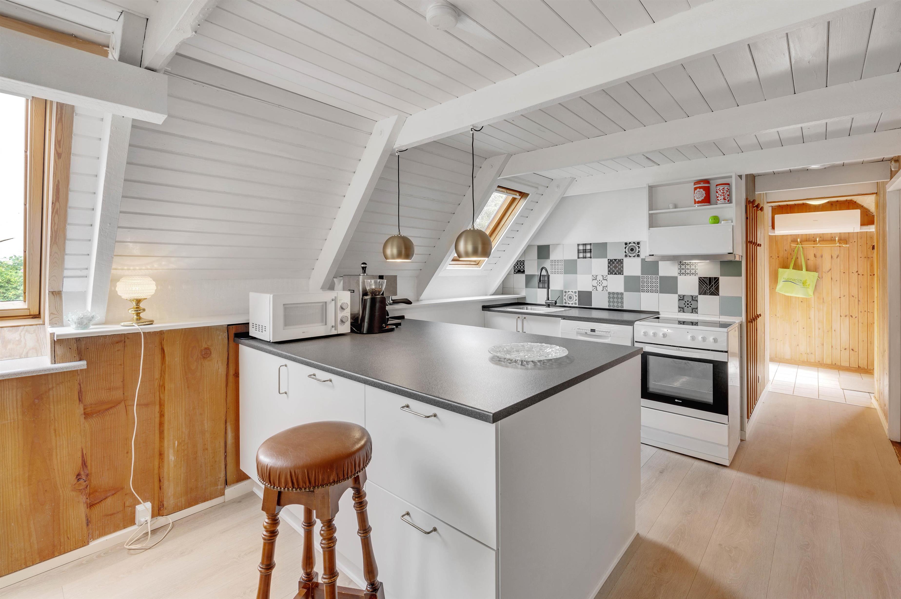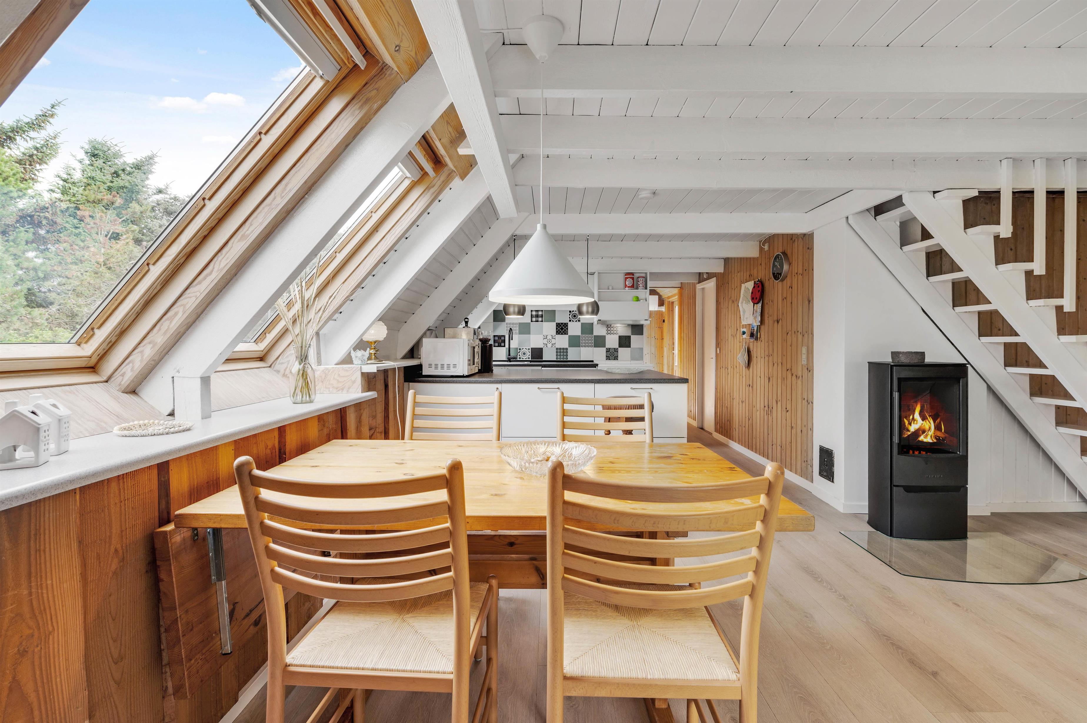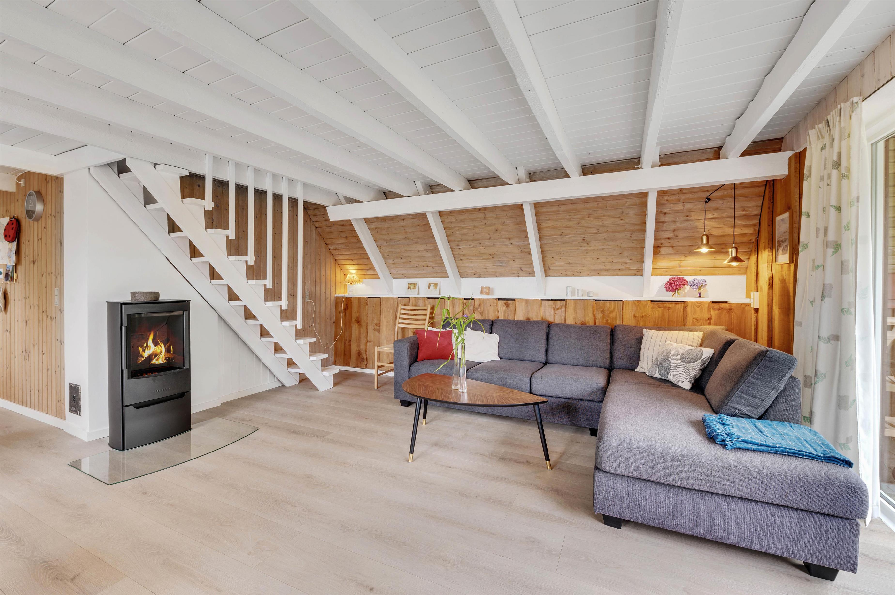 Vil I fuldende den skønne feriestemning i alrummet, kan I tænde op i brændeovnen, der både spreder hyggelig stemning og god varme. Ellers sørger en energivenlig varmepumpe for, at I har gode temperaturer i sommerhuset.