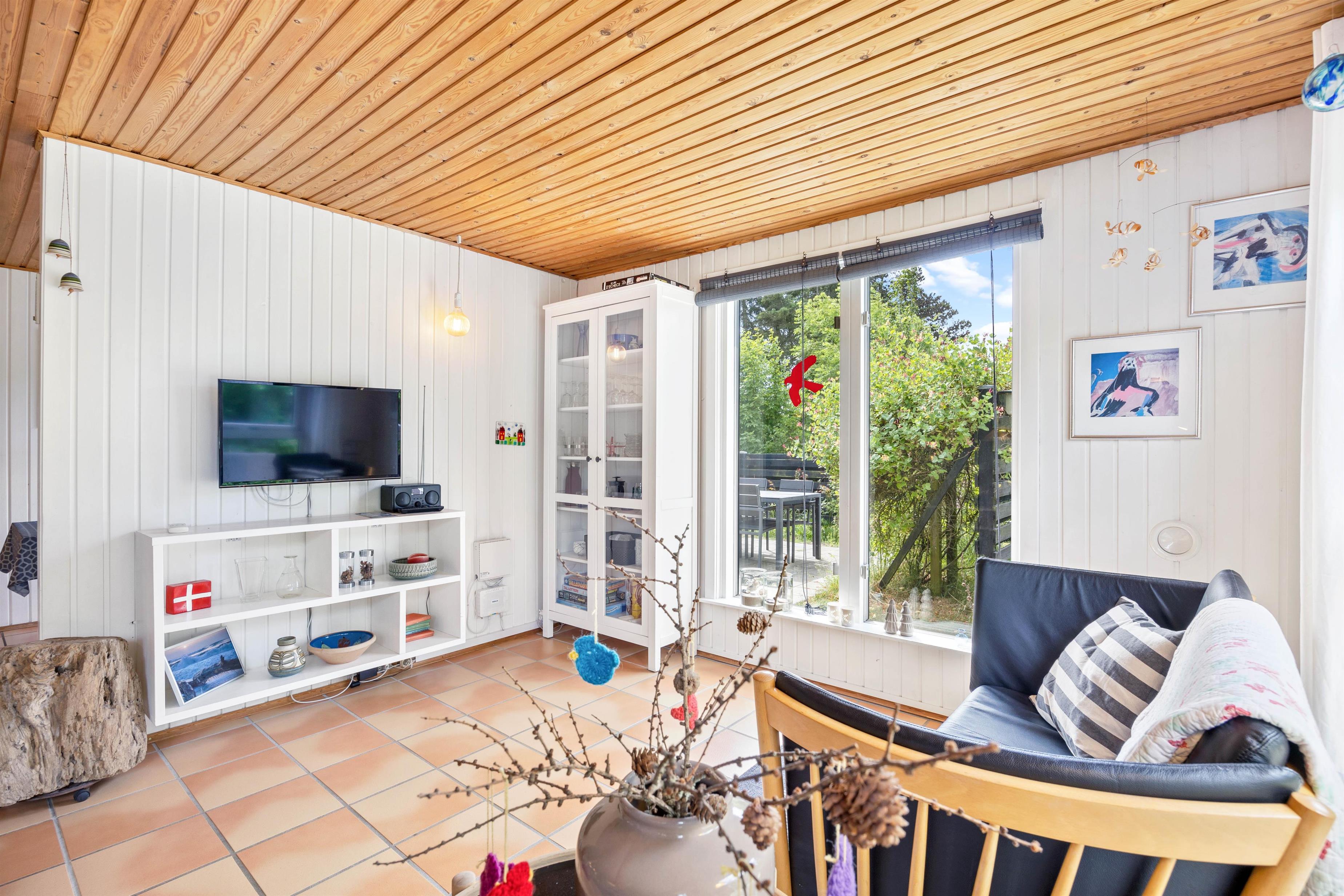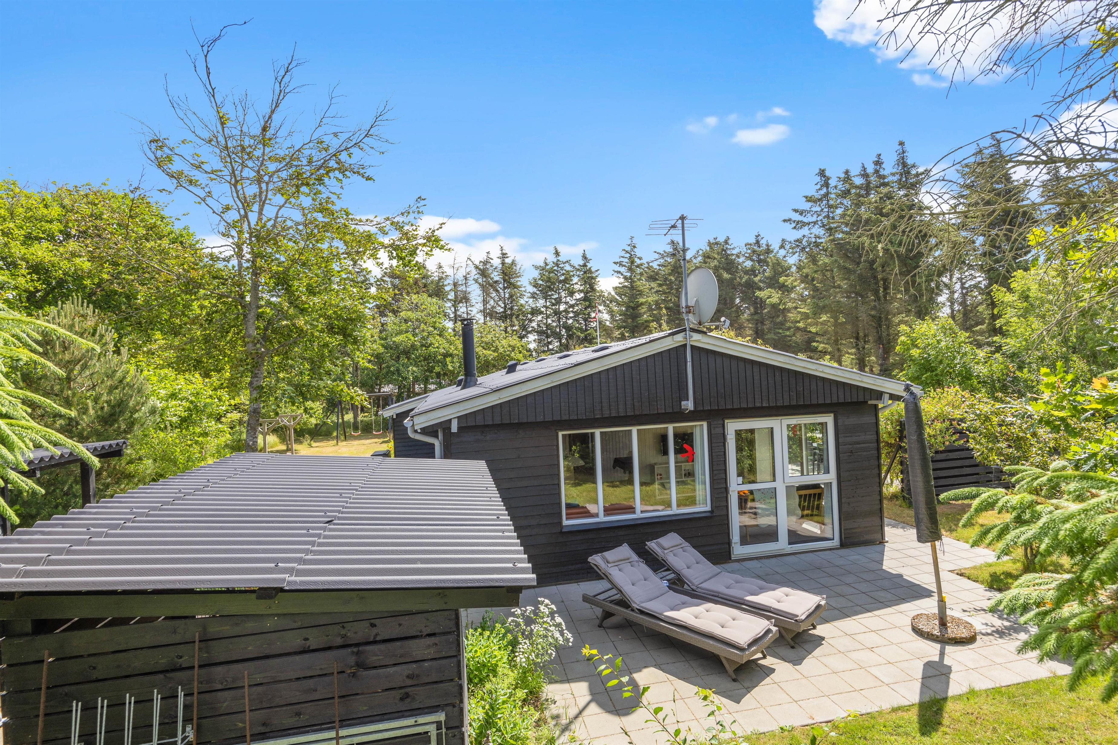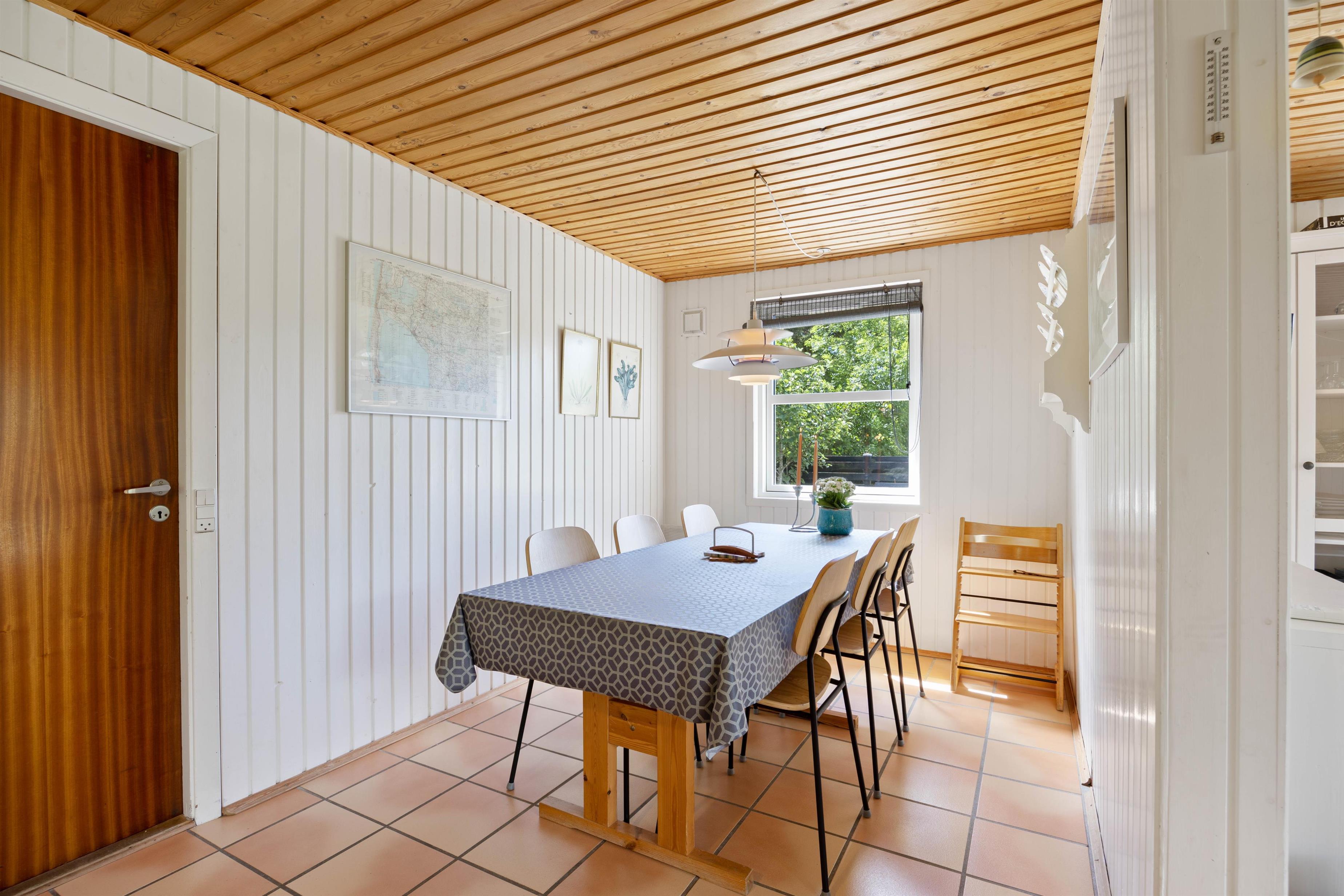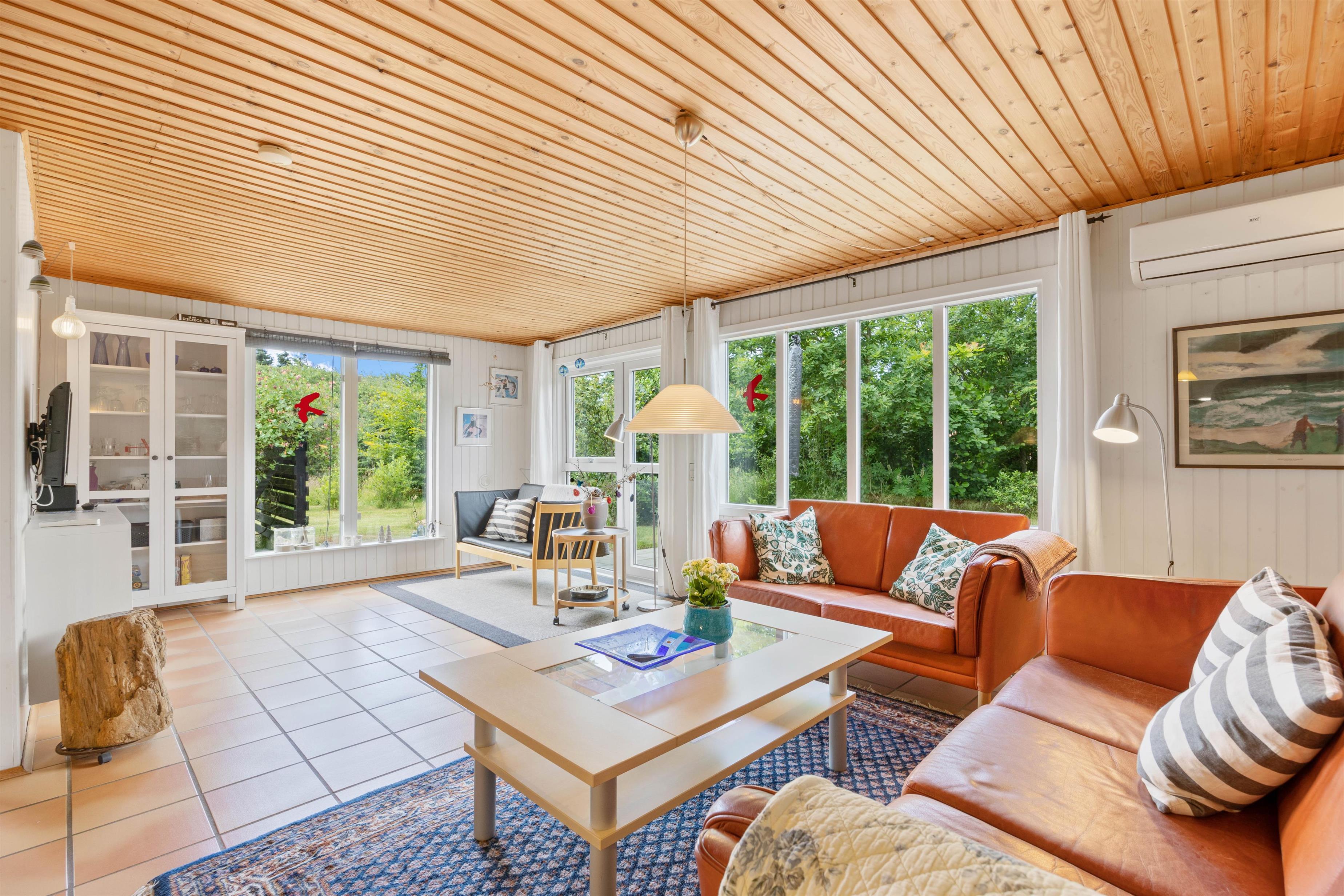Når I træder ind i sommerhuset på Koglevej i Lodbjerg Hede, vil I straks blive mødt af den hyggelige sommerhusatmosfære, som huset emmer af. Her findes alle de elementer, som man forbinder med sommerhus: panelbeklædte vægge, lun brændeovn, hyggelige kroge og behagelige møbler, hvor man kan slappe af i.