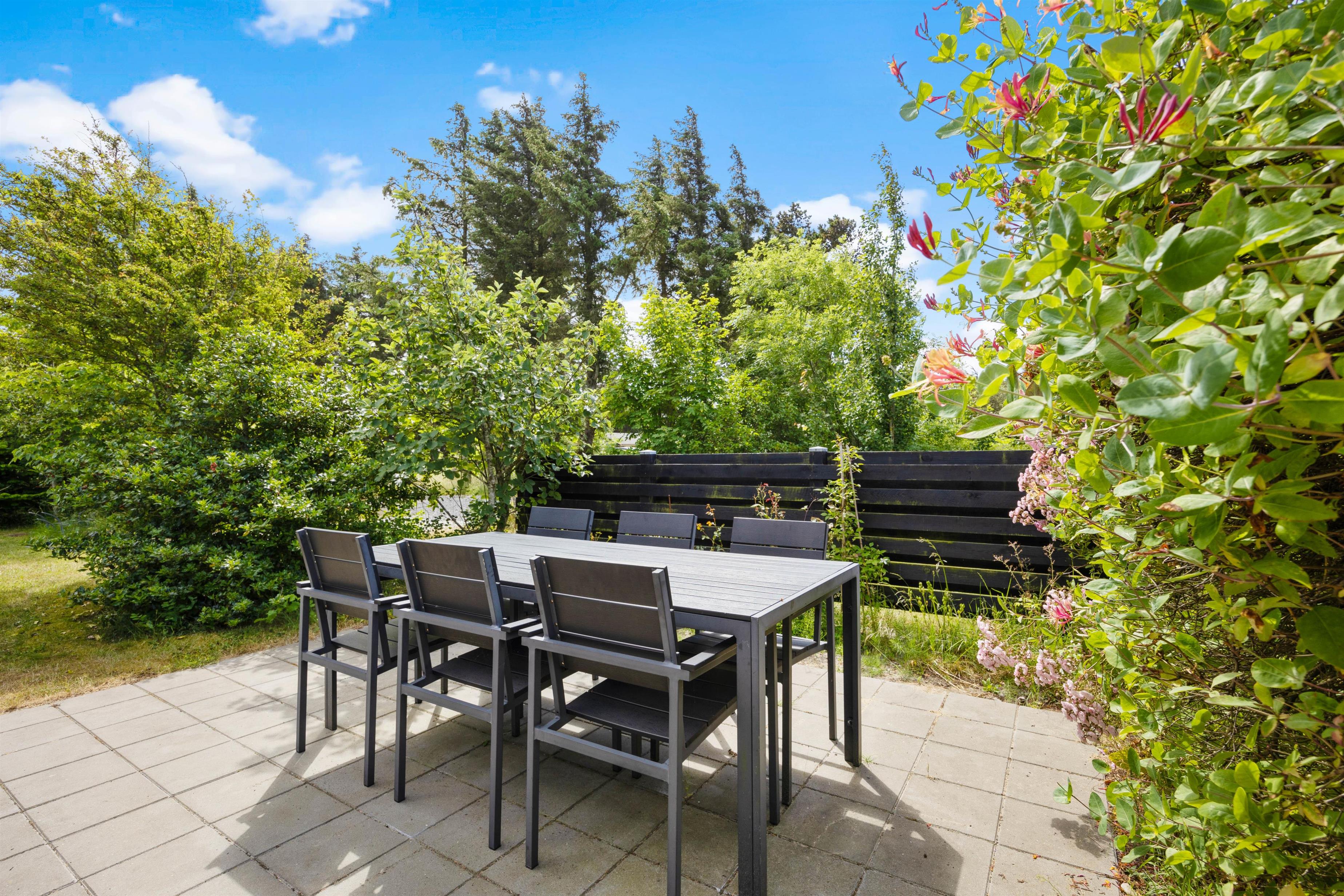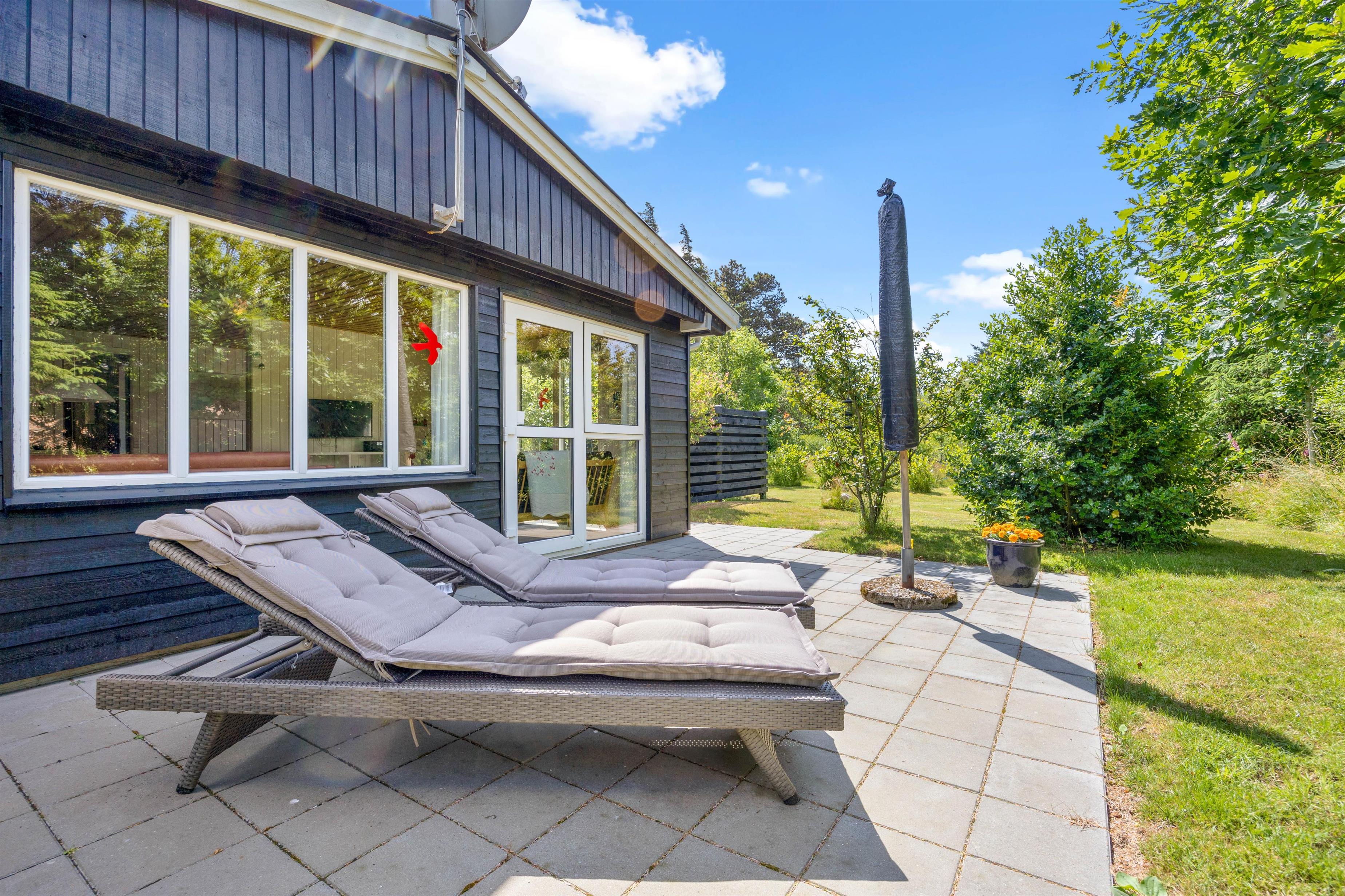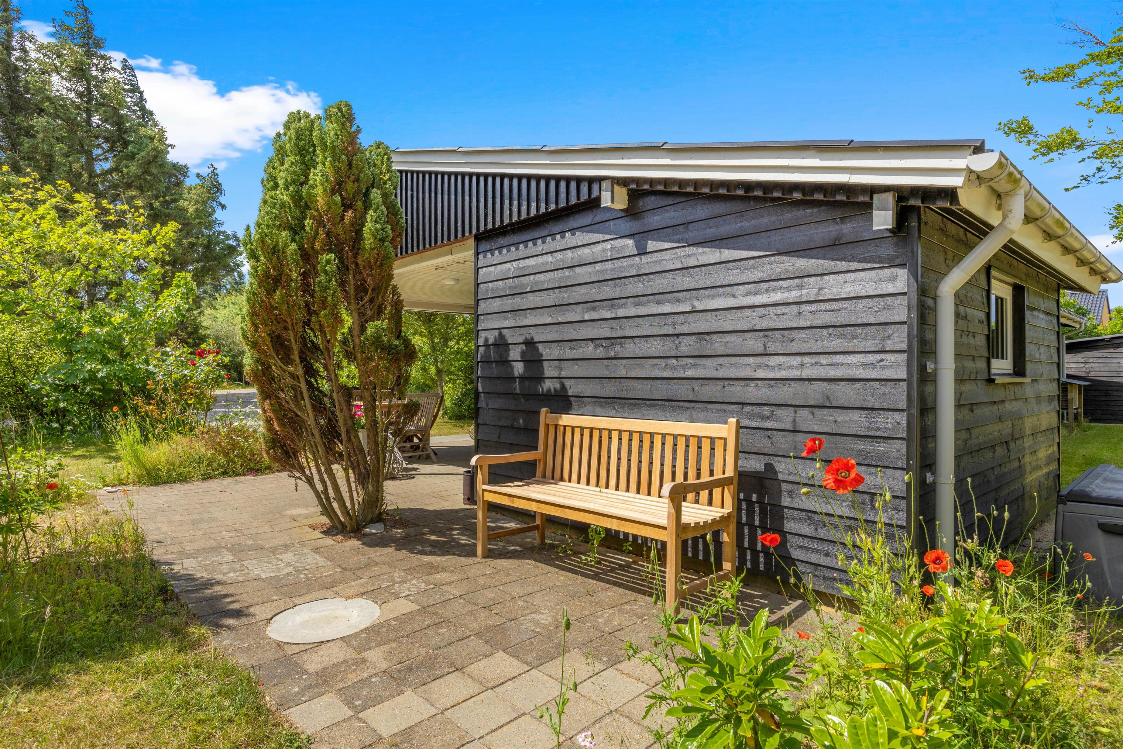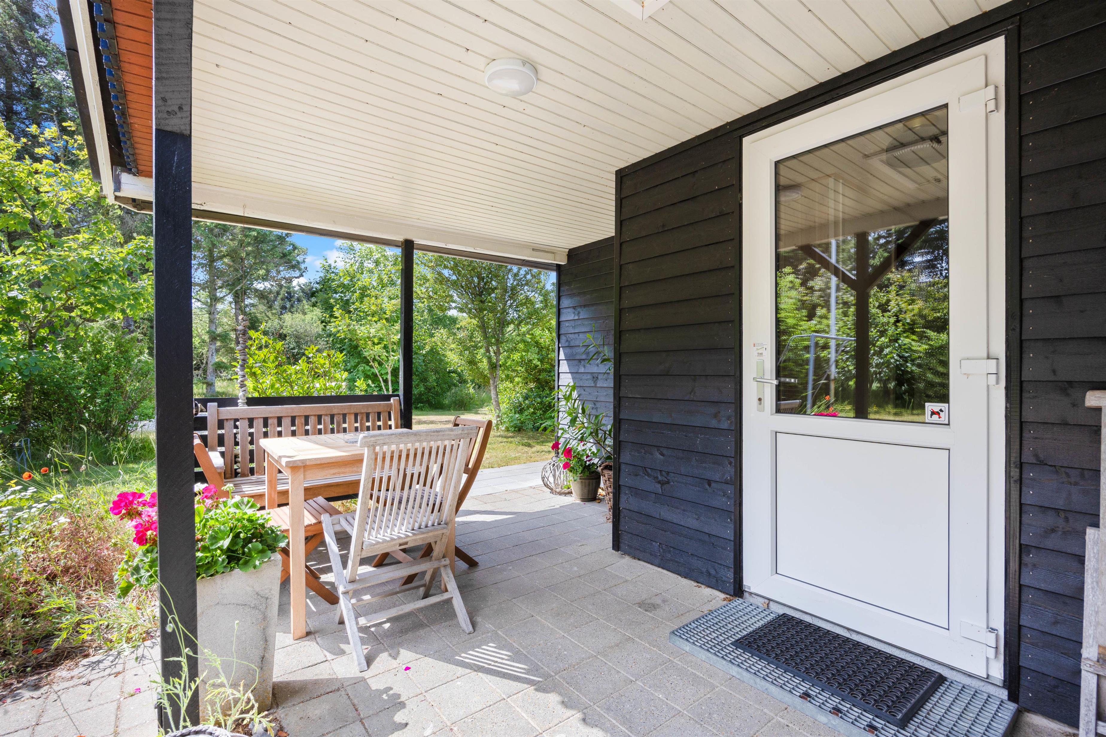 Rundt om huset findes en masse små kroge, hvor I kan slå jer ned med en god bog eller nyde solens stråler. En af disse kroge byder på et væld af rosenbuske, der kan akkompagnere jeres middage med en liflig duft af blomsternes sødme. Og viser vejret sig fra sin lunefulde side? Så kan I i stedet søge ind under den overdækkede terrasse, hvor der er gjort klar til hygge med behagelige havemøbler. Så I kan sagens nyde bøffer på grillen, selvom der skulle komme et par dryp fra himlen.