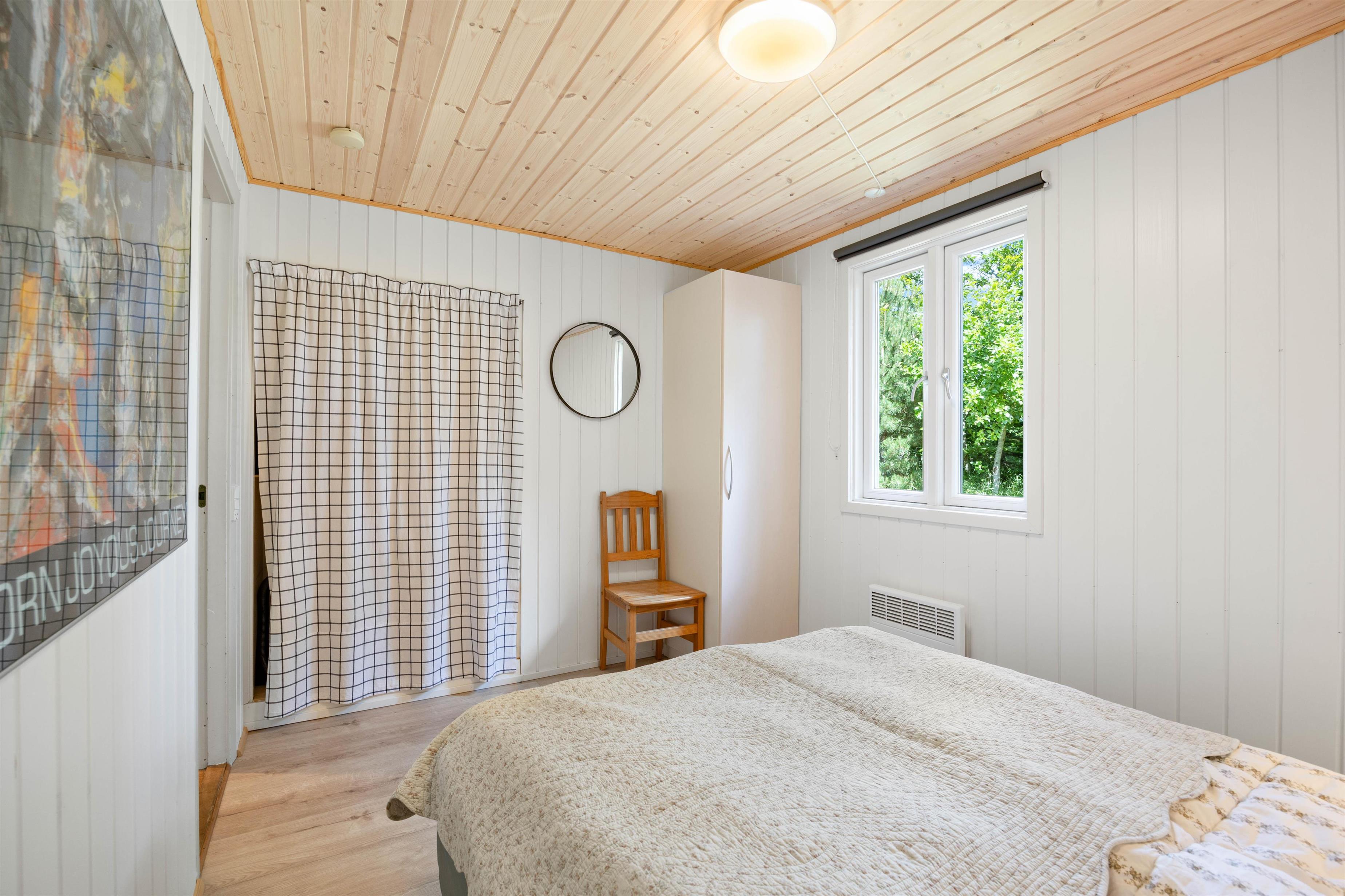 Huset er indrettet med 3 gode værelser, hvoraf det ene værelse har dobbeltseng, mens de resterende 2 værelser har enkeltsenge. Alle værelser er lyse og indbydende og byder på en nydelig indretning, der føles rar og hjemlig. Derudover har huset et enkelt badeværelse med bruseniche og flisegulv.